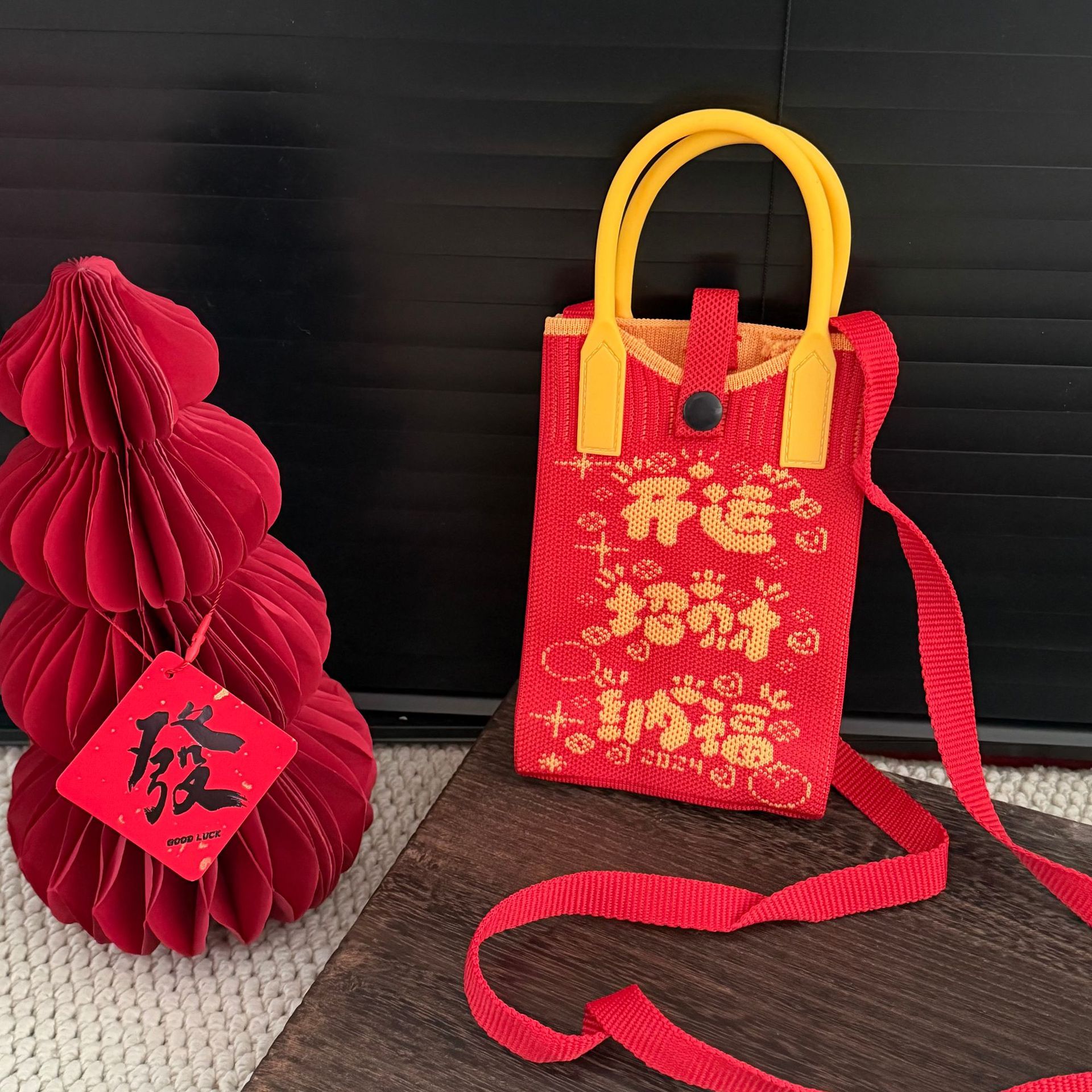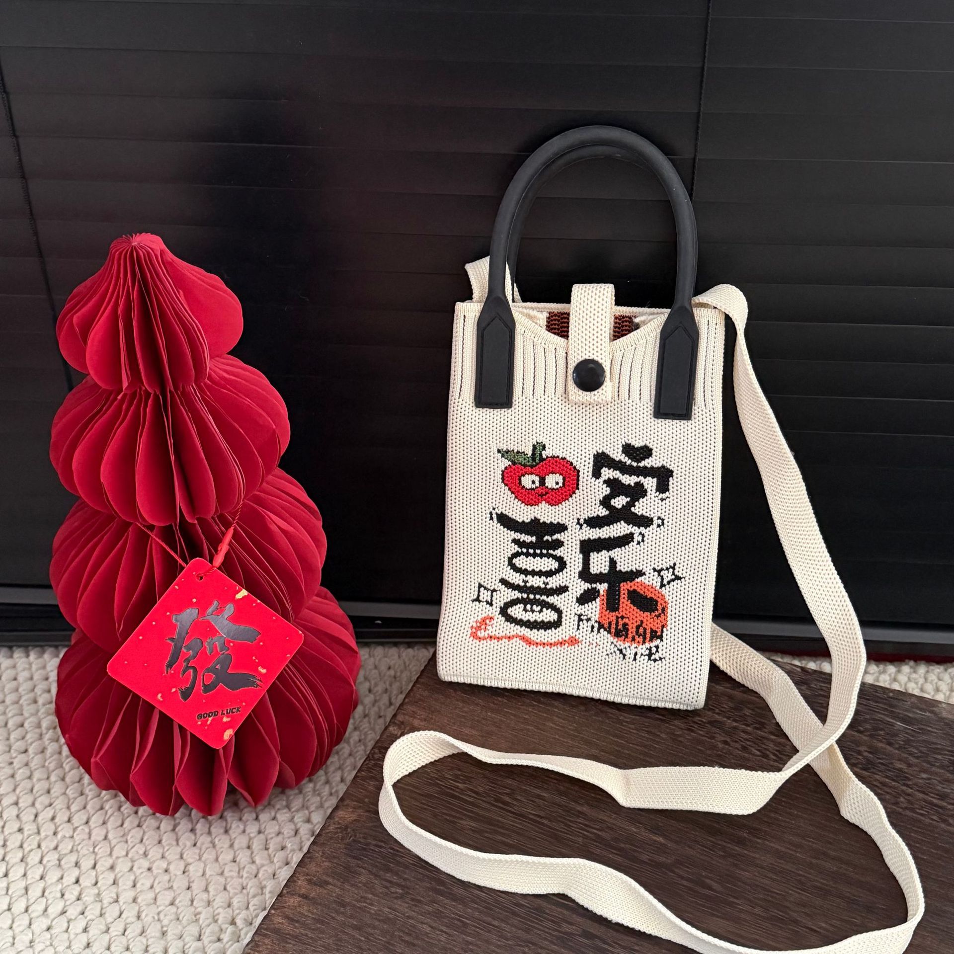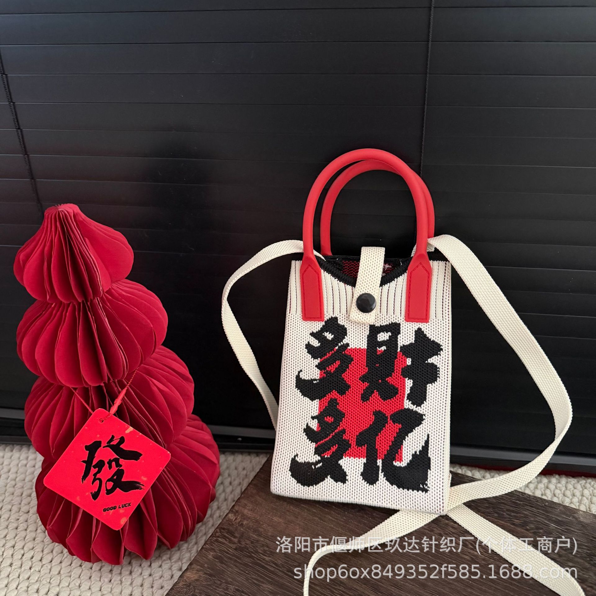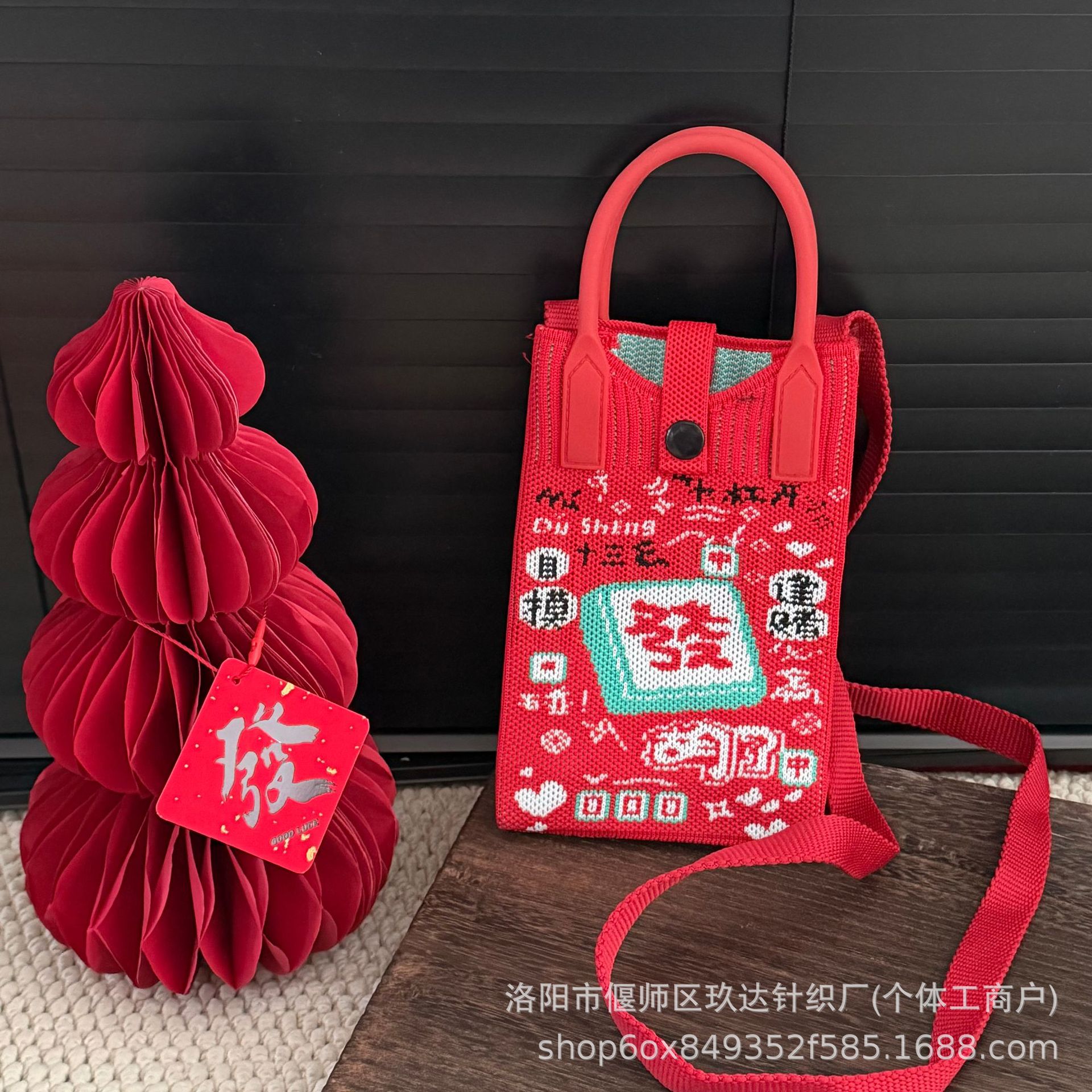 여름 미니 휴대용 소형 가방 2024 새로운 인기있는 짠 크로스 바디 니트 틈새 휴대 전화 가방
