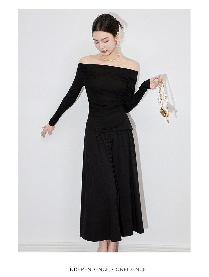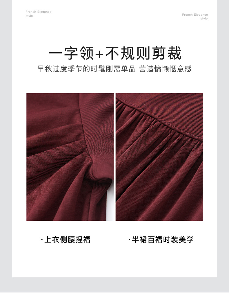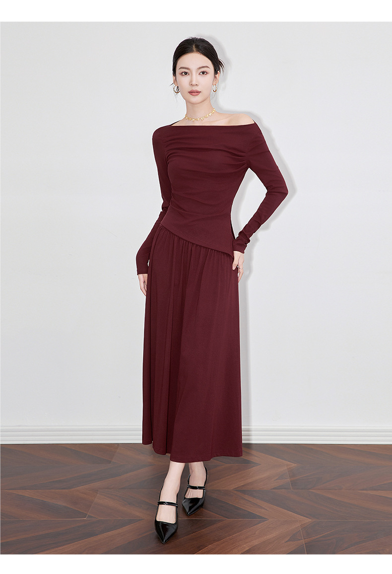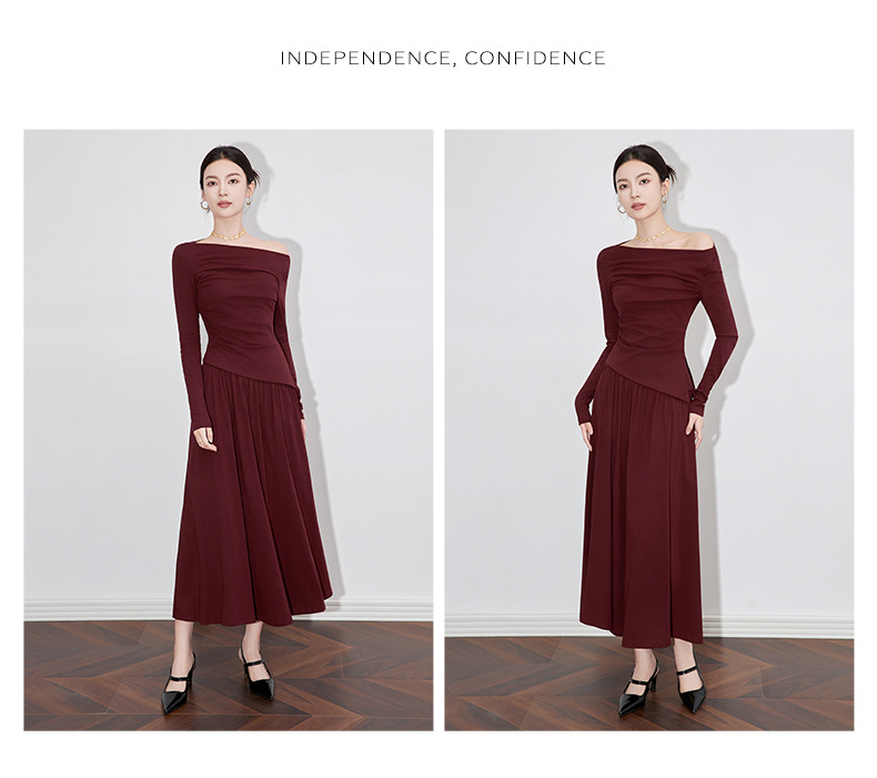 2430301-프랑스 우아한 angola 빨간색 디자인 오프 숄더 긴 소매 탑 오버 스커트 투피스 세트 여성스토어 가기