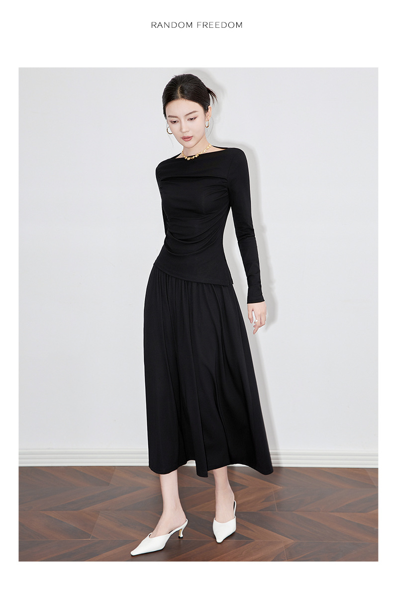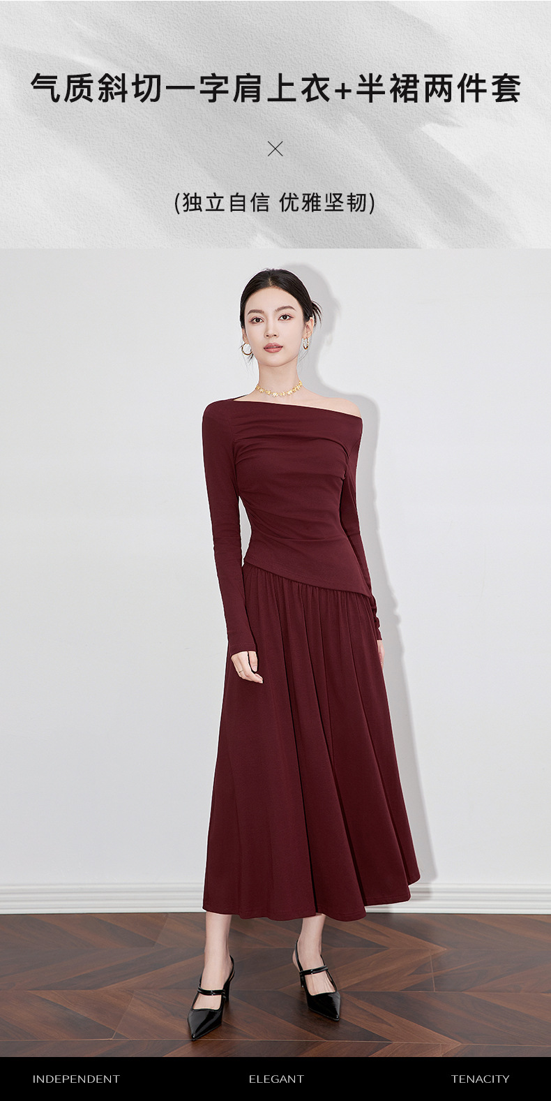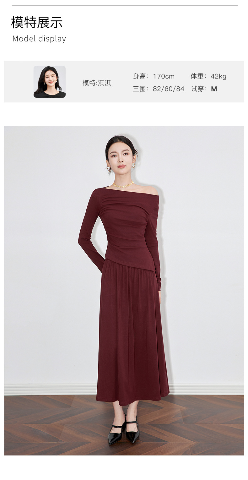 2430301-프랑스 우아한 angola 빨간색 디자인 오프 숄더 긴 소매 탑 오버 스커트 투피스 세트 여성스토어 가기