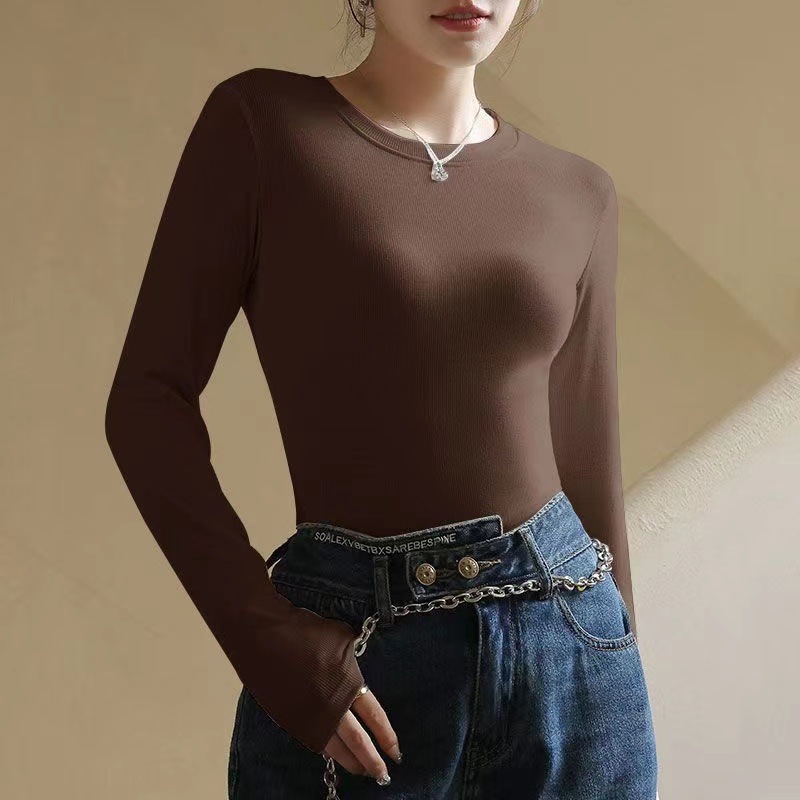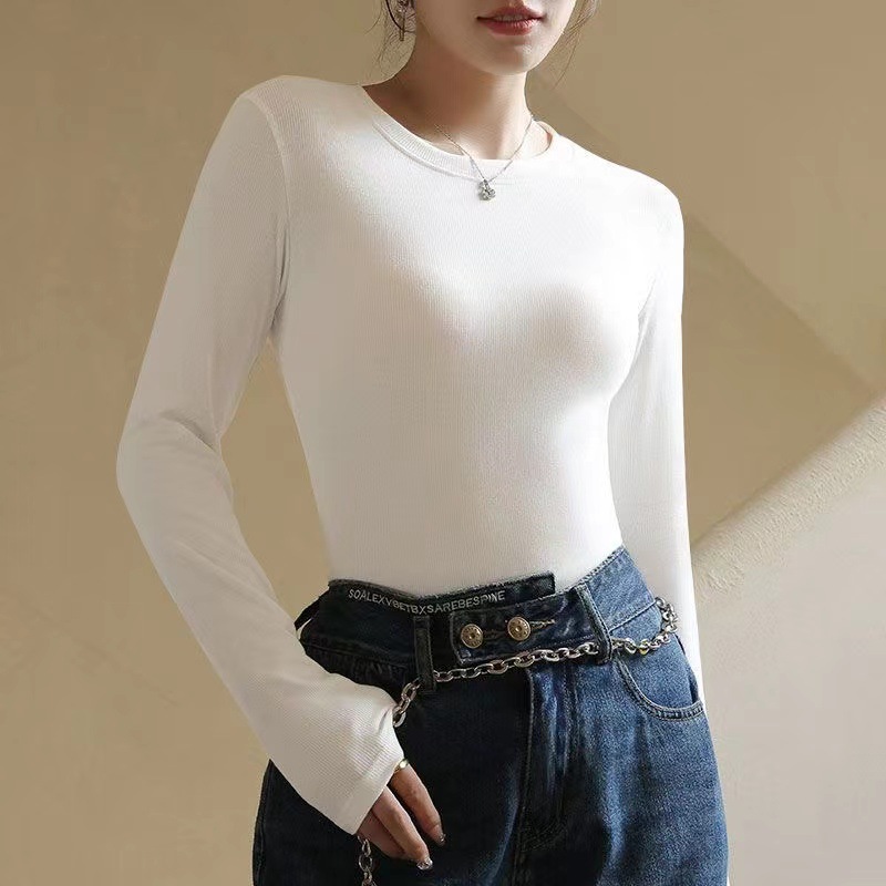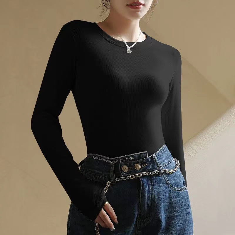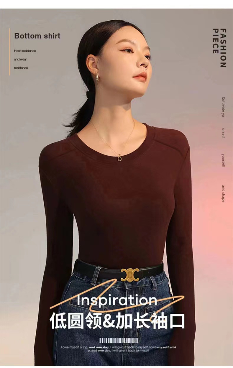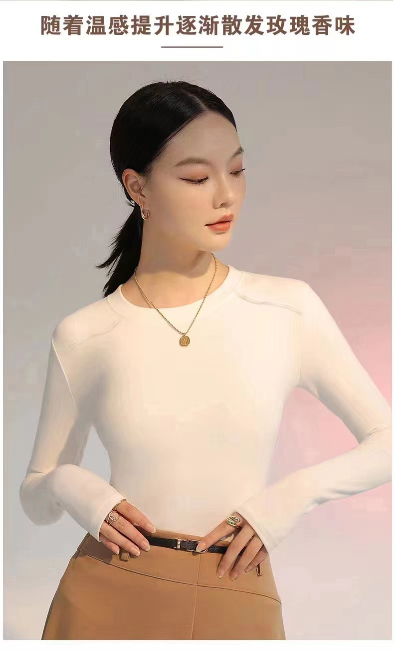 백킹 셔츠 여성용 내복] 로즈 향기 이른 가을 새로운 간단한 라운드 넥 슬림 외국 스타일 얇은 긴 소매 스레드 티셔츠