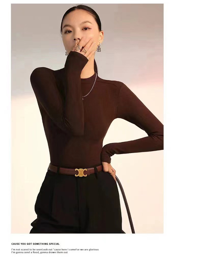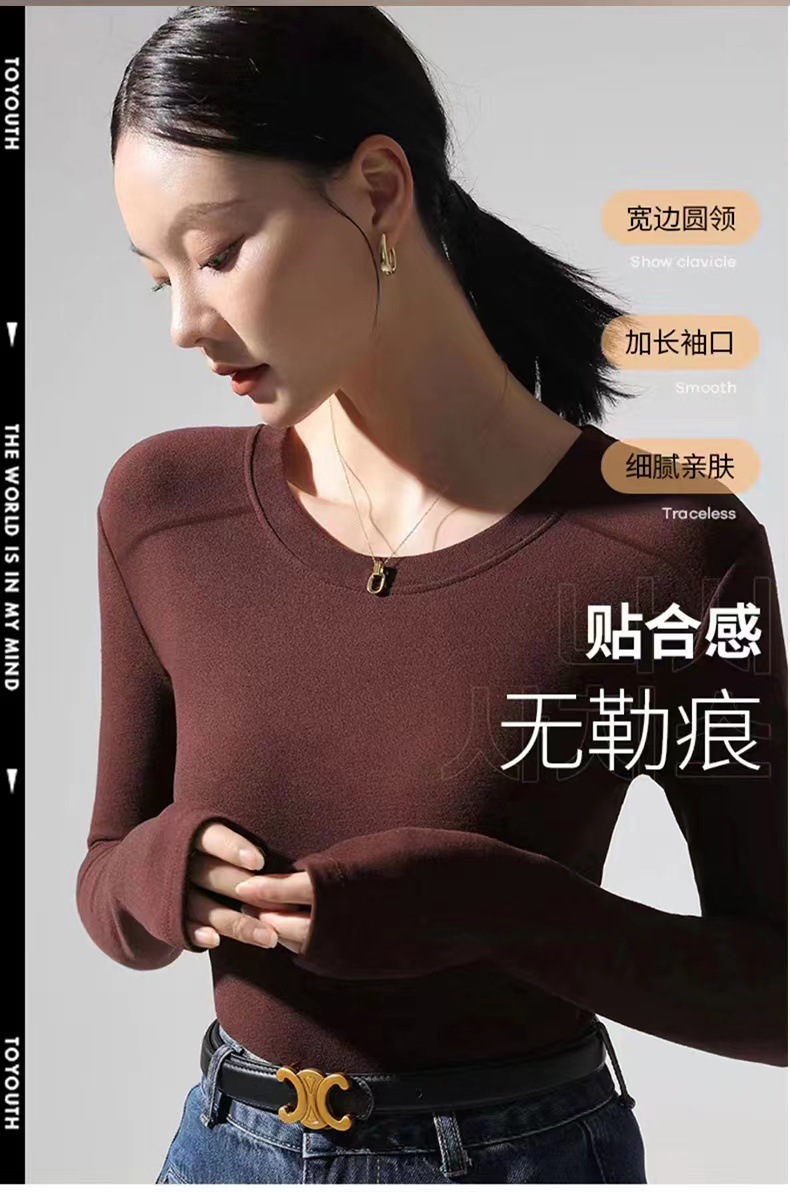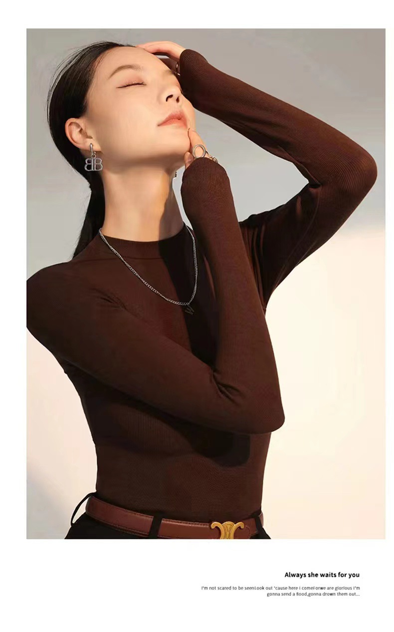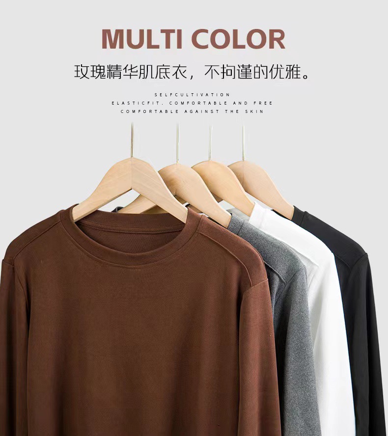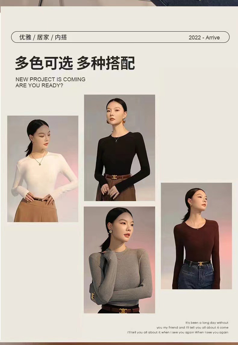 백킹 셔츠 여성용 내복] 로즈 향기 이른 가을 새로운 간단한 라운드 넥 슬림 외국 스타일 얇은 긴 소매 스레드 티셔츠