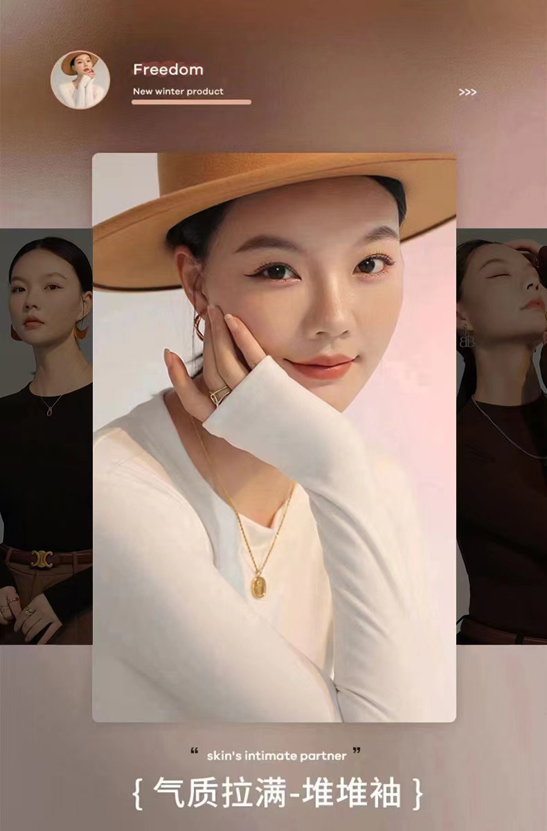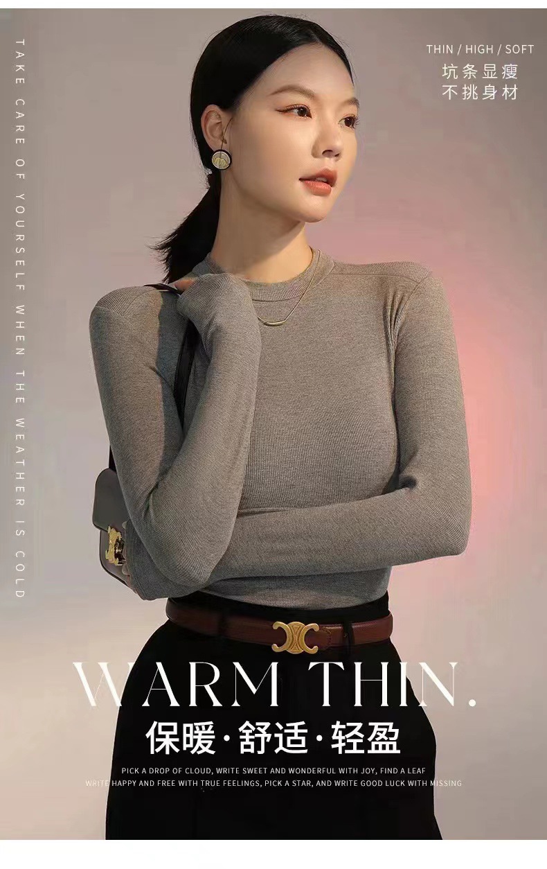 백킹 셔츠 여성용 내복] 로즈 향기 이른 가을 새로운 간단한 라운드 넥 슬림 외국 스타일 얇은 긴 소매 스레드 티셔츠스토어 가기