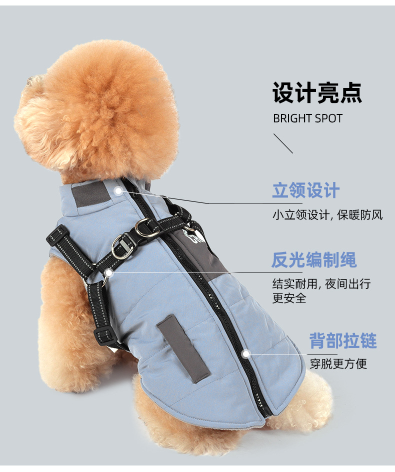 새로운 개 옷 가을, 겨울 애완 동물 방풍 스탠드 칼라 개 면화 코트 반사 두꺼운 따뜻한 애완 동물 의류스토어 가기