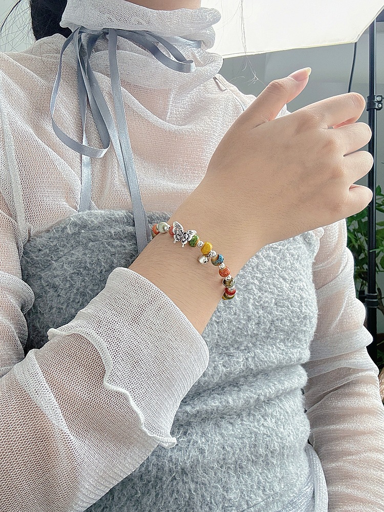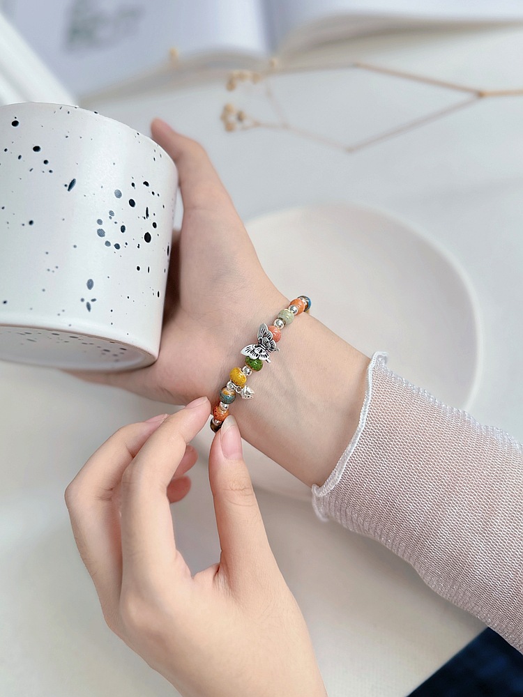 가을과 겨울 새로운 예술 국가 스타일 Jingdezhen 세라믹 팔찌 새로운 중국 나비 도자기 구슬 팔찌 기질 조커 도매스토어 가기