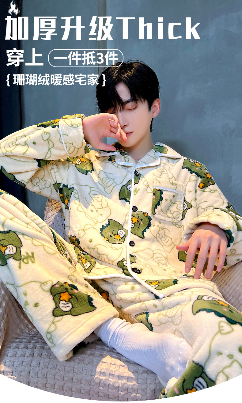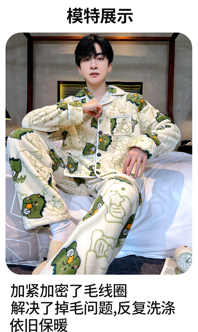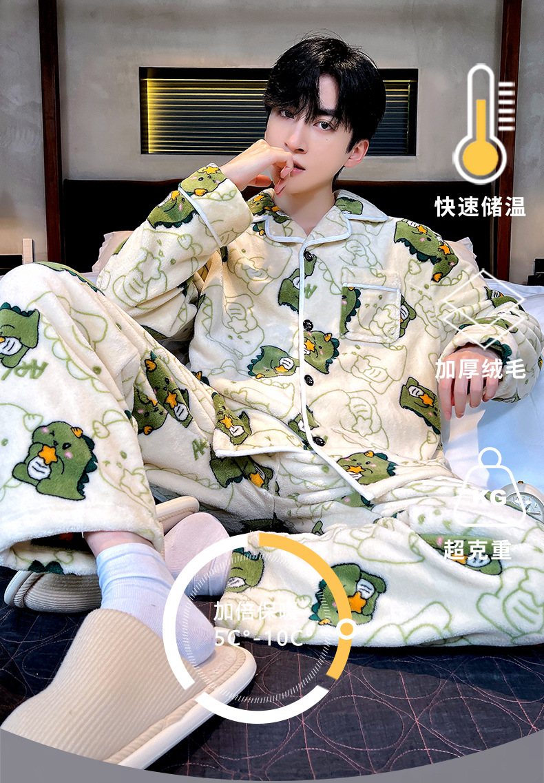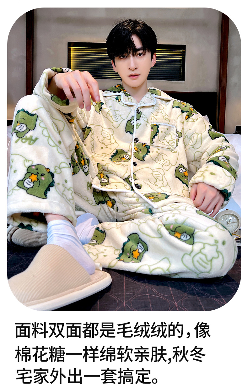 잠옷 남자의 가을과 겨울 두꺼운 산호 양털 세트 겉옷 따뜻한 긴 소매 봄과 가을 플러스 사이즈 플란넬스토어 가기