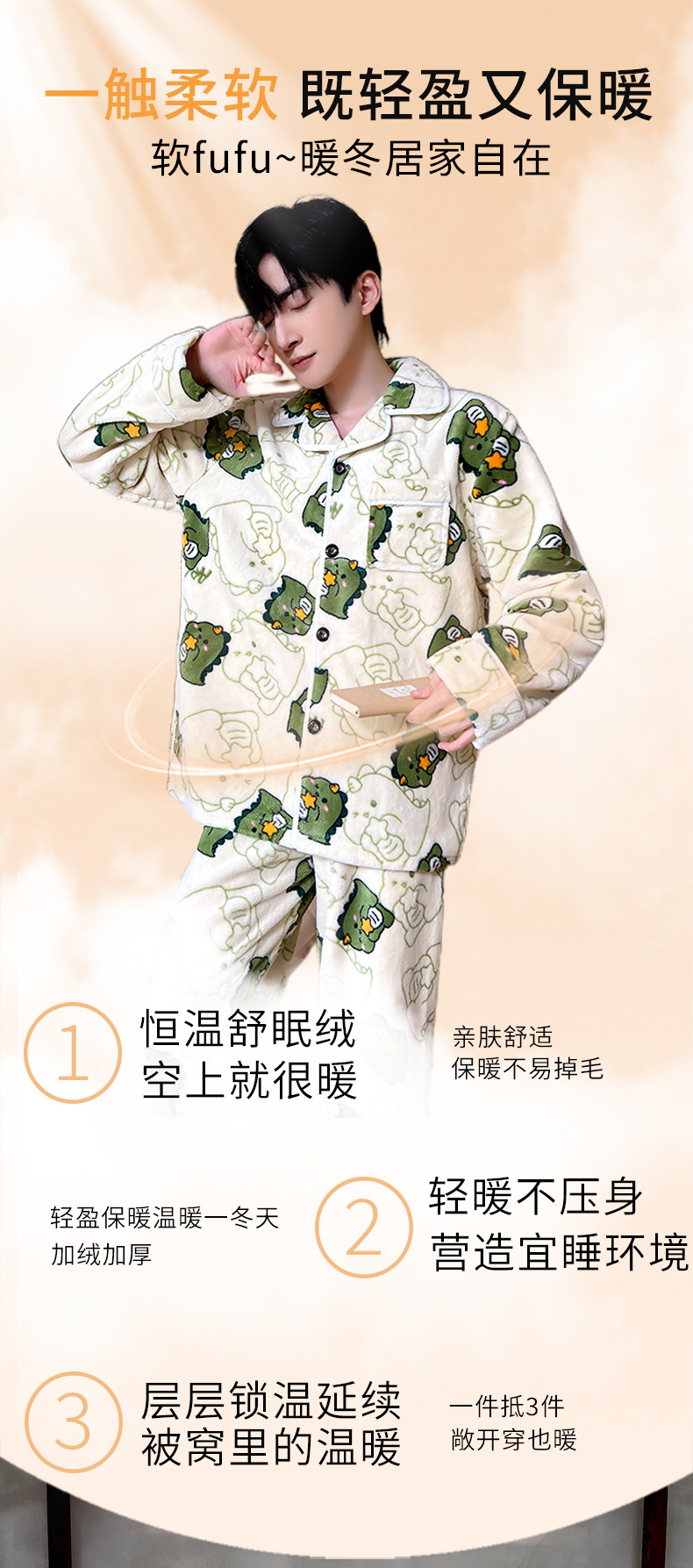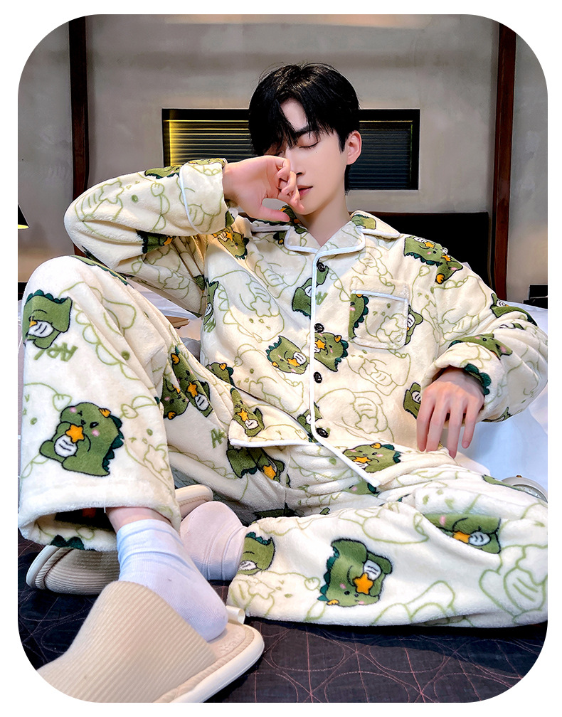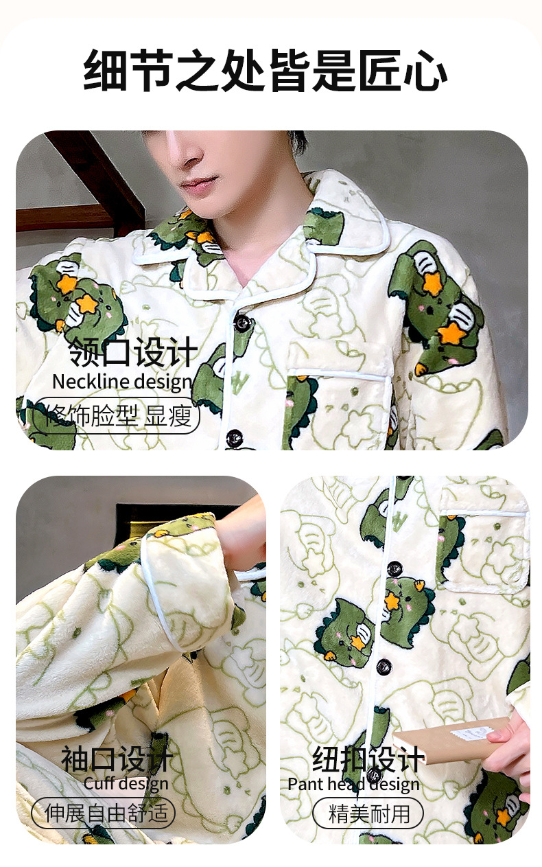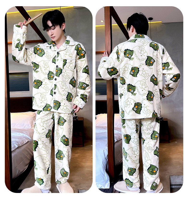 잠옷 남자의 가을과 겨울 두꺼운 산호 양털 세트 겉옷 따뜻한 긴 소매 봄과 가을 플러스 사이즈 플란넬스토어 가기