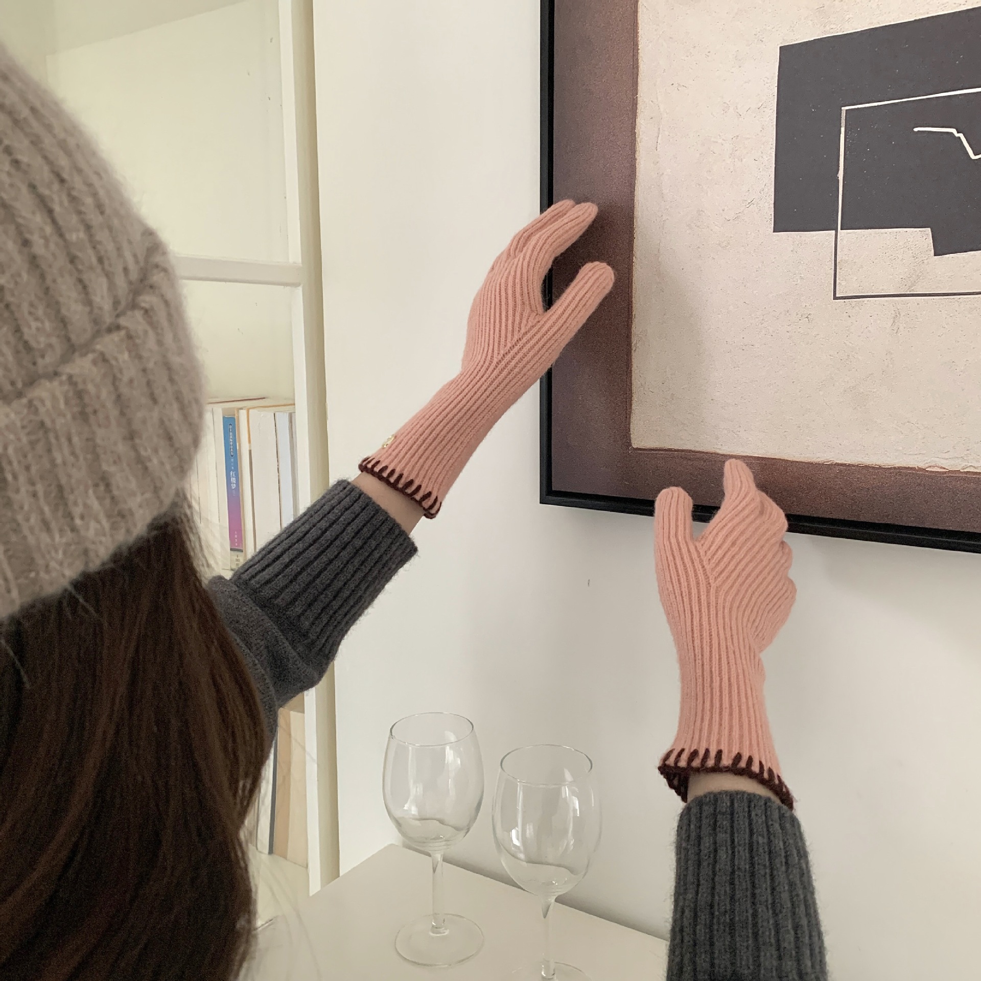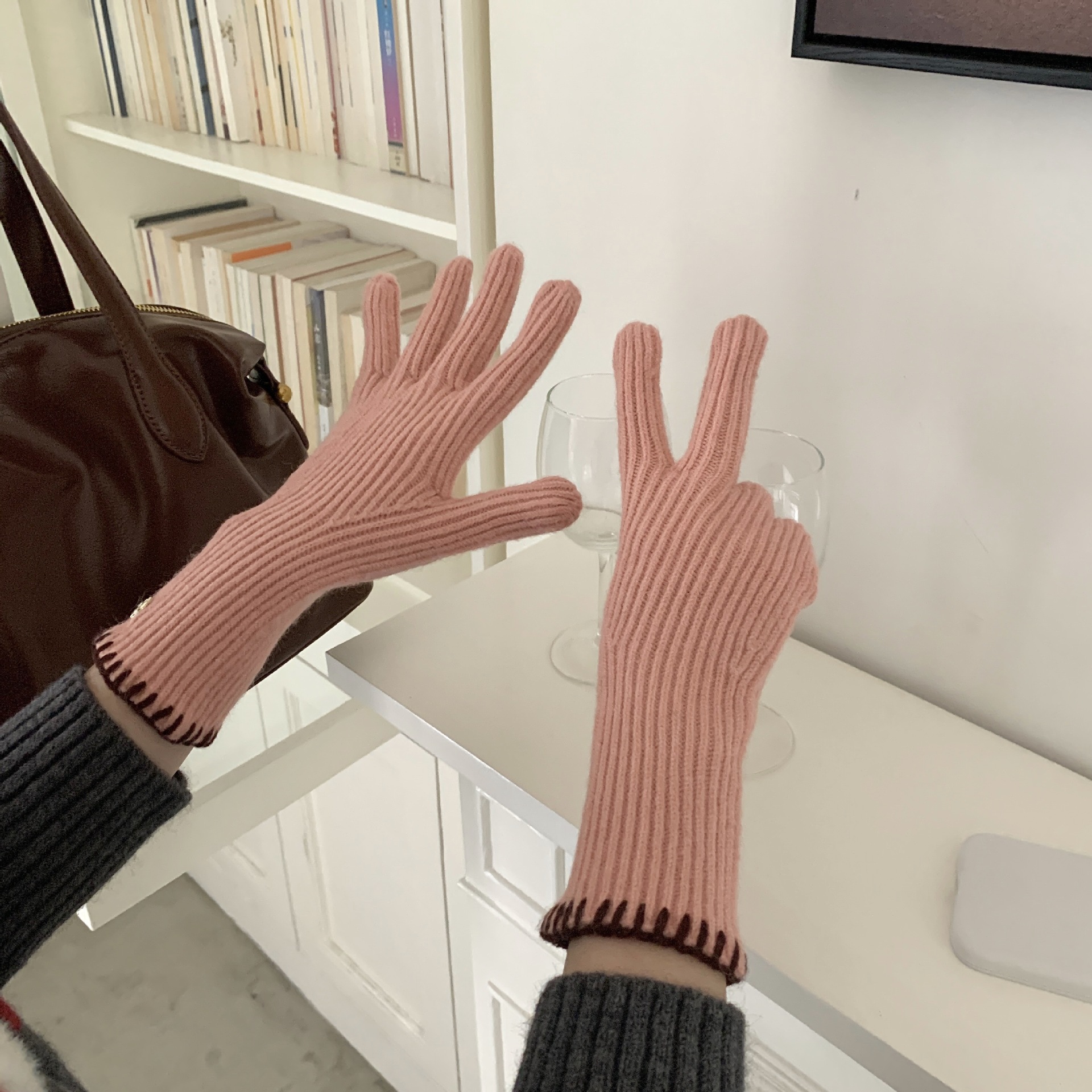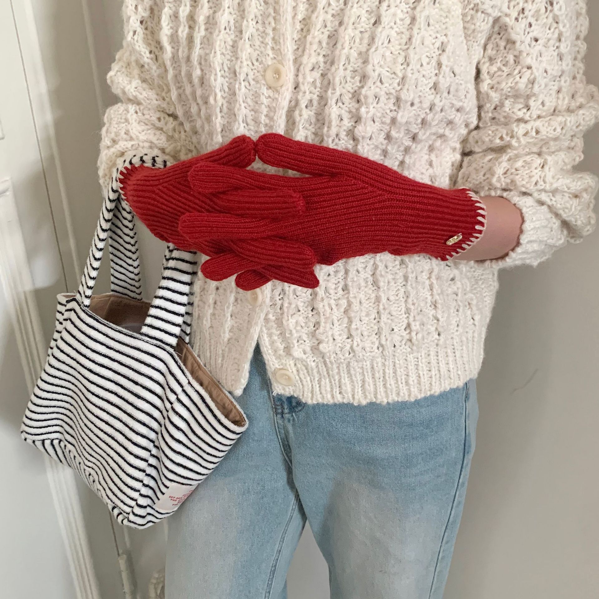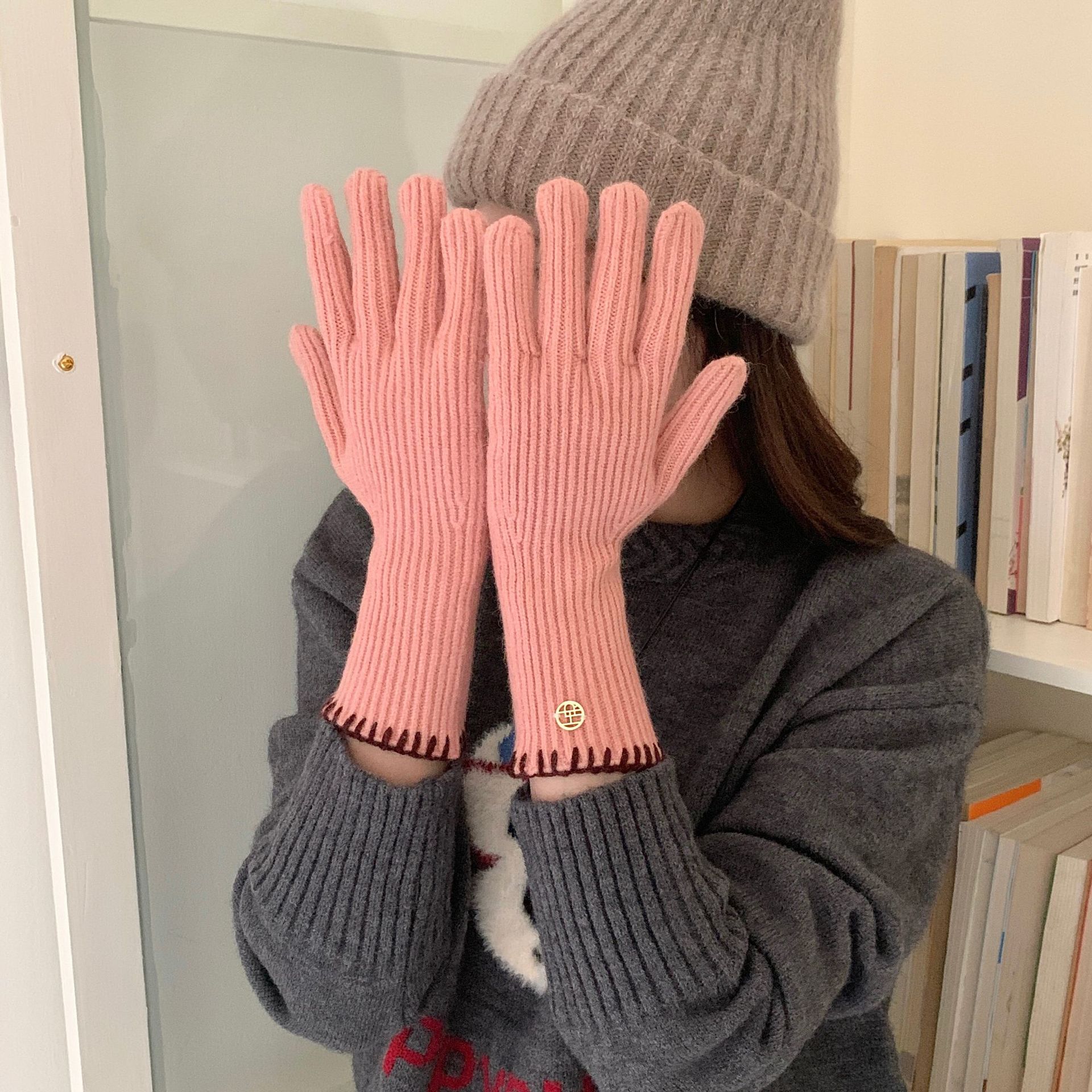 한국 주문 ~ 에 긴 튜브 니트 장갑 여성의 겨울 방한 라이딩 따뜻한 5 손가락 장갑 손가락없는 터치 스크린스토어 가기