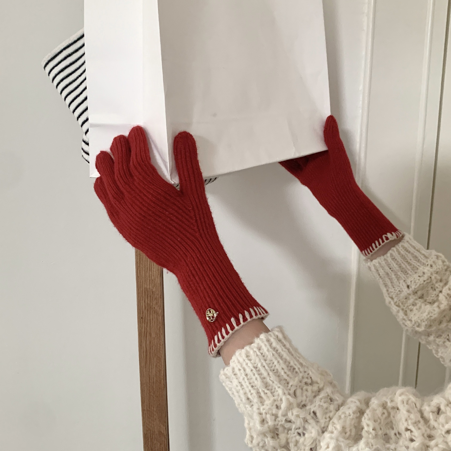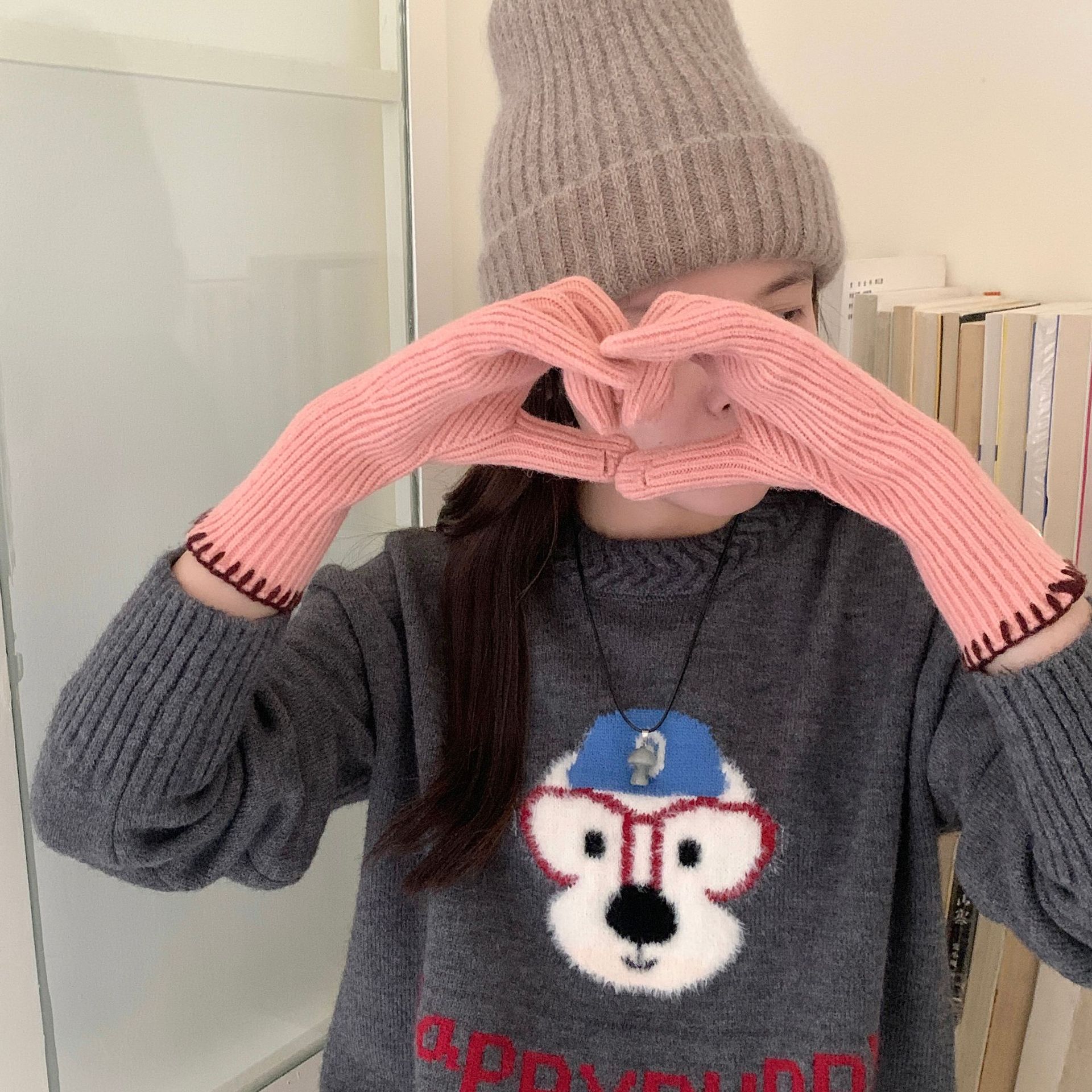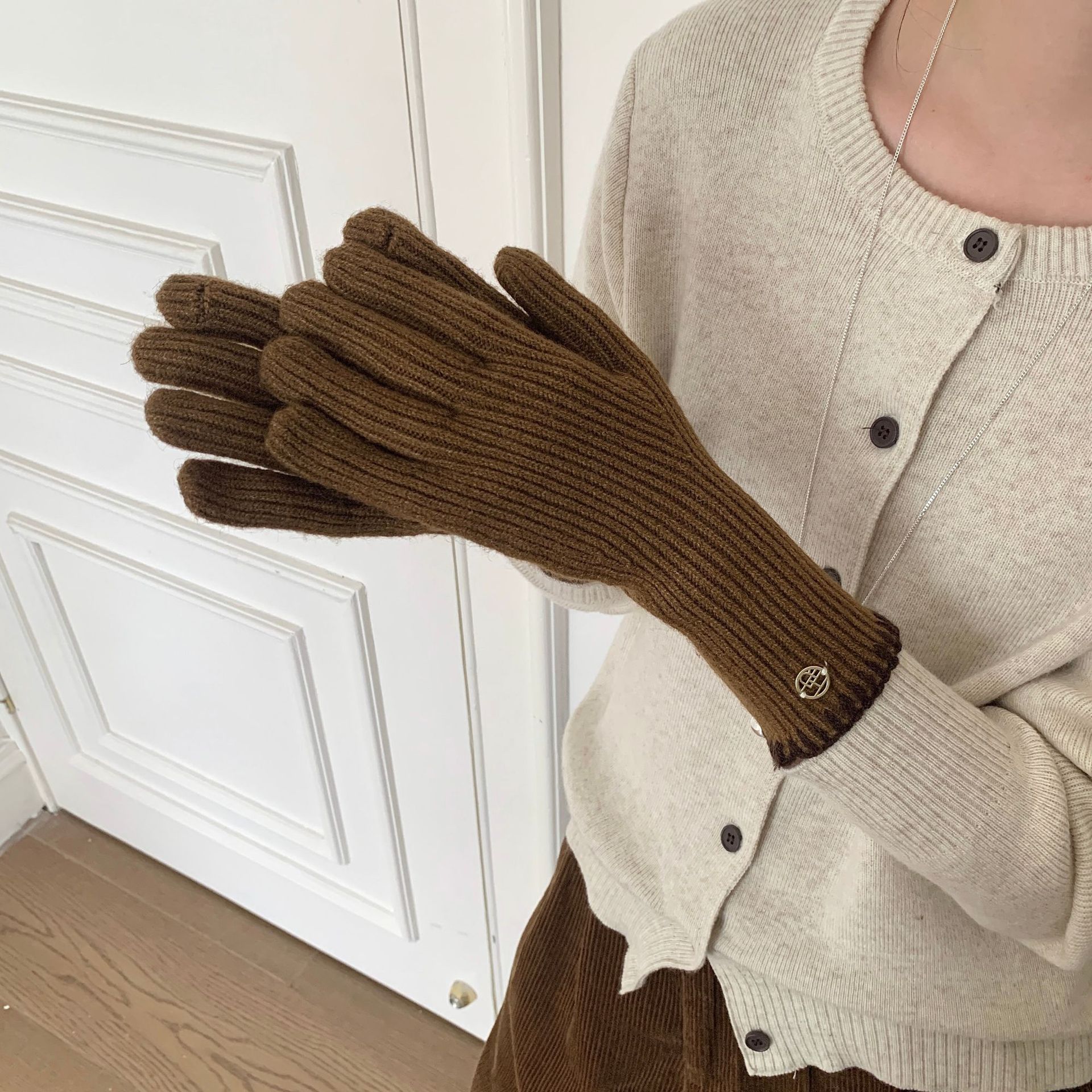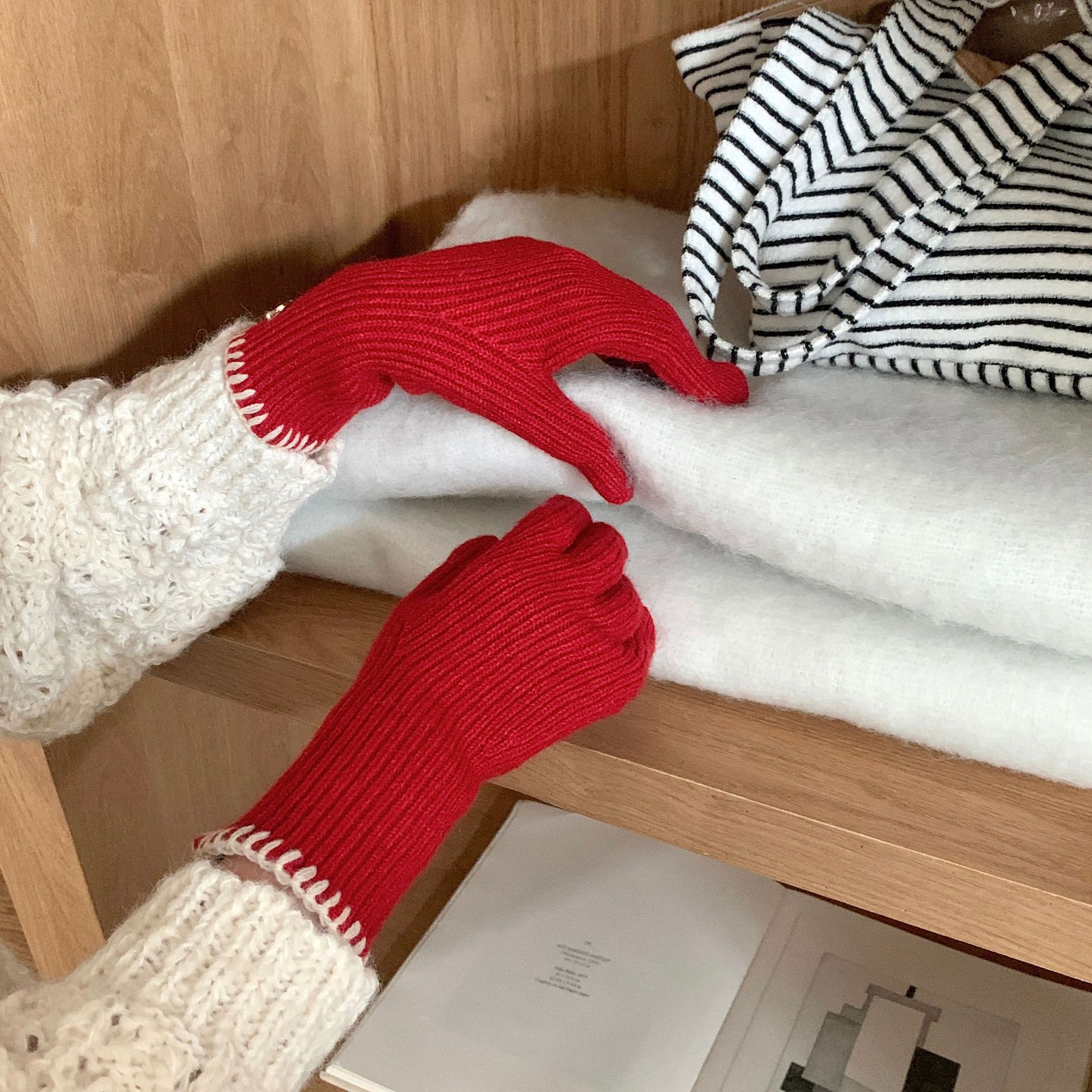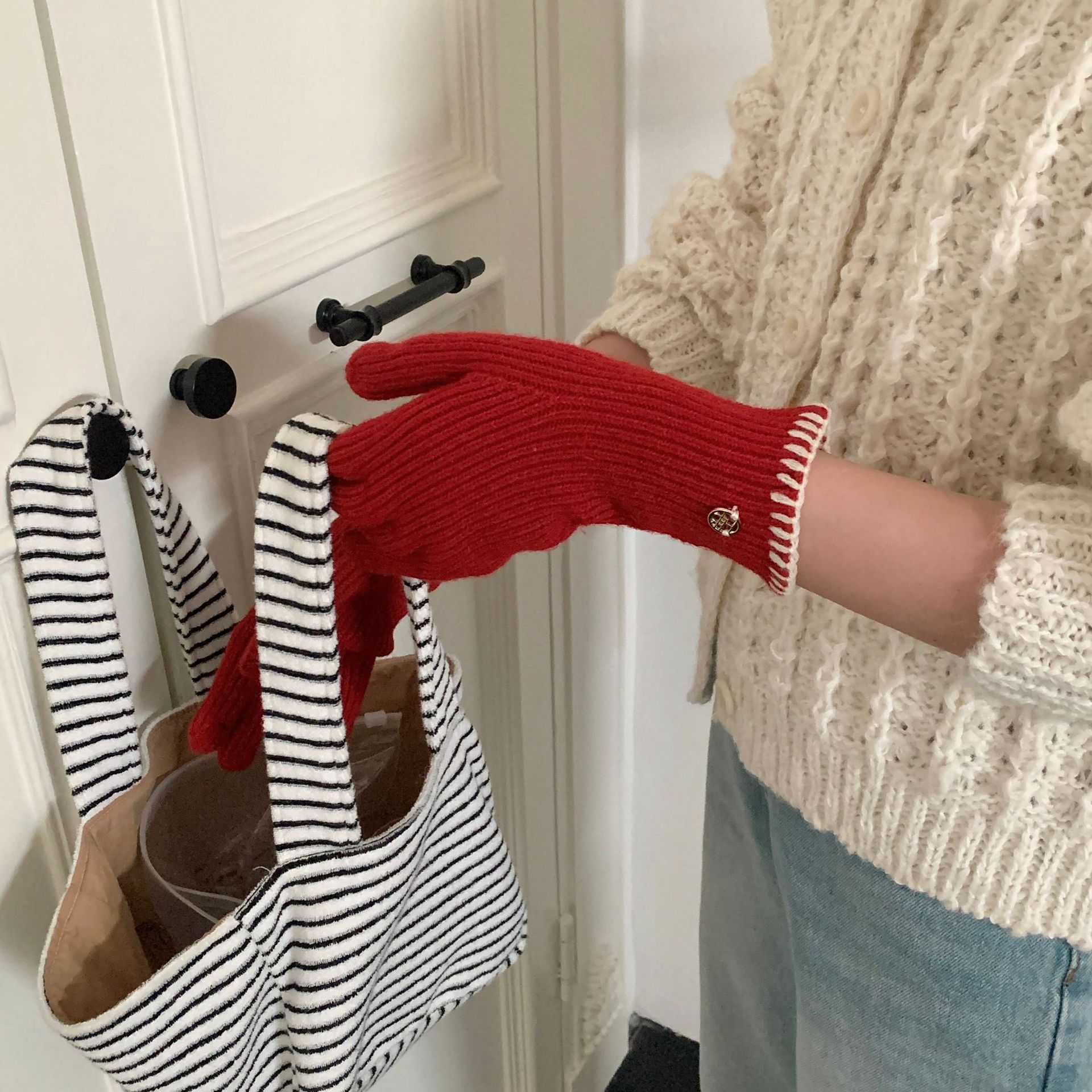 한국 주문 ~ 에 긴 튜브 니트 장갑 여성의 겨울 방한 라이딩 따뜻한 5 손가락 장갑 손가락없는 터치 스크린스토어 가기