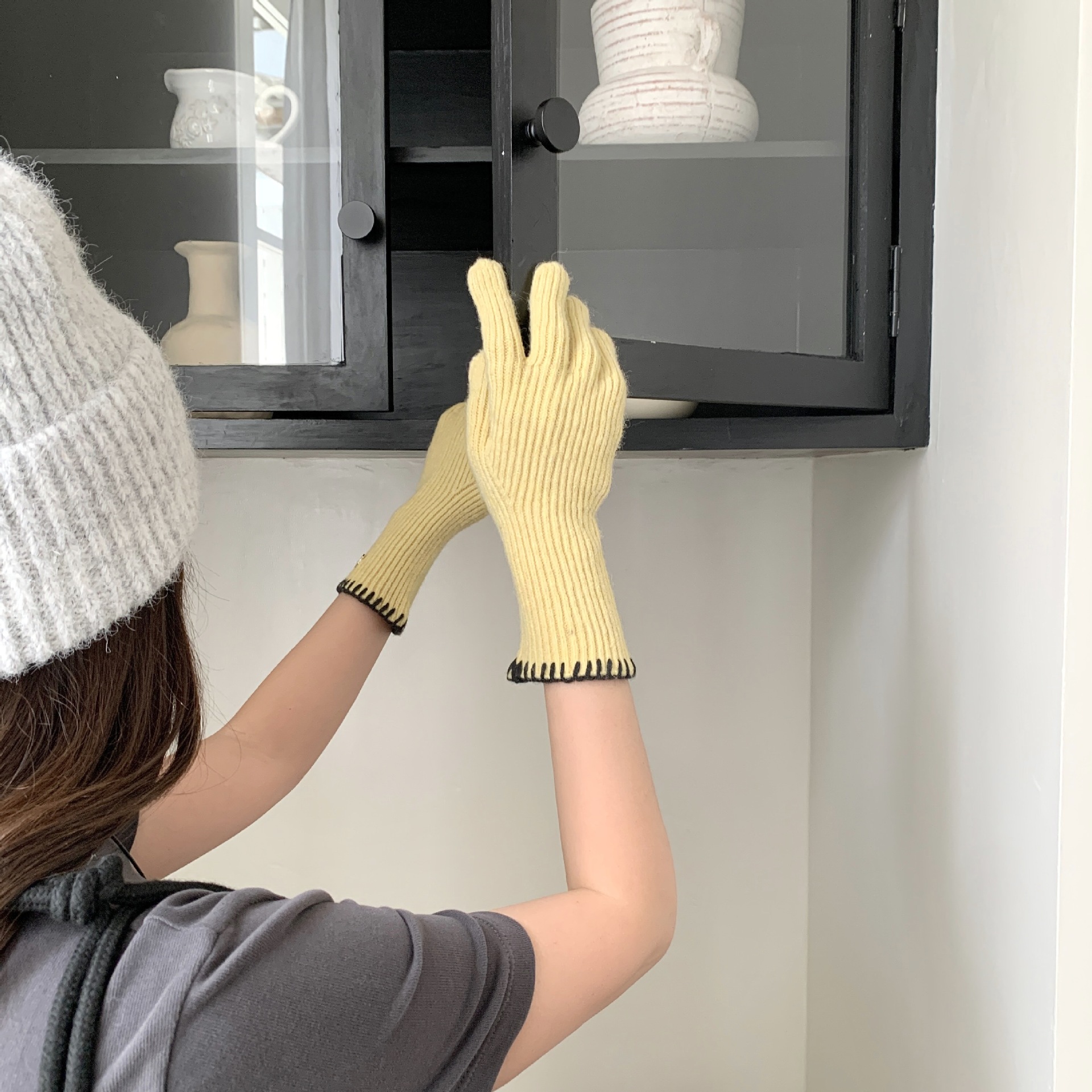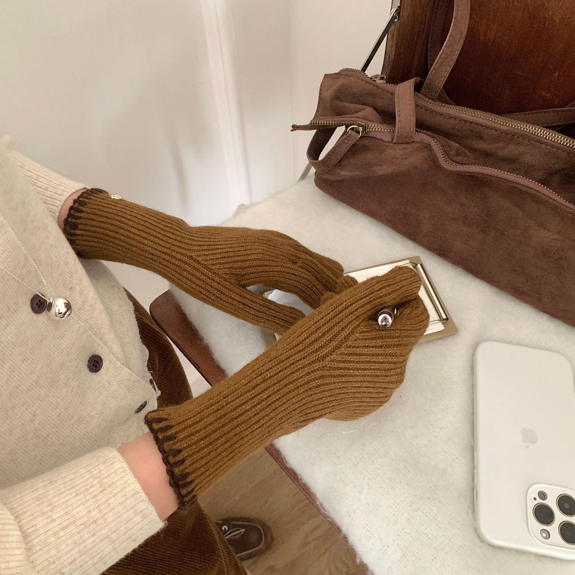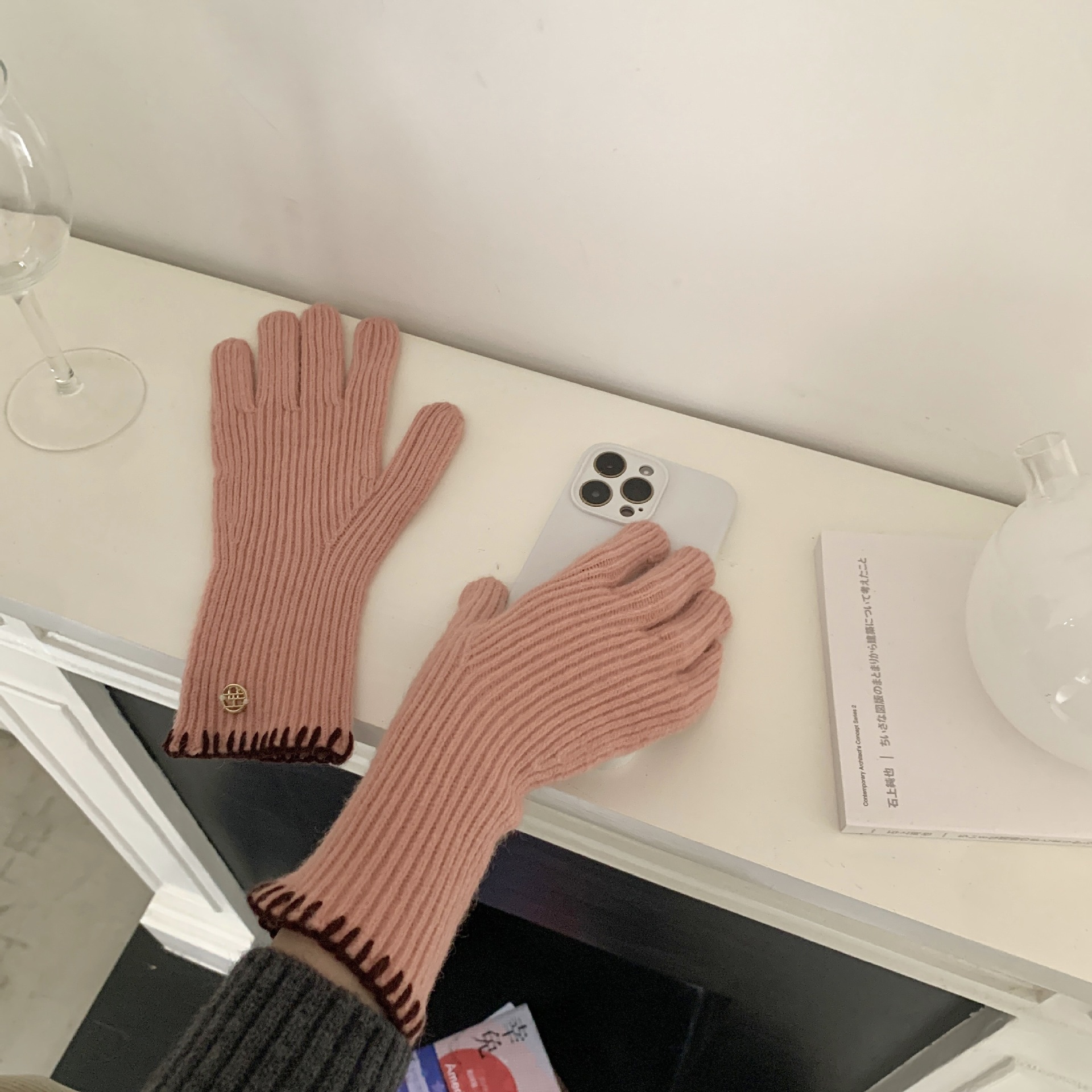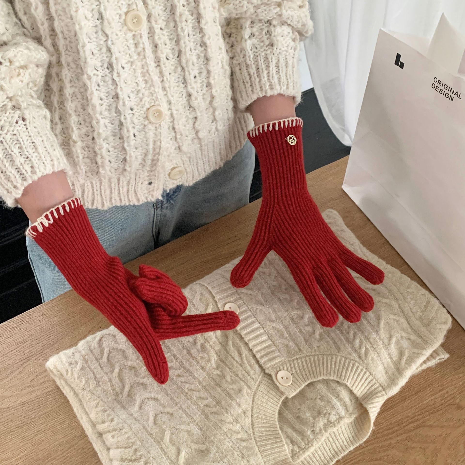한국 주문 ~ 에 긴 튜브 니트 장갑 여성의 겨울 방한 라이딩 따뜻한 5 손가락 장갑 손가락없는 터치 스크린스토어 가기