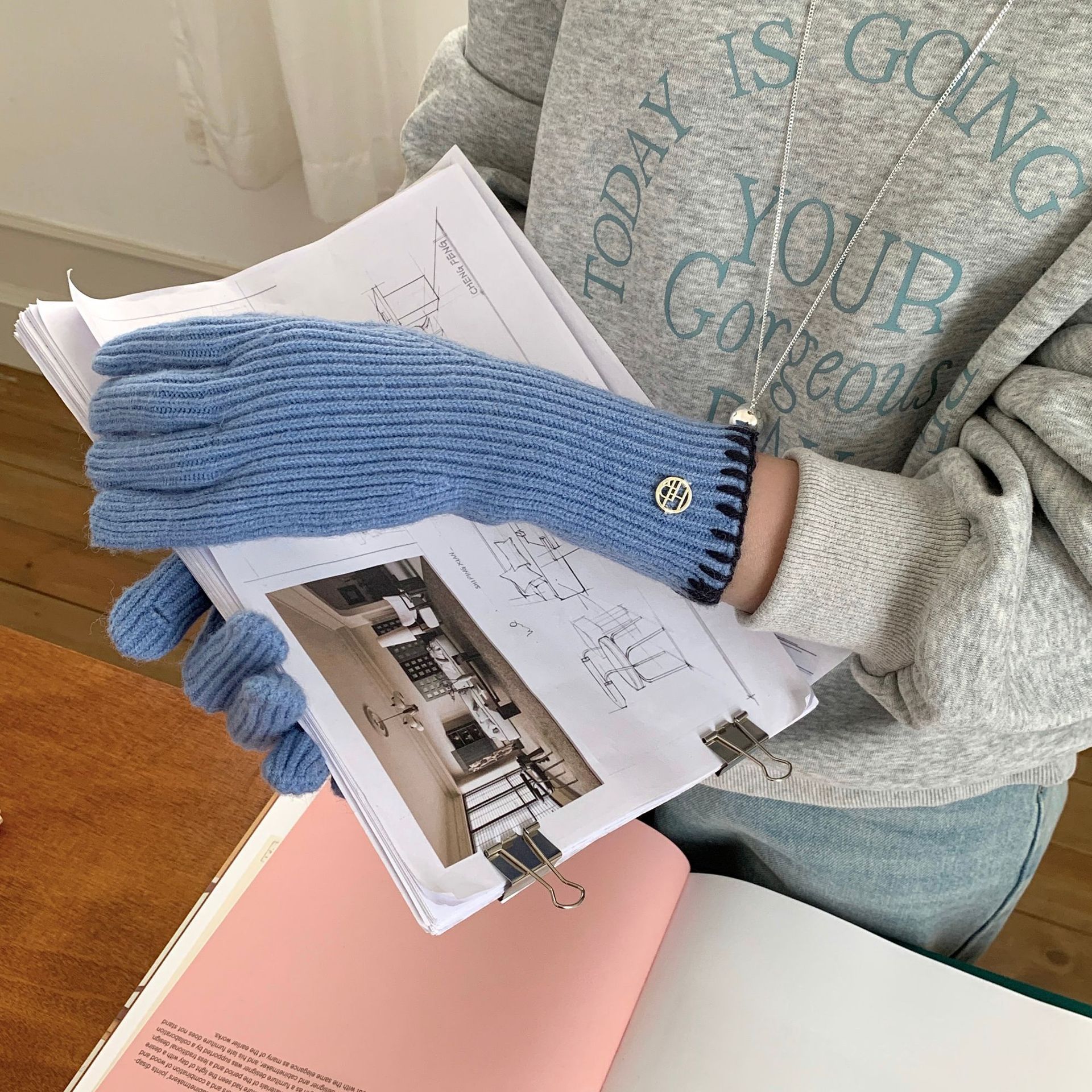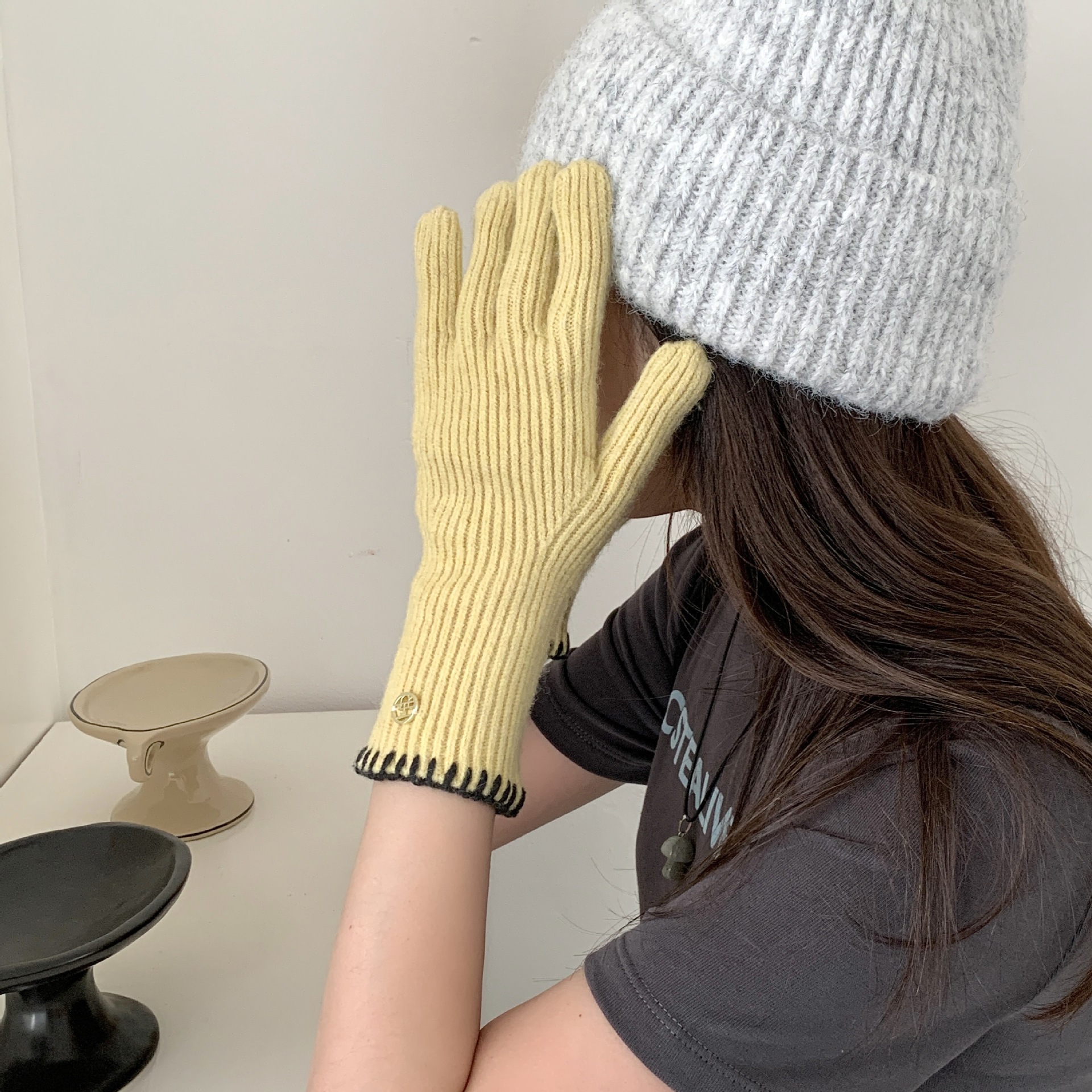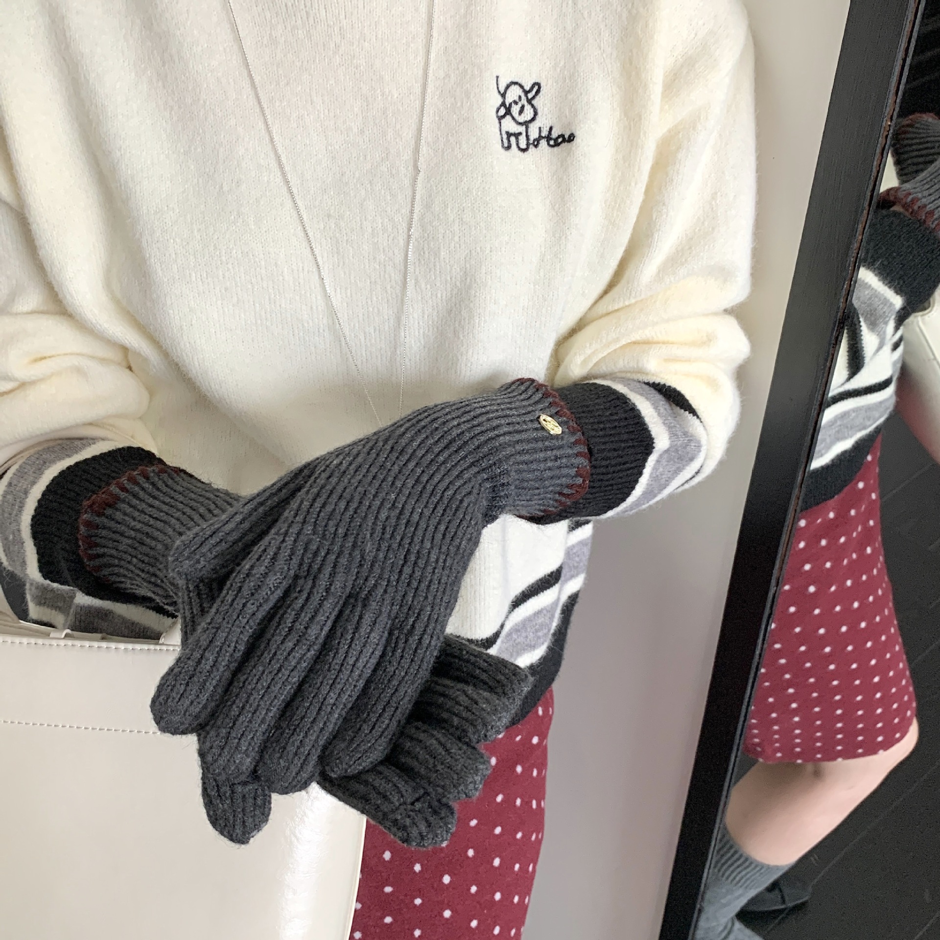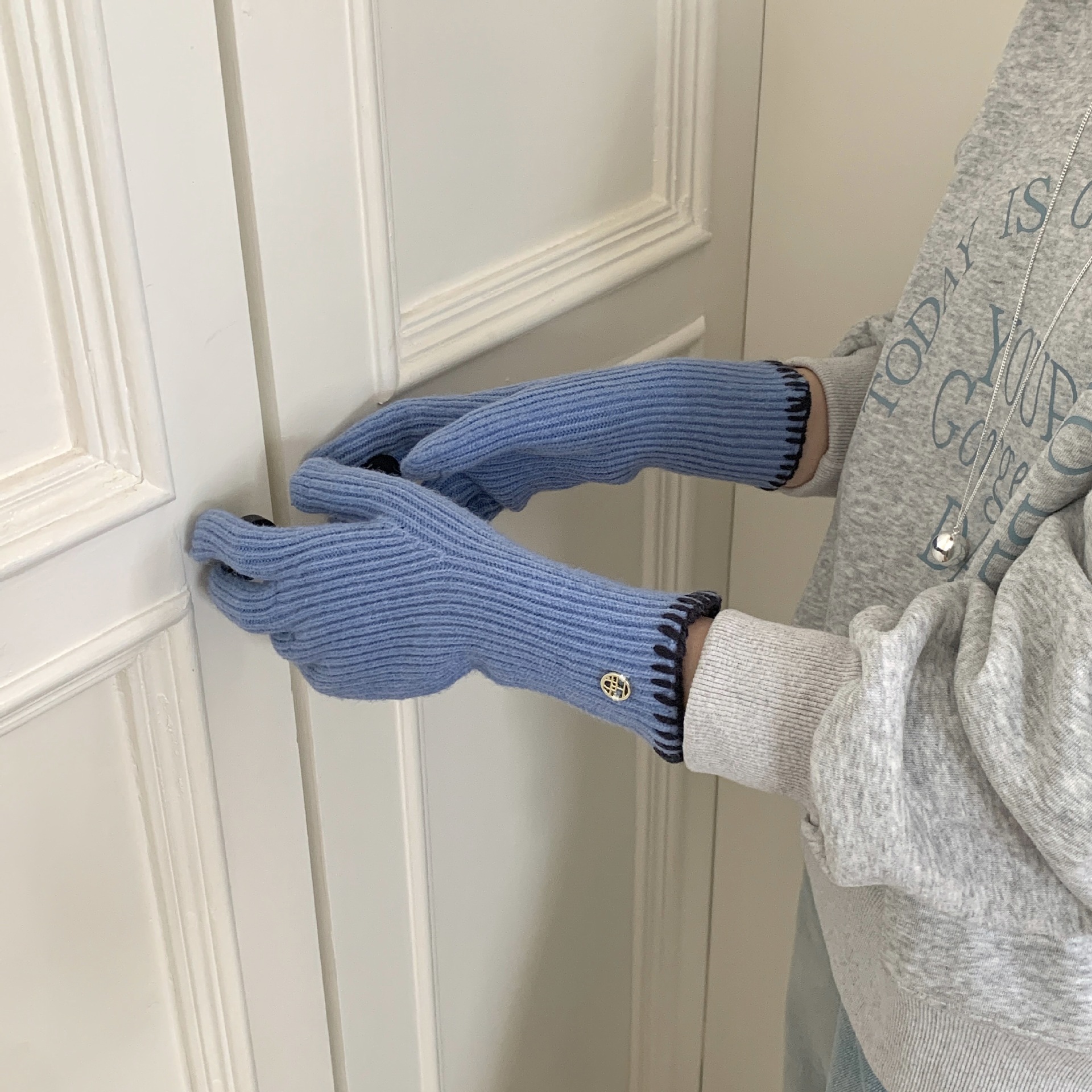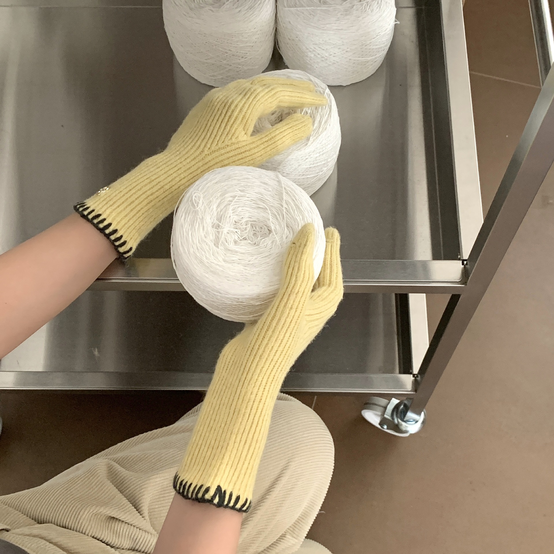 한국 주문 ~ 에 긴 튜브 니트 장갑 여성의 겨울 방한 라이딩 따뜻한 5 손가락 장갑 손가락없는 터치 스크린스토어 가기