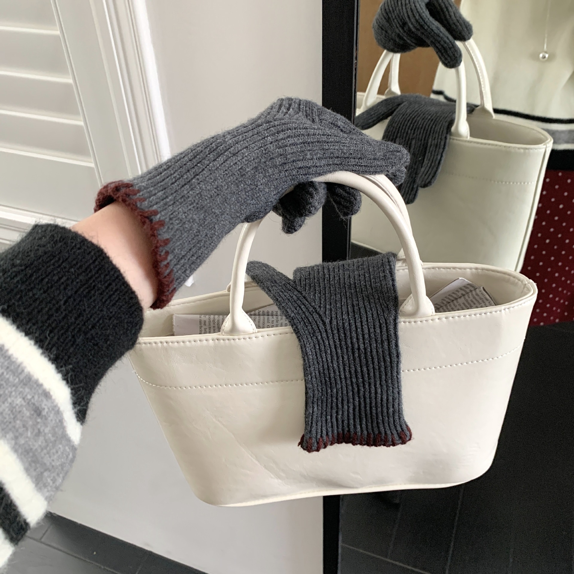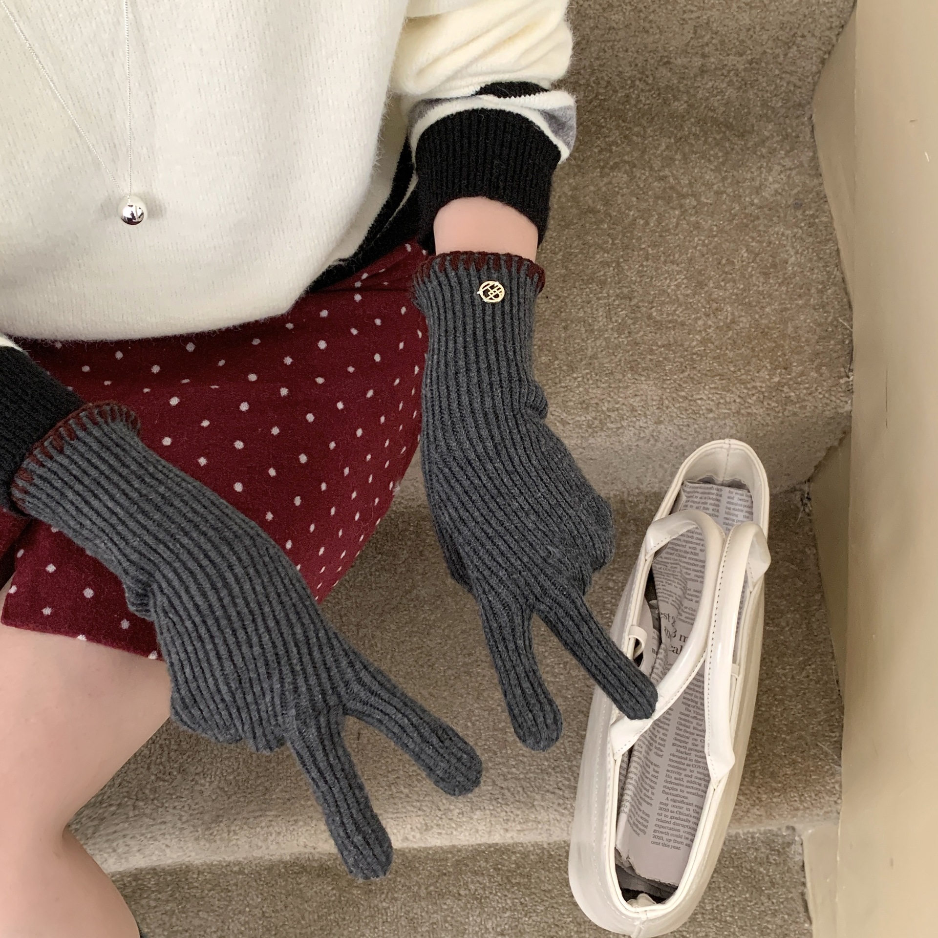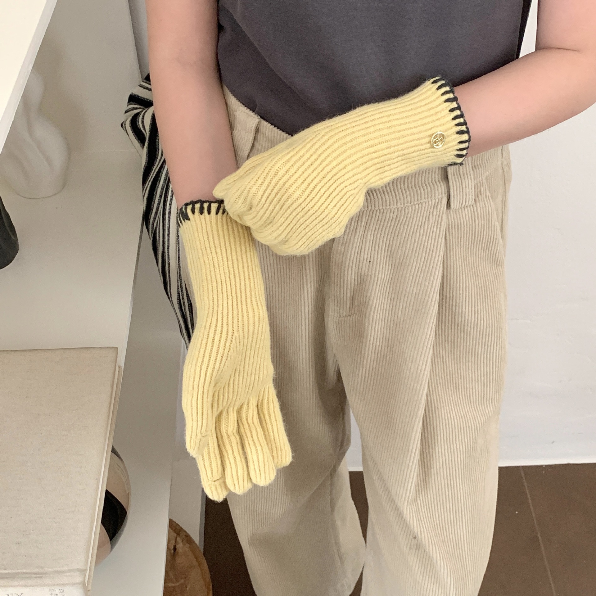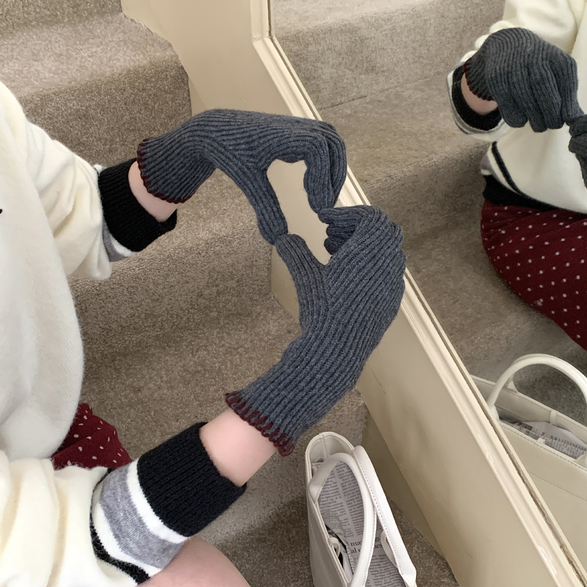 한국 주문 ~ 에 긴 튜브 니트 장갑 여성의 겨울 방한 라이딩 따뜻한 5 손가락 장갑 손가락없는 터치 스크린