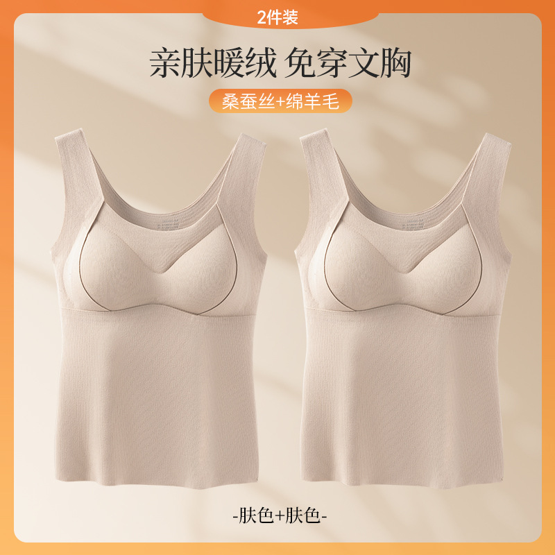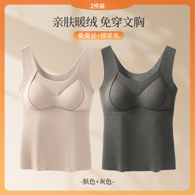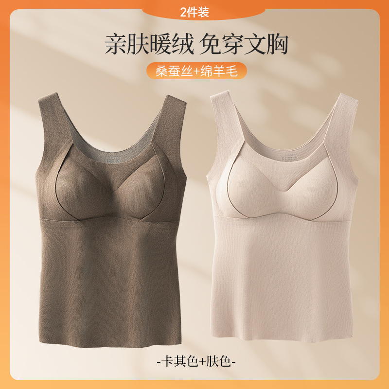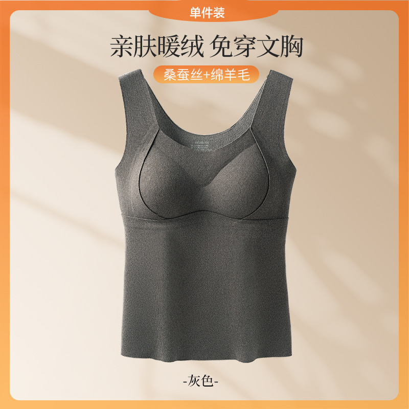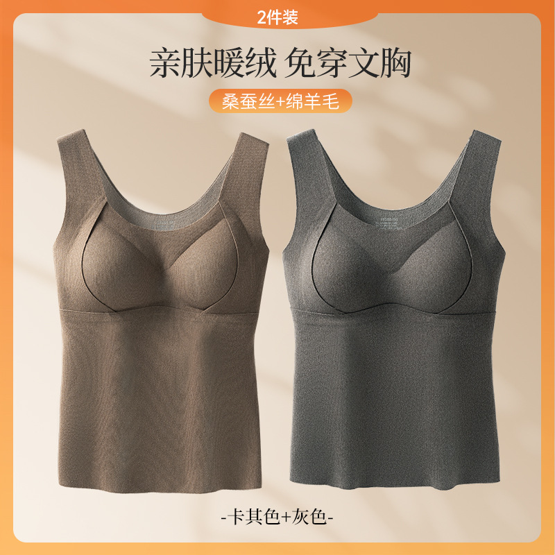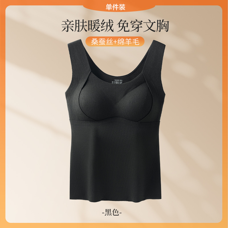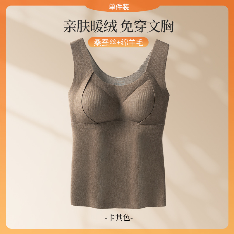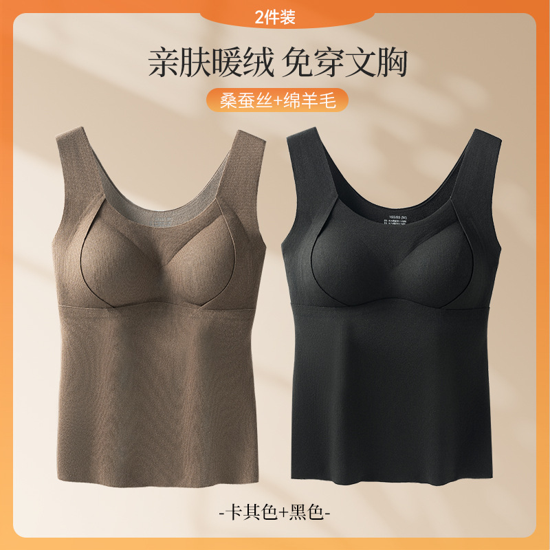 Yalu 원피스 따뜻한 조끼 가슴 패드와 여성 원활한 양모 실크베이스 탑 가을과 겨울 보이지 않음스토어 가기