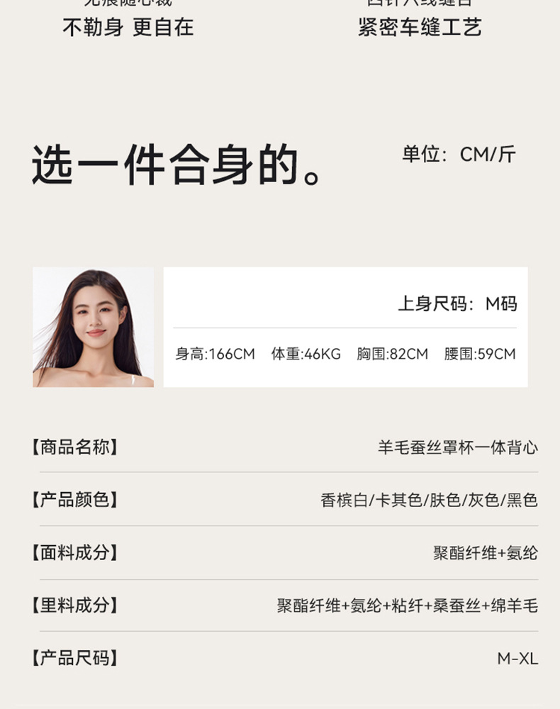 • 샴페인 화이트 + 카키 [실크 스킨 너리싱 울 따뜻한 노웨어 브라]