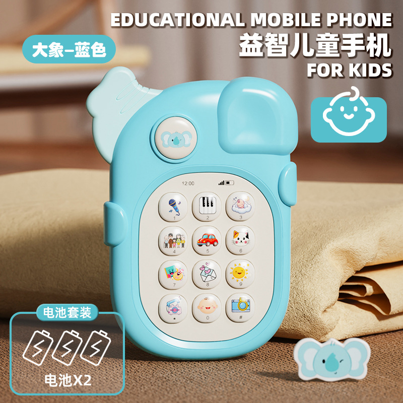 • [코끼리-블루] 어린이용 이중언어 휴대폰 - 끈 + 충전지 포함