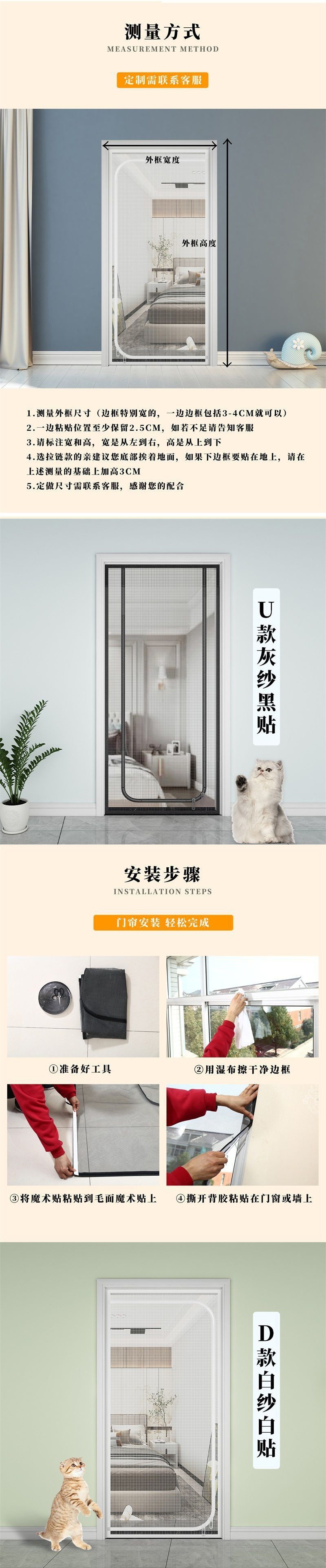 안티 고양이 스크린 창 문 커튼 벨크로 스크린 침실 파티션 지퍼 거즈 커튼 안티 모기 애완 동물 아웃 스크린 도어