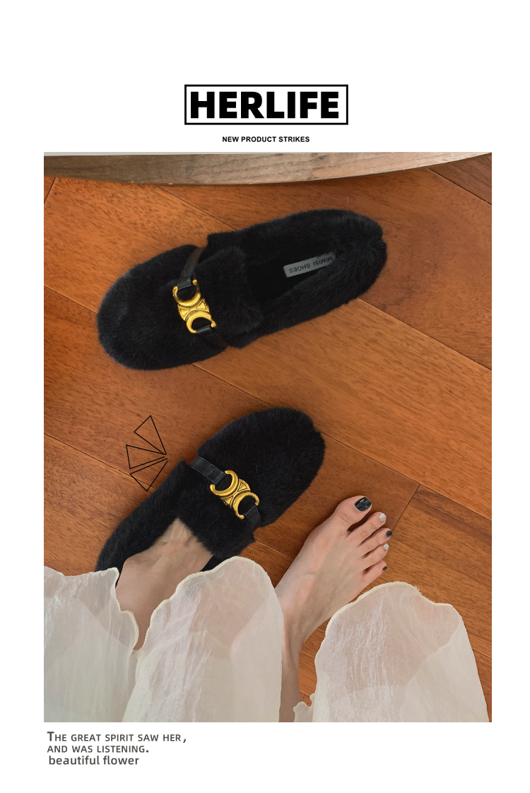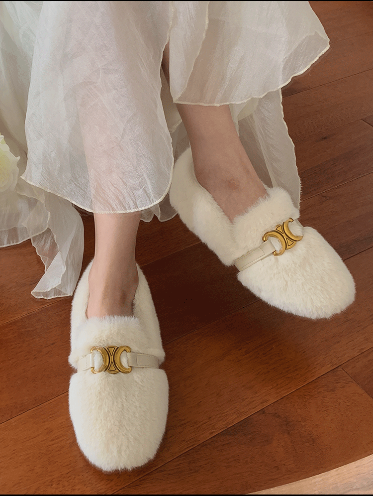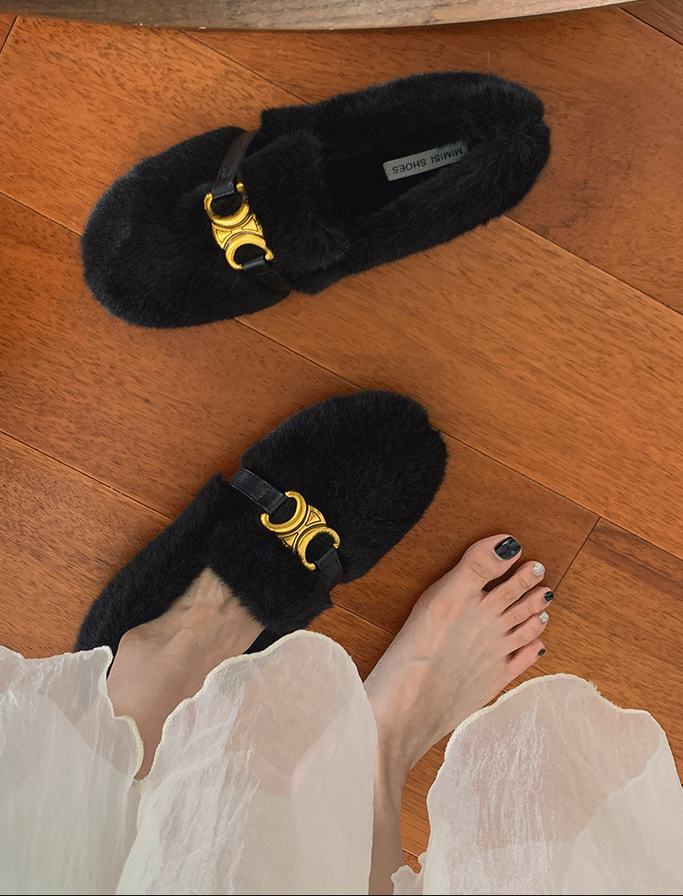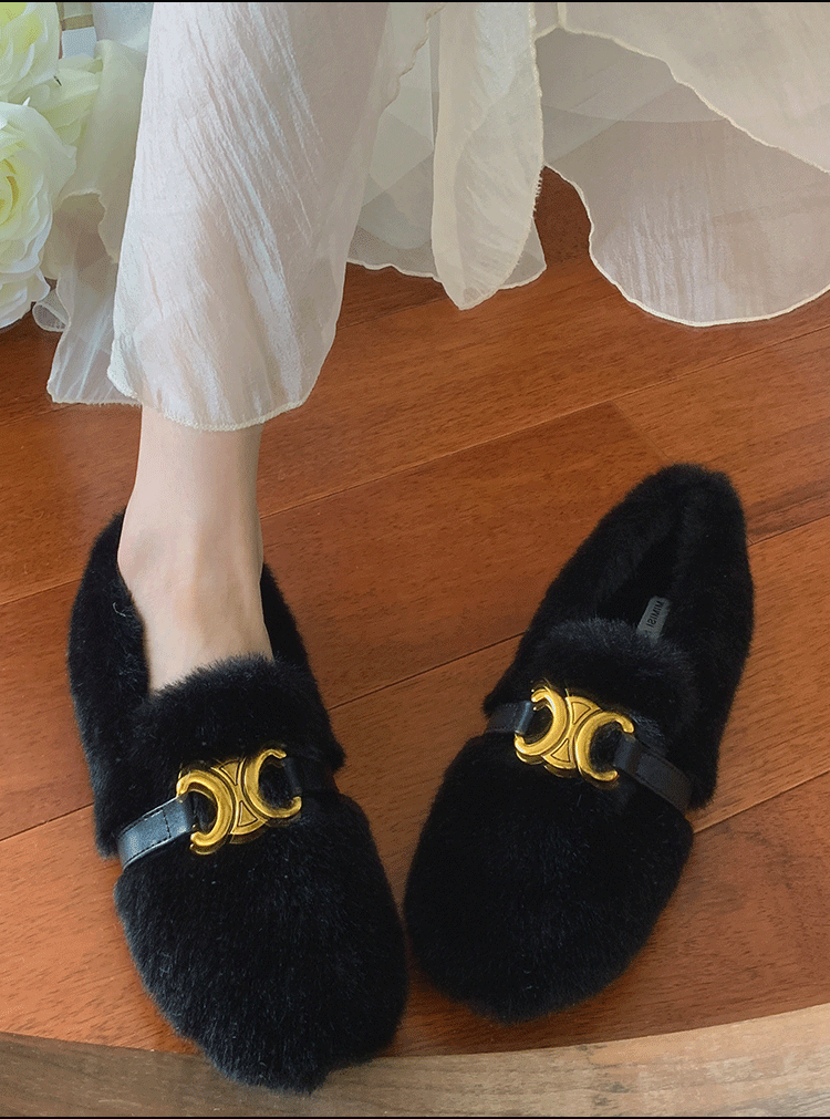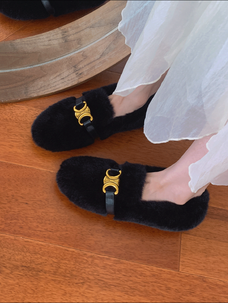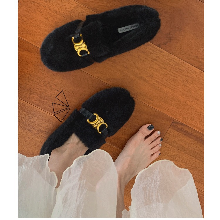 내부 키높이~ 라이트 럭셔리 스타일 트라이엄프 아치 골드 버클 보온 비니슈즈 여성용 2024 가을 겨울 신상 부드러운 밑창 패션 퍼 슈즈