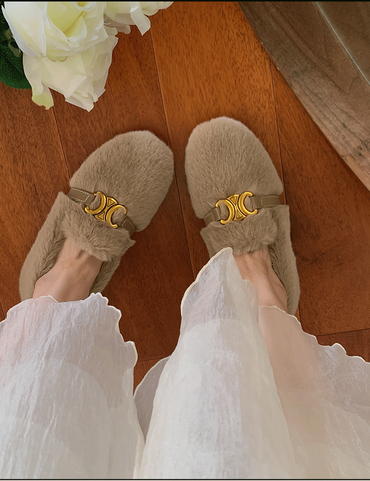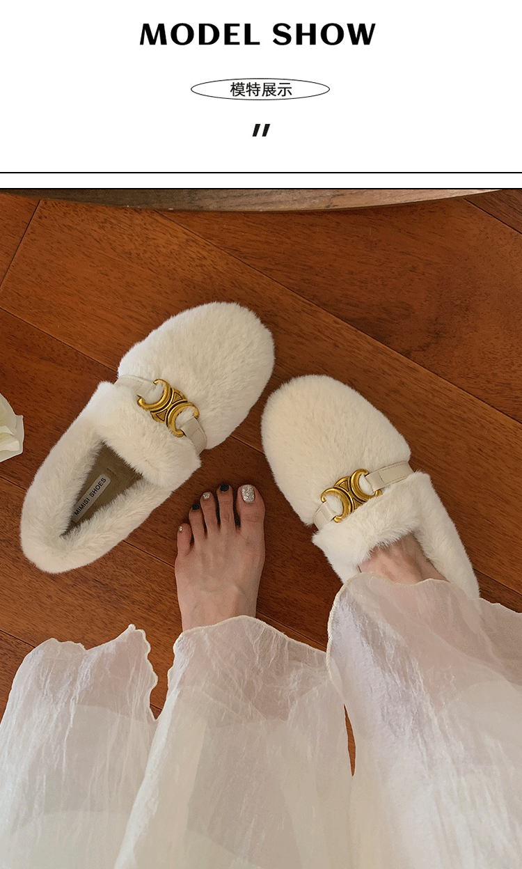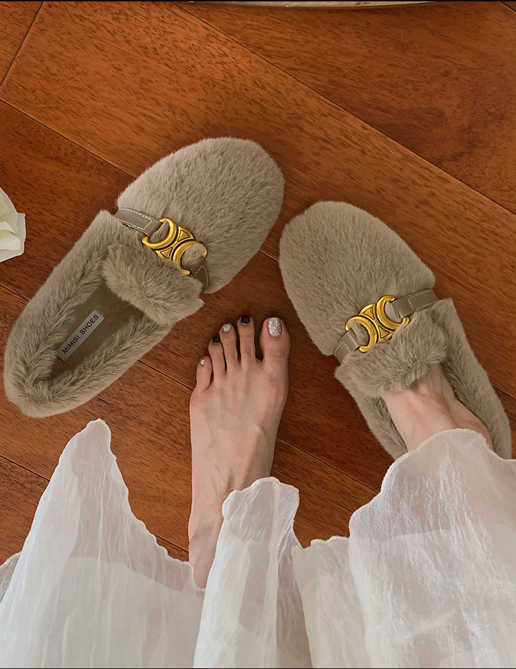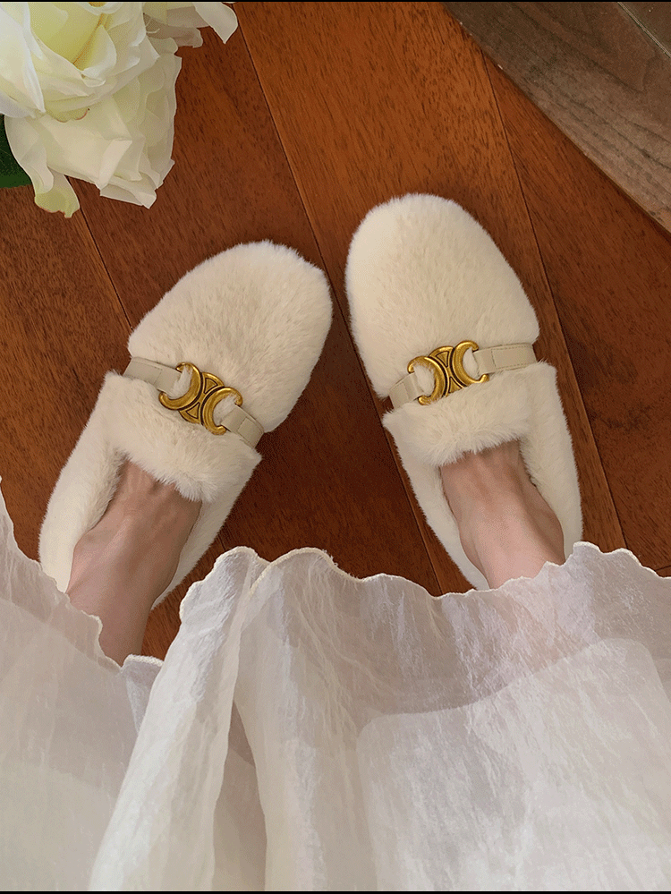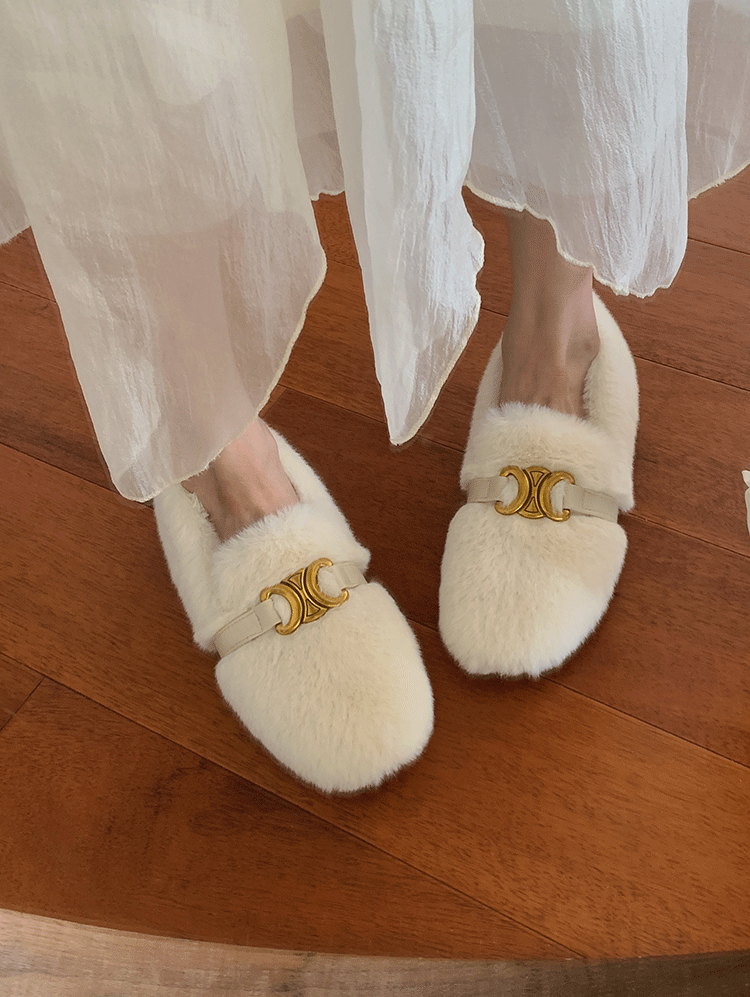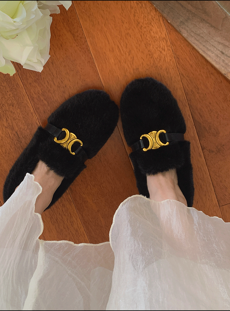 내부 키높이~ 라이트 럭셔리 스타일 트라이엄프 아치 골드 버클 보온 비니슈즈 여성용 2024 가을 겨울 신상 부드러운 밑창 패션 퍼 슈즈