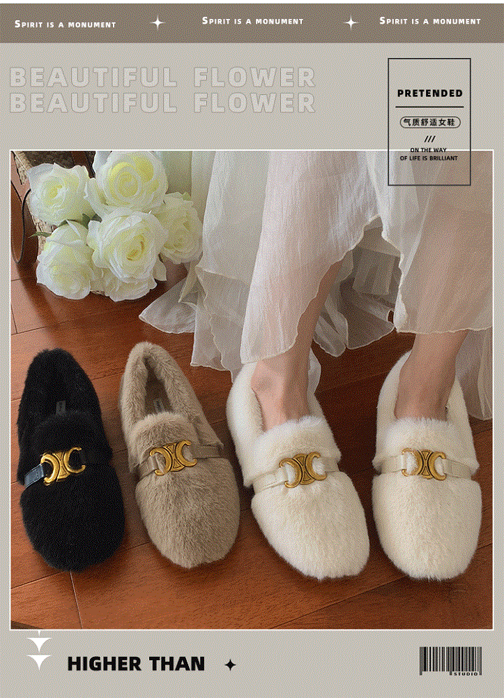 내부 키높이~ 라이트 럭셔리 스타일 트라이엄프 아치 골드 버클 보온 비니슈즈 여성용 2024 가을 겨울 신상 부드러운 밑창 패션 퍼 슈즈스토어 가기