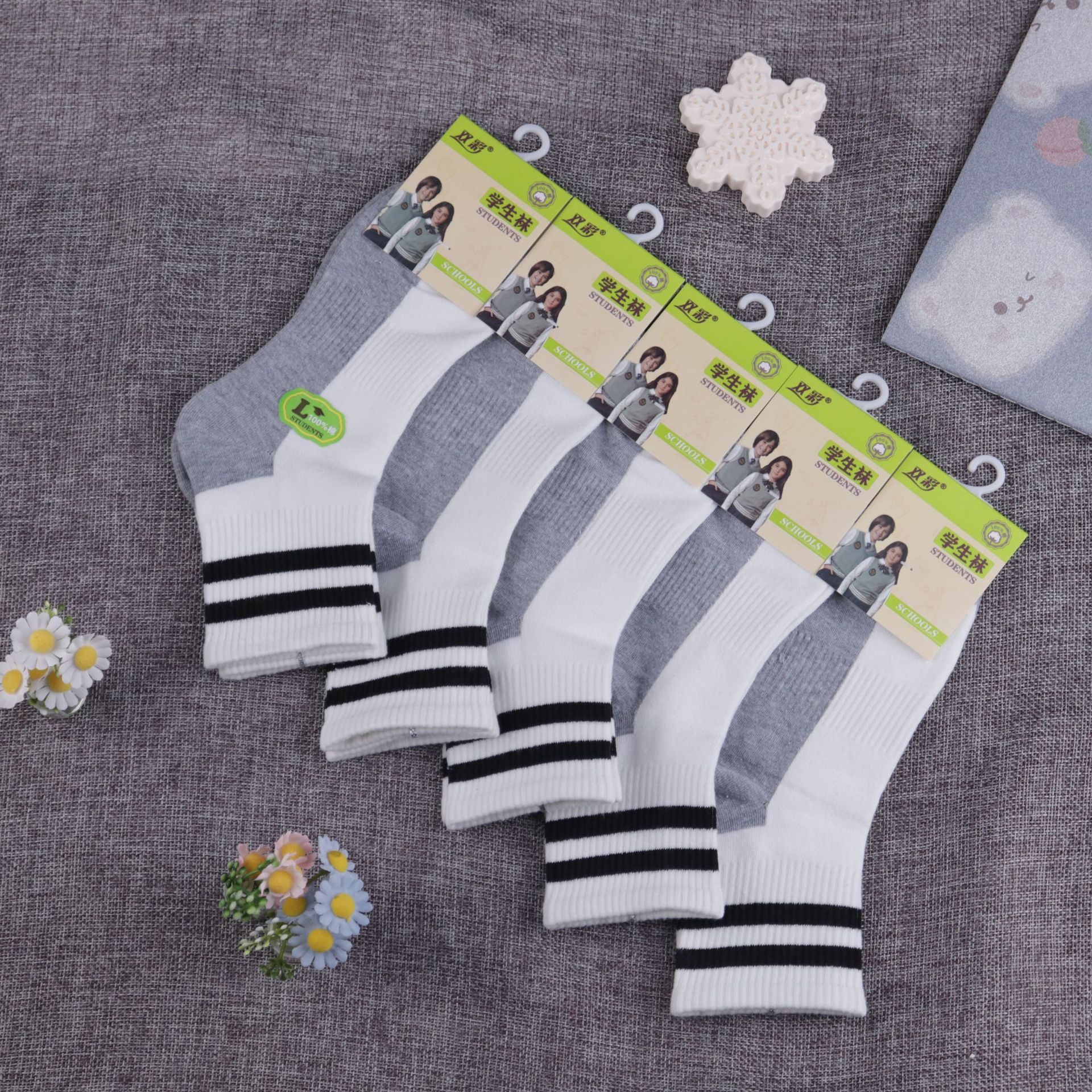 더블컬러 브랜드 아동용 양말 여름용 얇은 통기성 땀 흡수 항균 방취 학생용 중목면 양말 도매