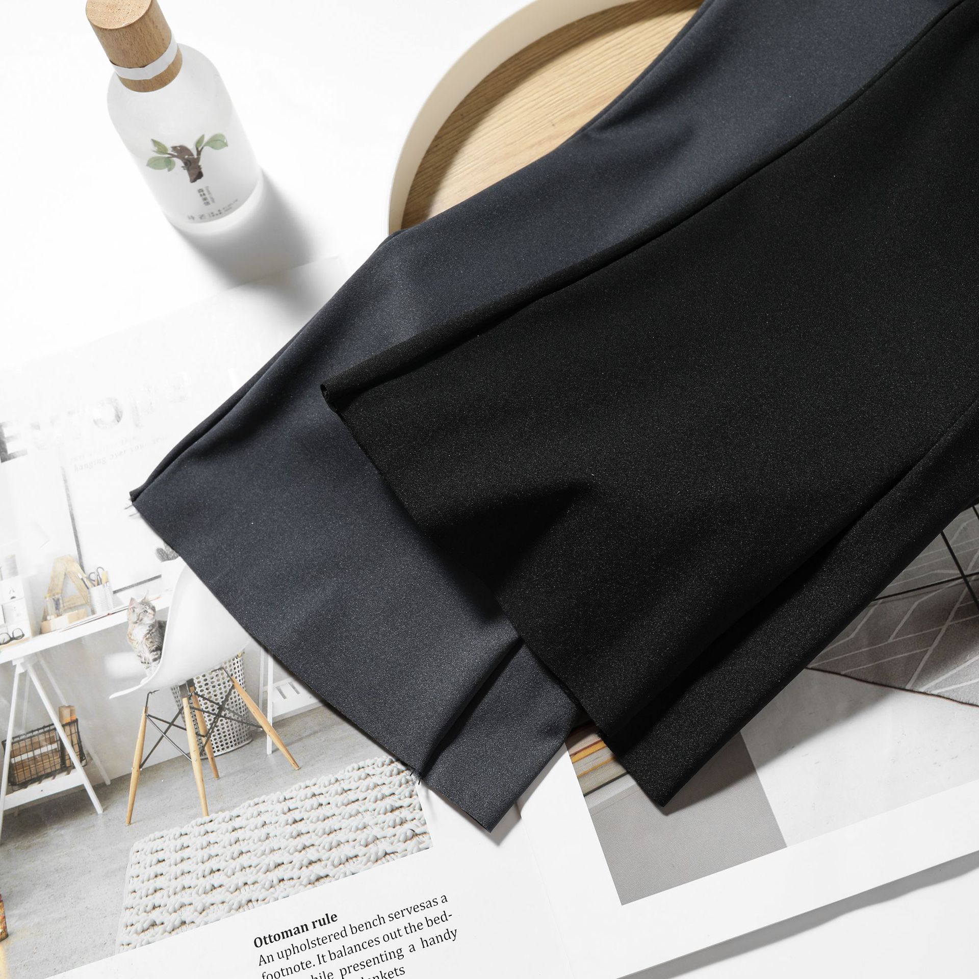• 광택 없는 부츠컷 램스울 블랙 팬츠