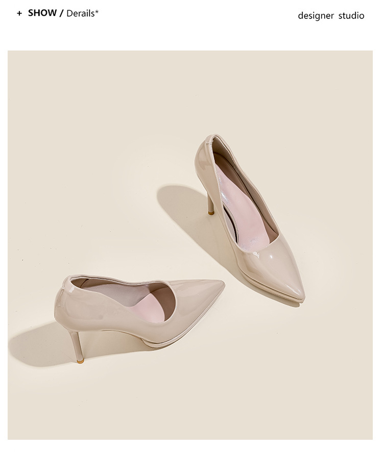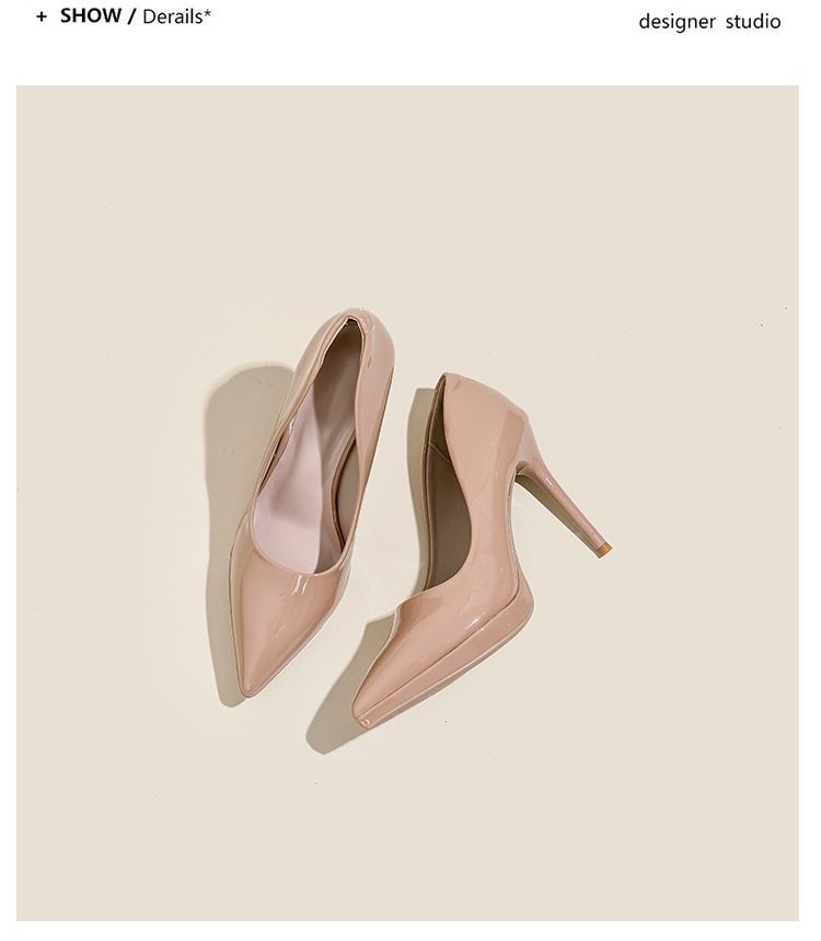 살구 방수 플랫폼 하이힐 여성 스틸레토 힐 2025 봄, 여름, 가을 새로운 특허 가죽 섹시한 다목적 기질 신발스토어 가기