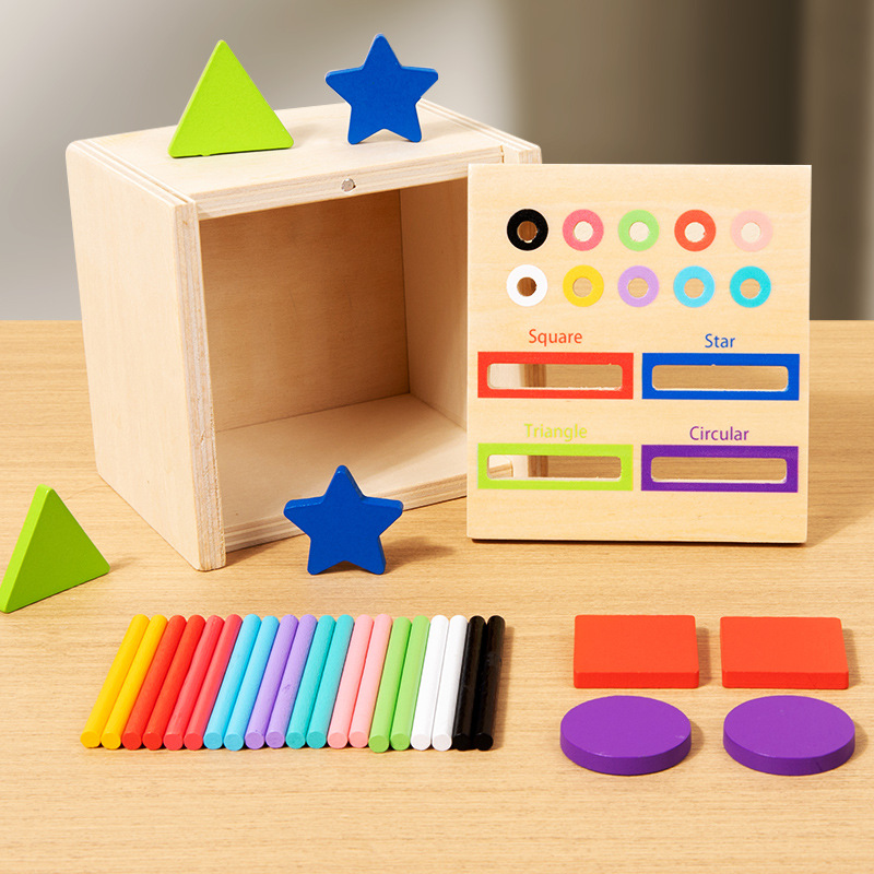 3 ~ 6 년 된 교육 나무 장난감 색상 분류 양동이 어린이 색상 모양 인지 매칭 솔리드 우드 펜 케이스 지원스토어 가기