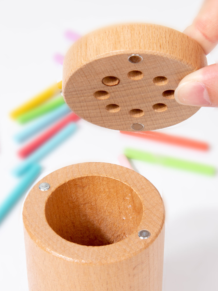 3 ~ 6 년 된 교육 나무 장난감 색상 분류 양동이 어린이 색상 모양 인지 매칭 솔리드 우드 펜 케이스 지원