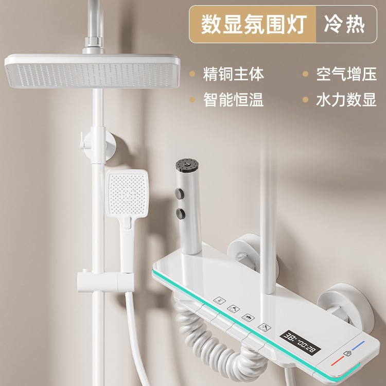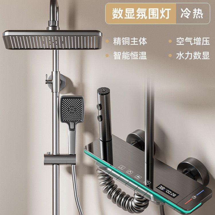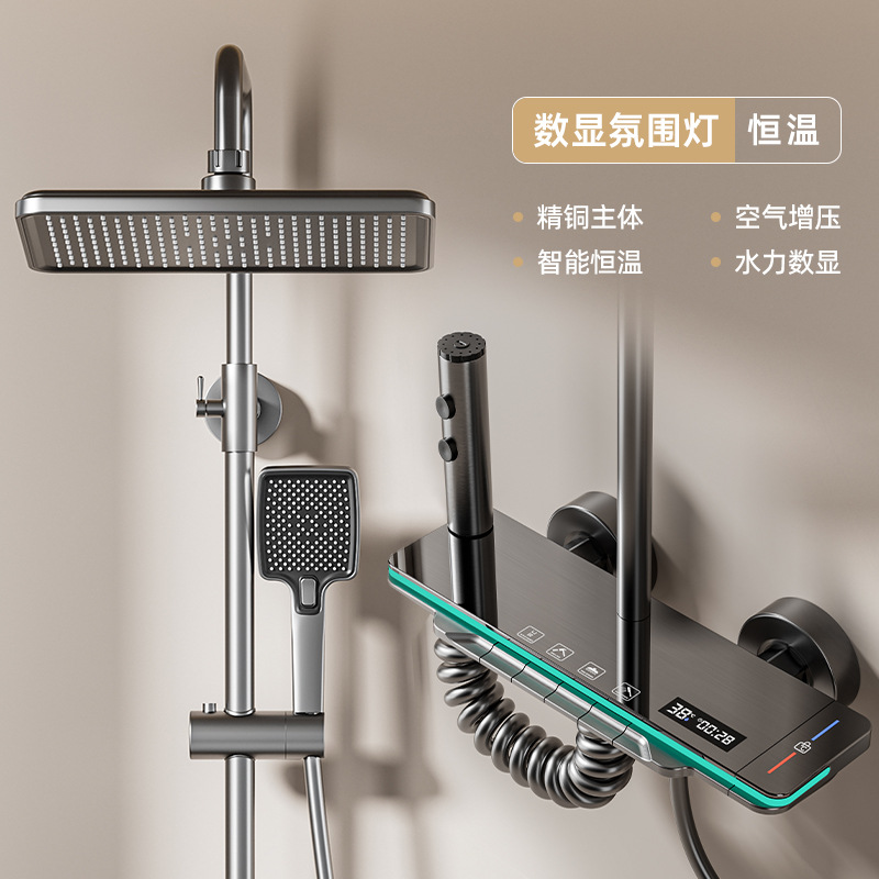 모든 구리 샤워 세트 호텔 목욕 디지털 디스플레이 피아노 키 공기 압축 샤워 세트 소스 공장스토어 가기