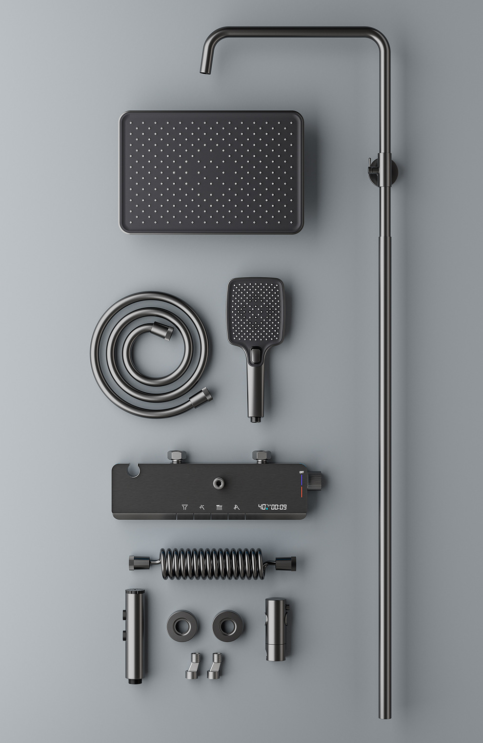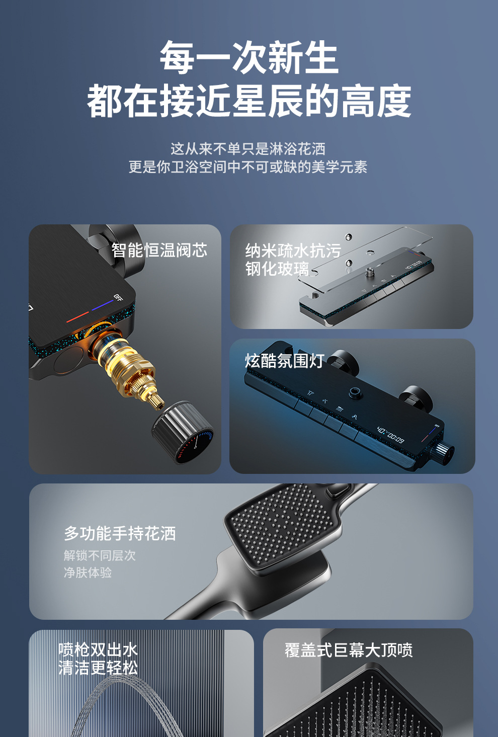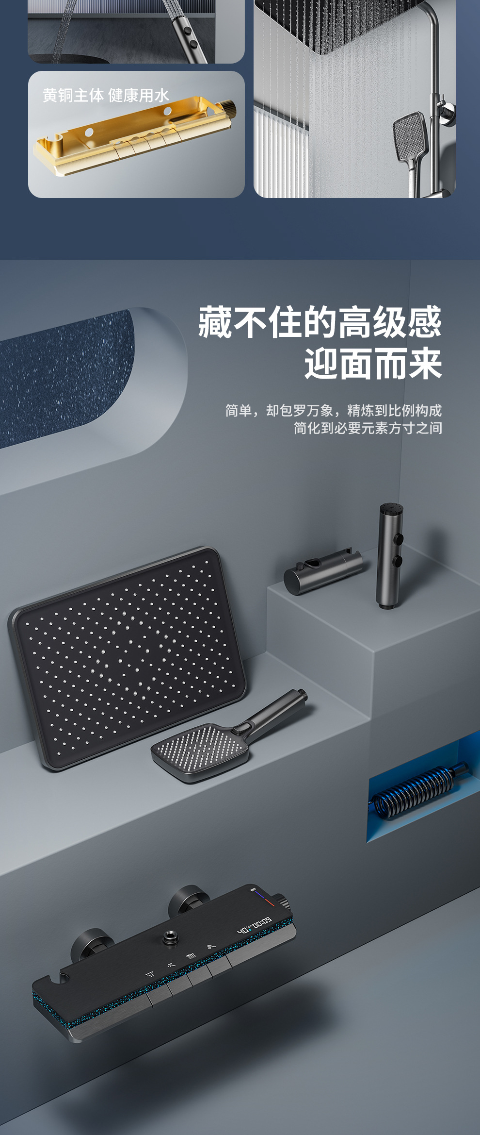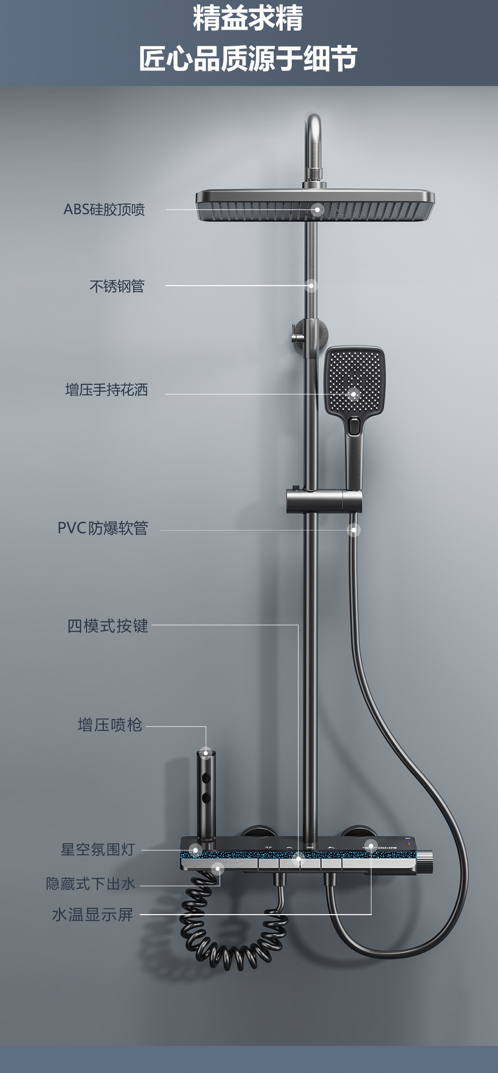 모든 구리 샤워 세트 호텔 목욕 디지털 디스플레이 피아노 키 공기 압축 샤워 세트 소스 공장