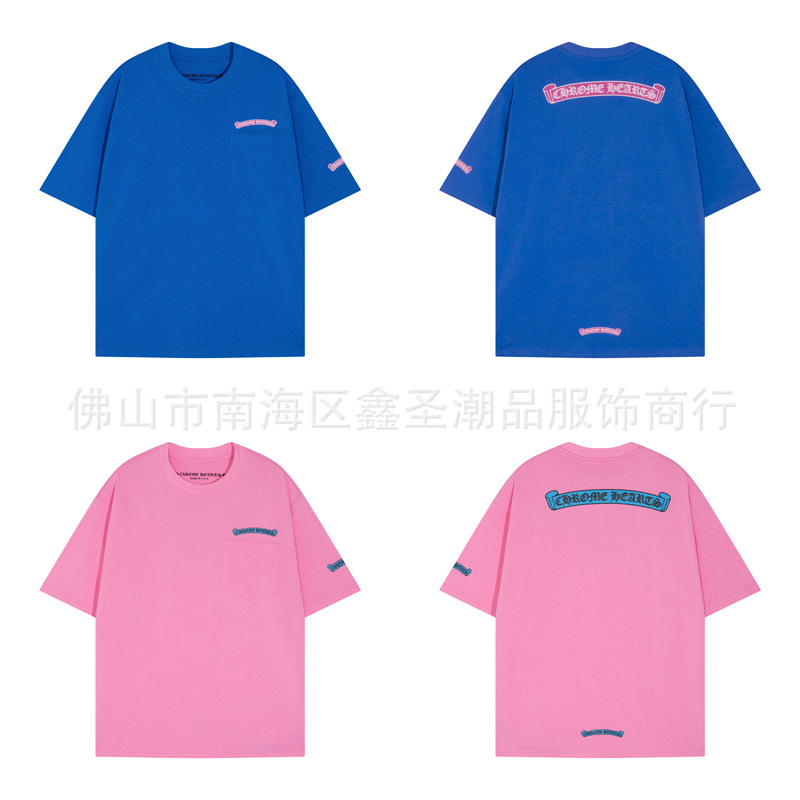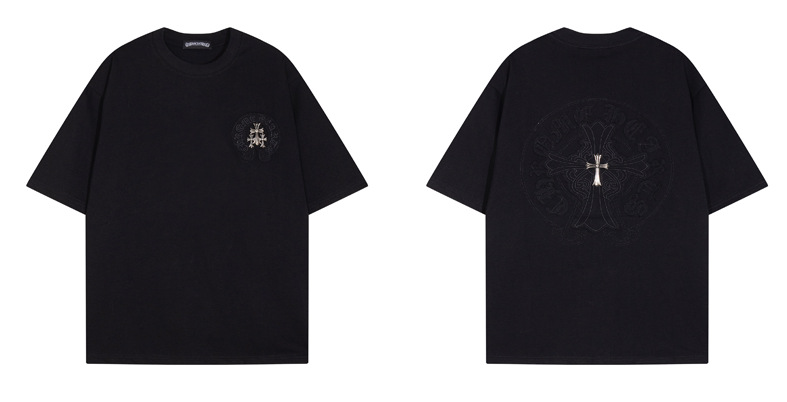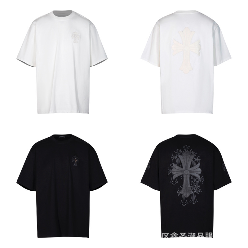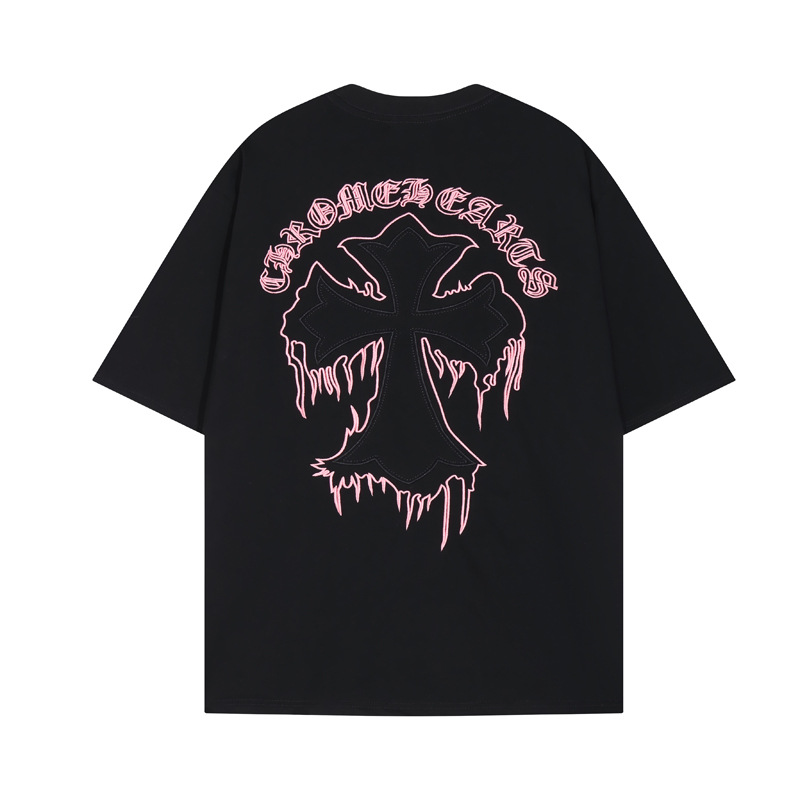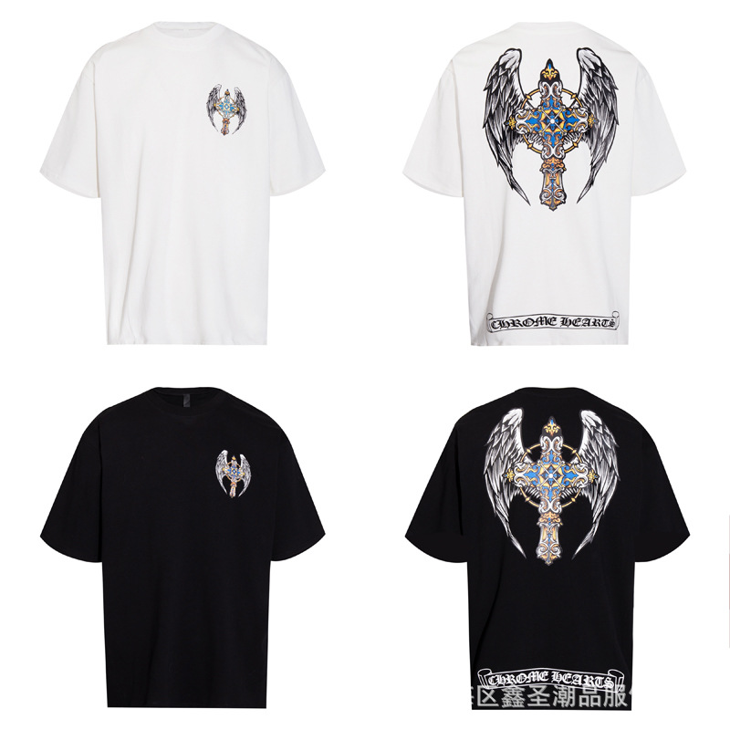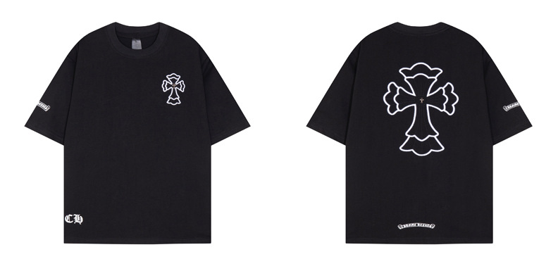 24 트렌디 브랜드 크롬 하트 여름 신작 크로우 라운드 넥 루즈 캐주얼 반팔 티셔츠 남성과 여성을위한 동일한 스타일