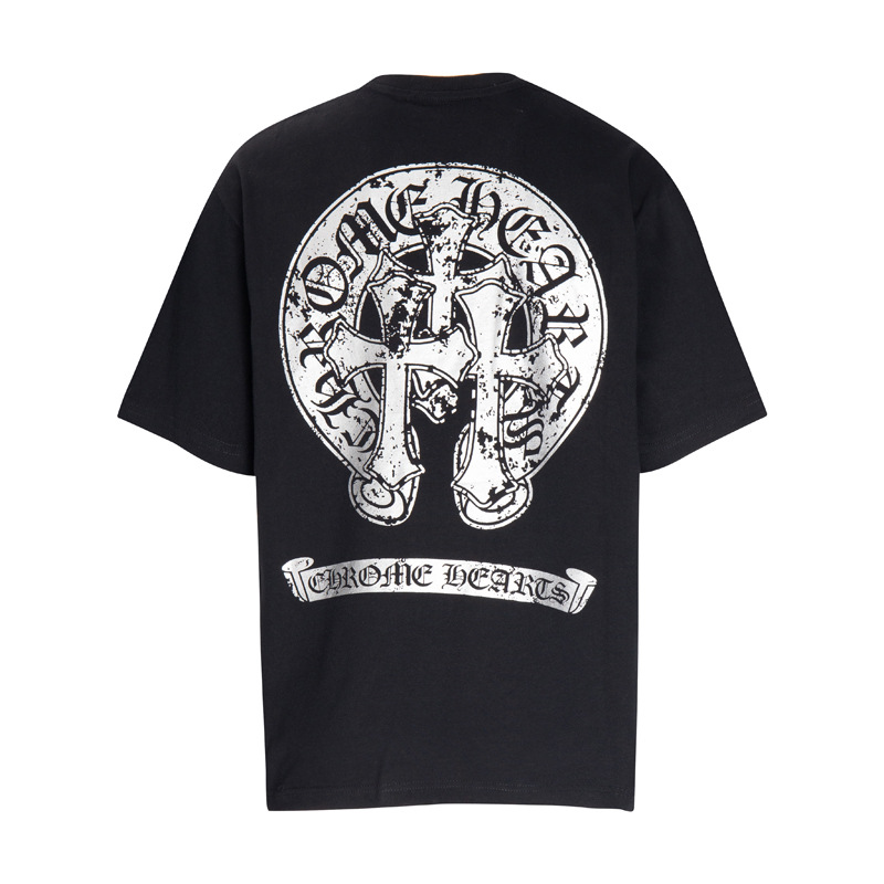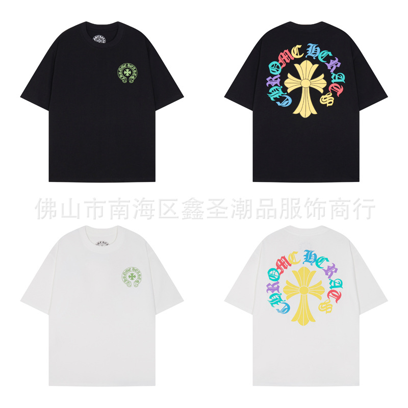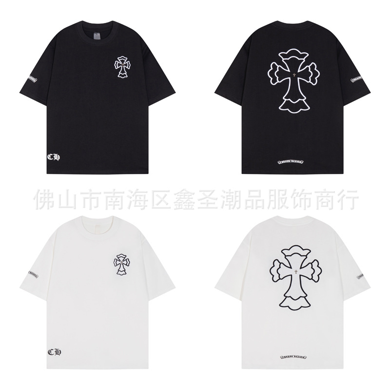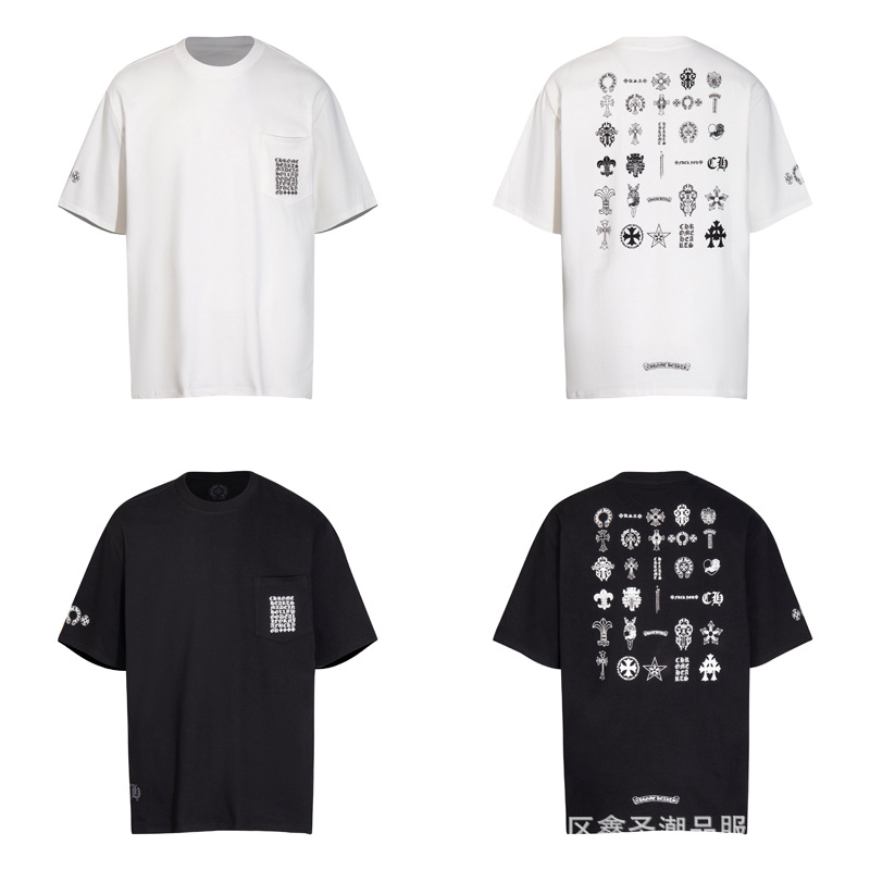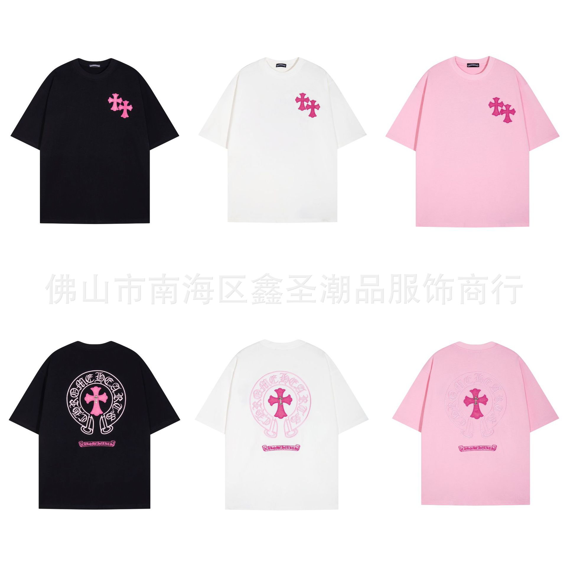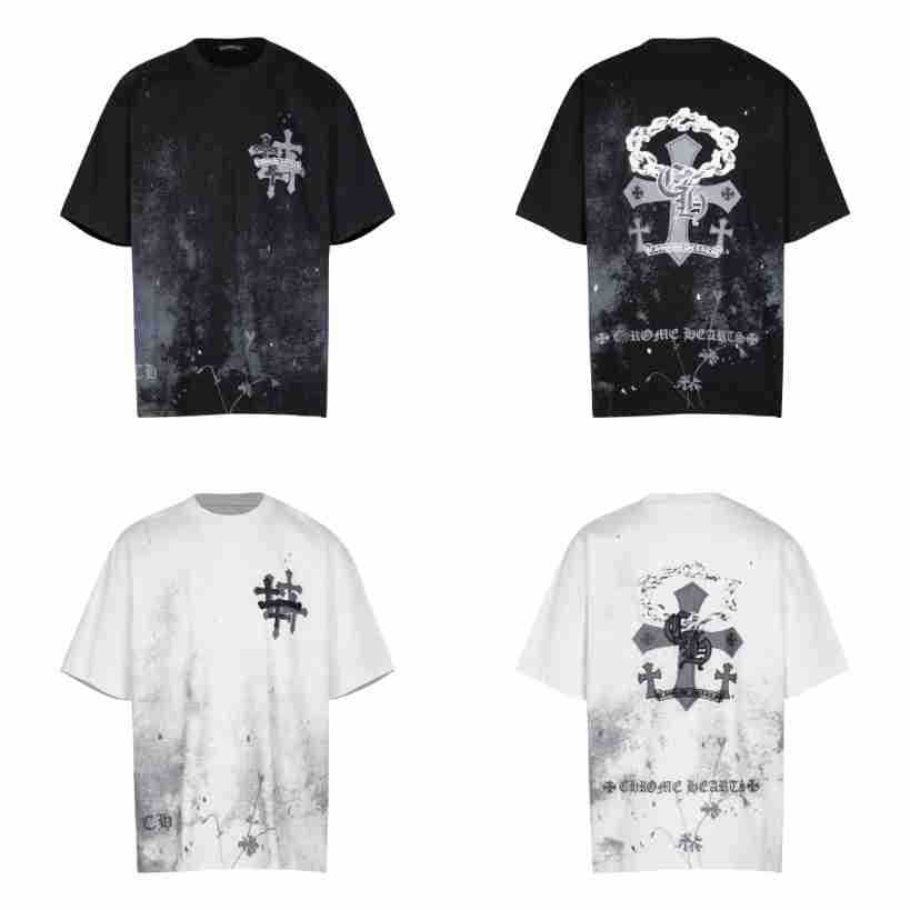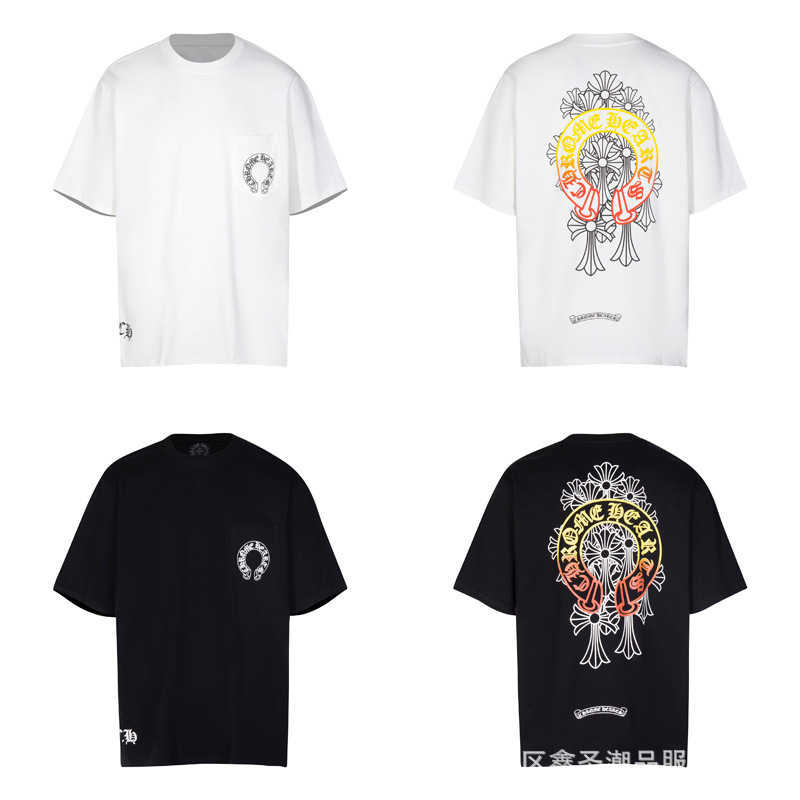 24 트렌디 브랜드 크롬 하트 여름 신작 크로우 라운드 넥 루즈 캐주얼 반팔 티셔츠 남성과 여성을위한 동일한 스타일스토어 가기