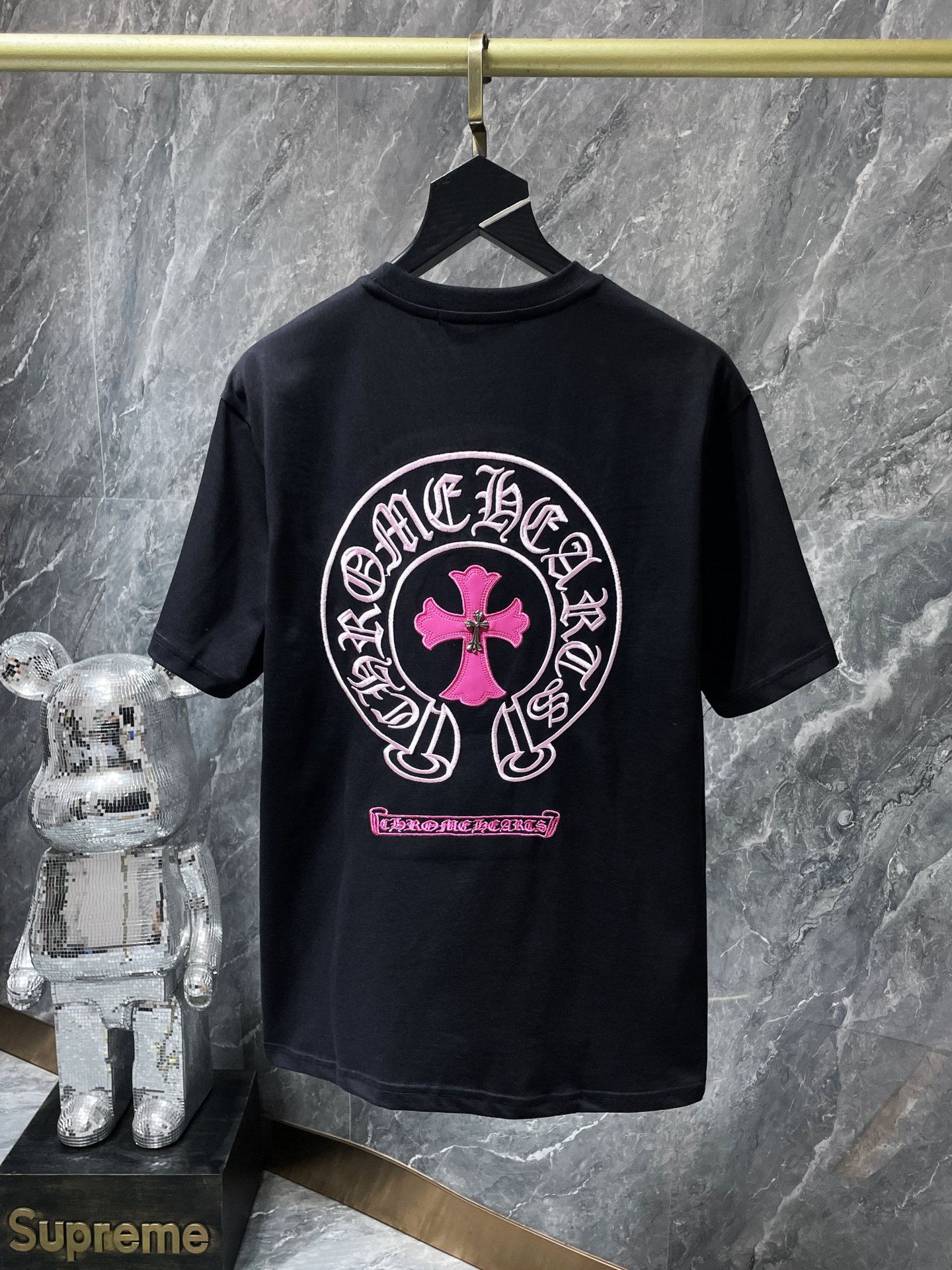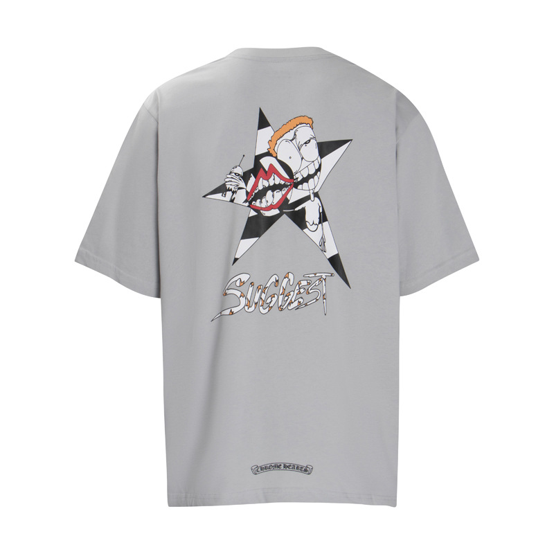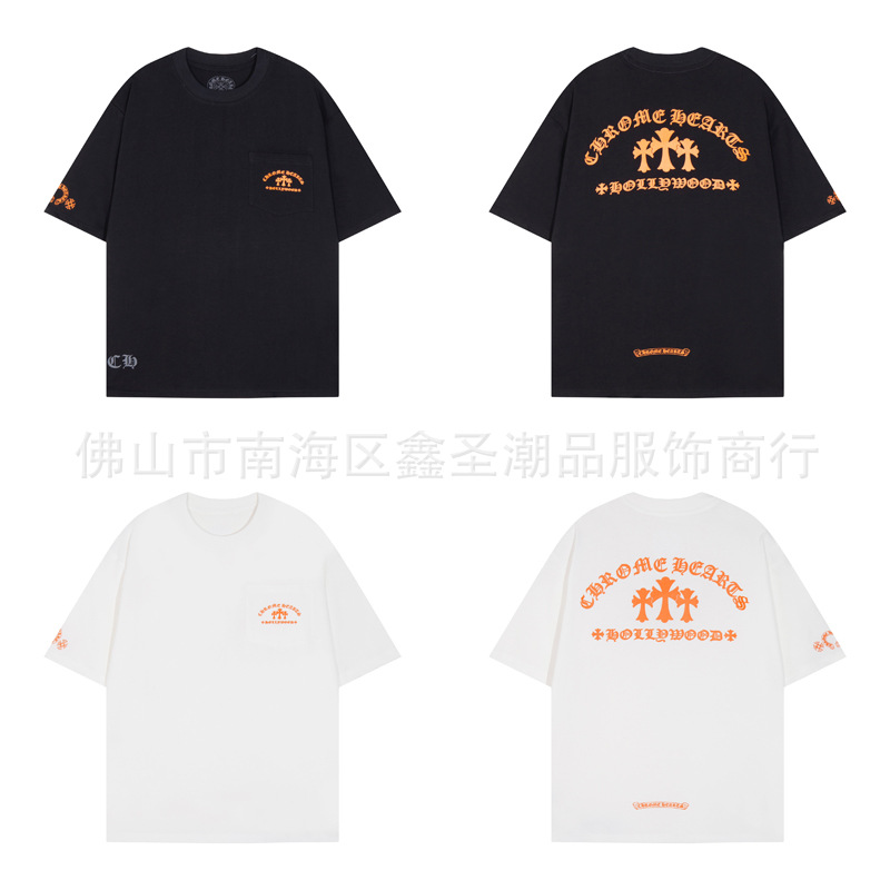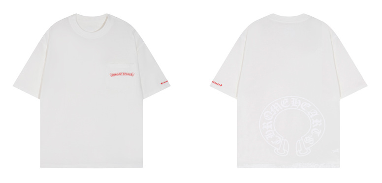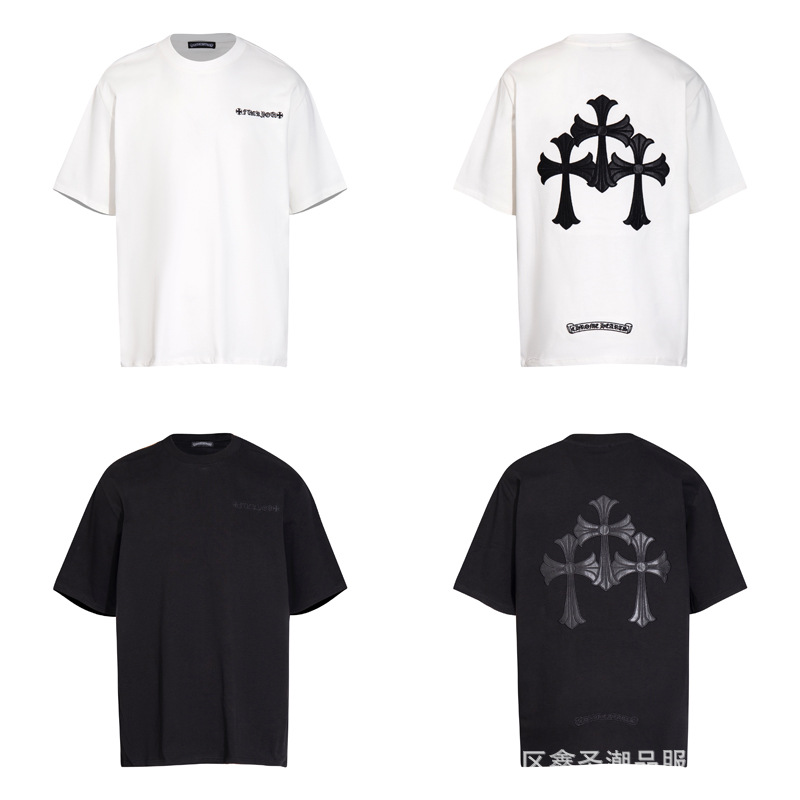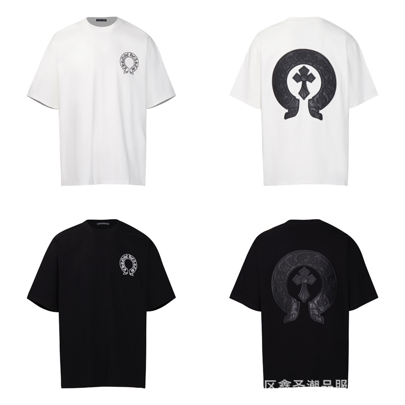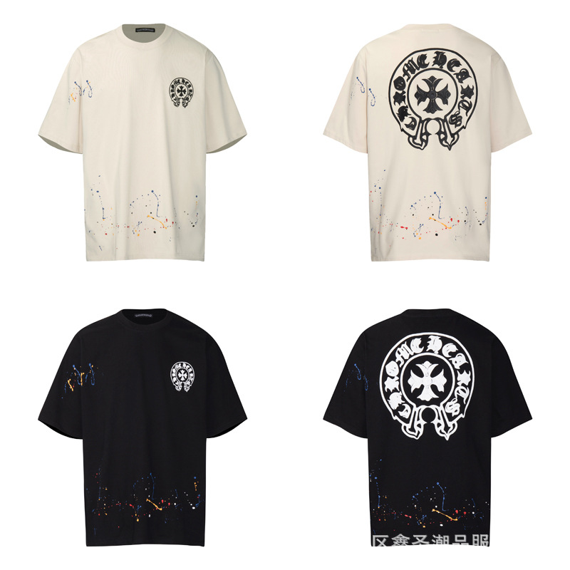 24 트렌디 브랜드 크롬 하트 여름 신작 크로우 라운드 넥 루즈 캐주얼 반팔 티셔츠 남성과 여성을위한 동일한 스타일스토어 가기