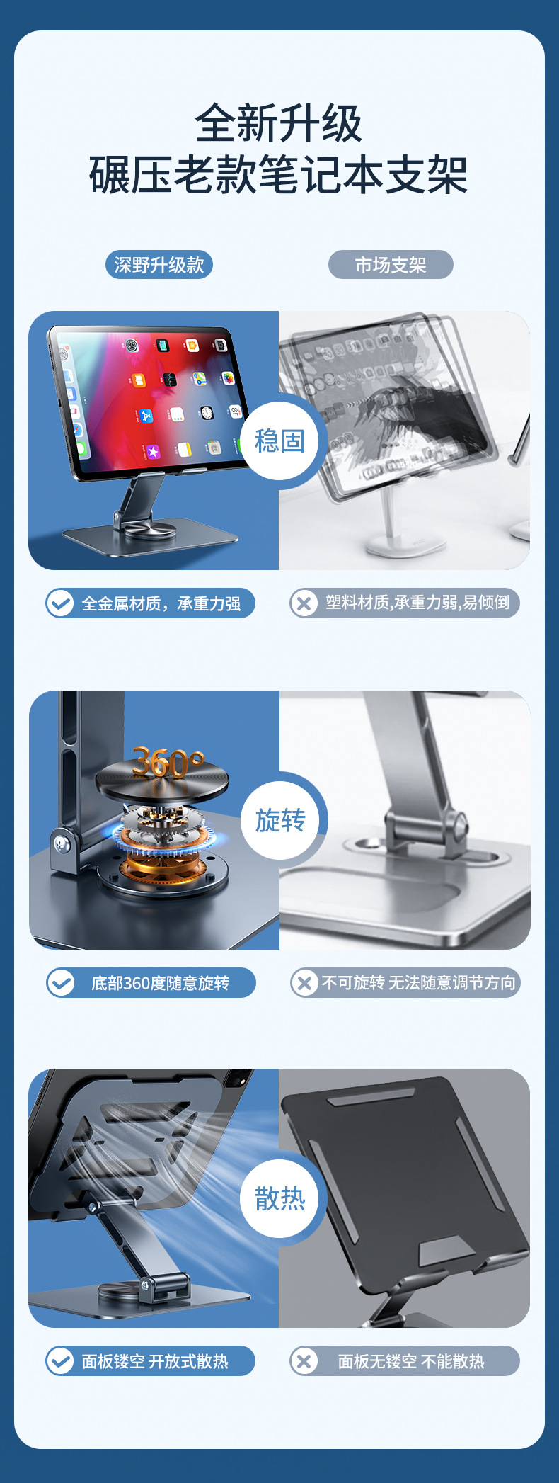 새로운 모든 금속 플랫 브래킷 중공 회전 가능한 조정 노트북 평면 드라마 기본 방열 지원 프레임