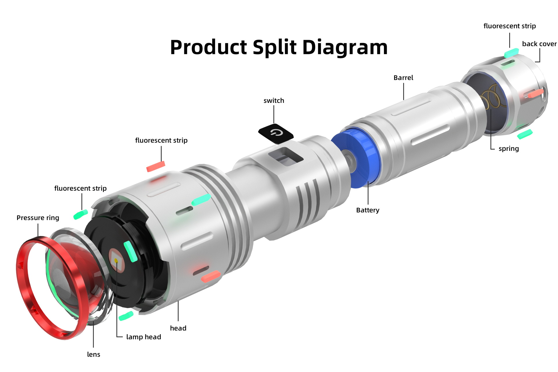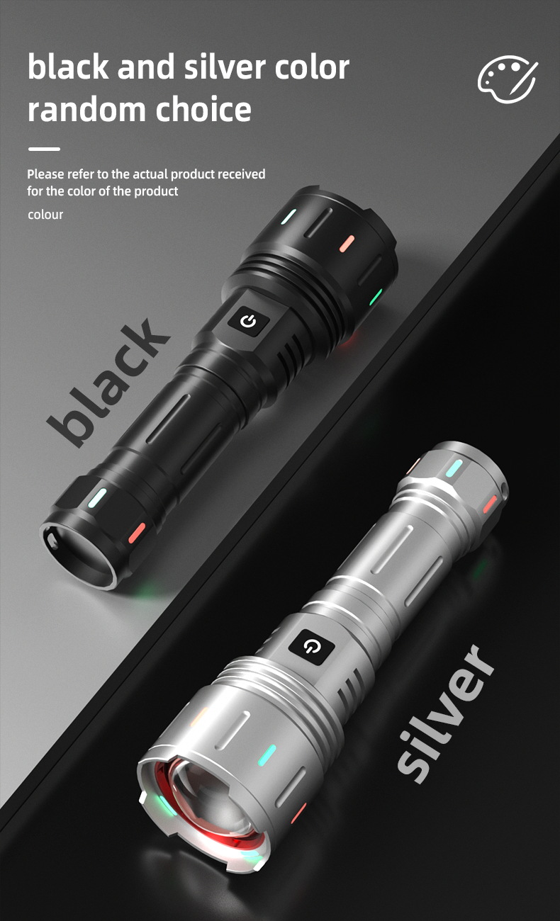 • 30W 형광 백색 레이저 강한 빛 손전등(리튬 배터리 제외) + 충전 케이블 + 색상 상자