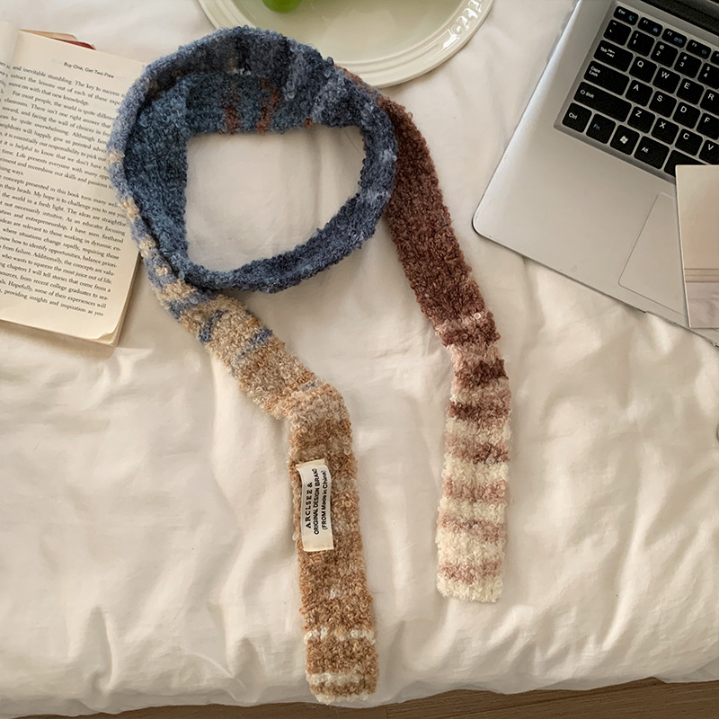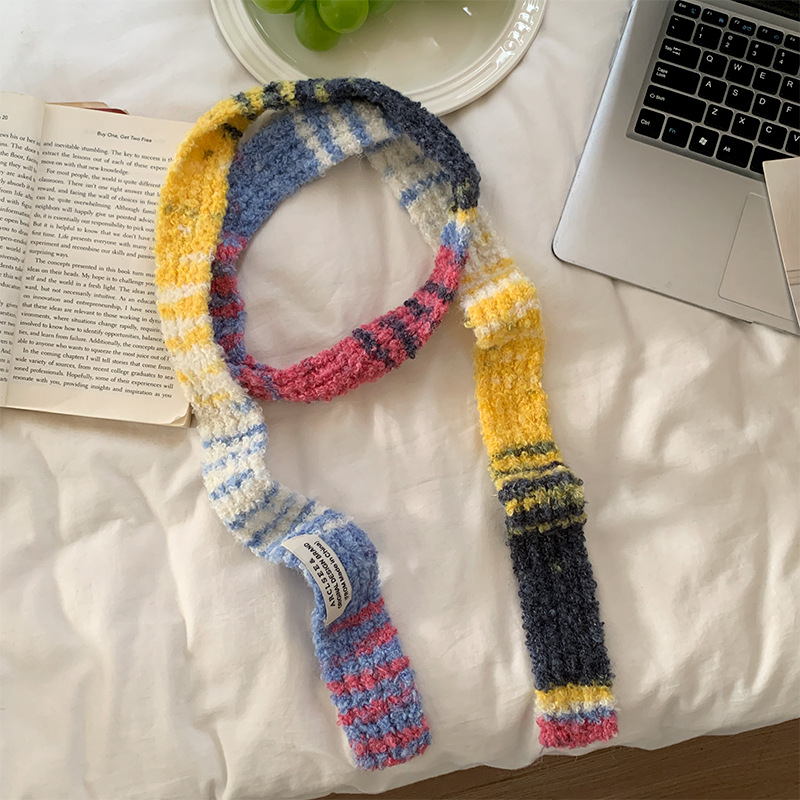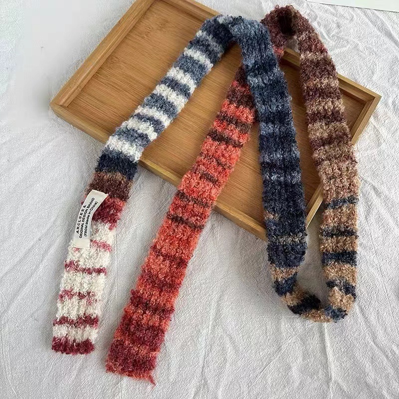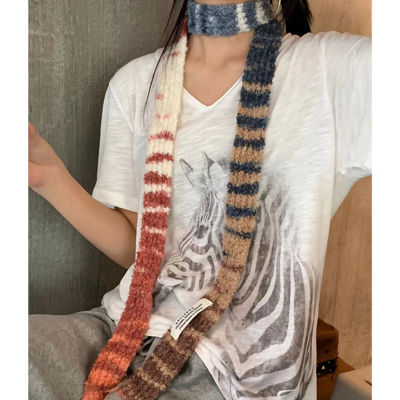 일본 컬러 스트라이프 얇은 좁은 스카프 긴 틈새 디자인 맞춤형 하라주쿠 스타일 색상 매칭 니트 핫 소녀 스카프스토어 가기