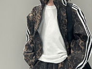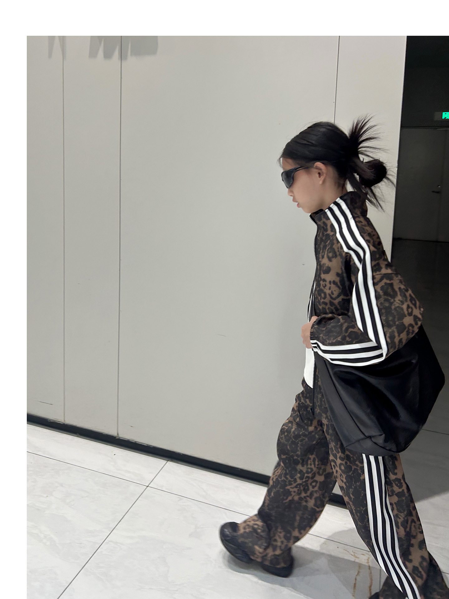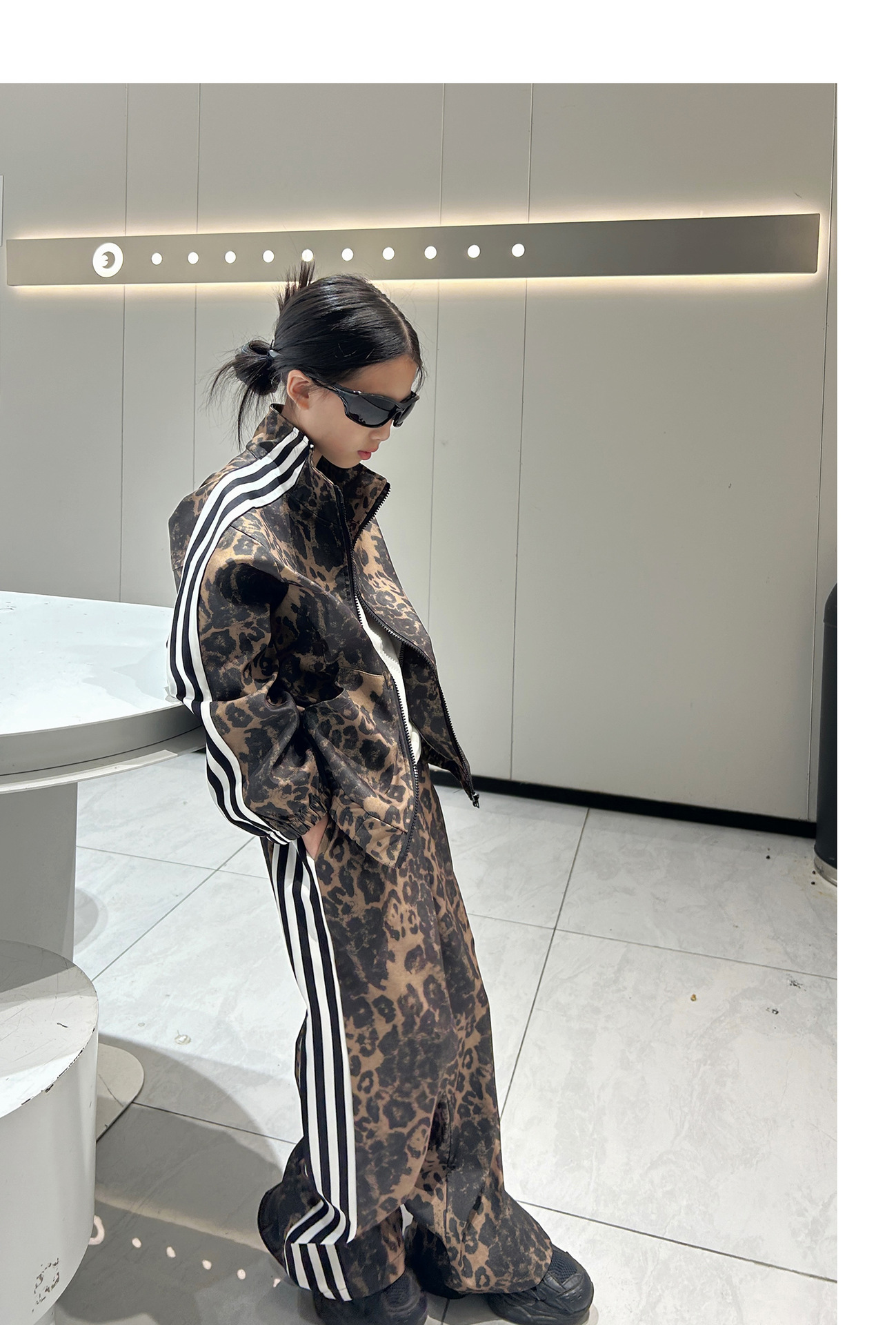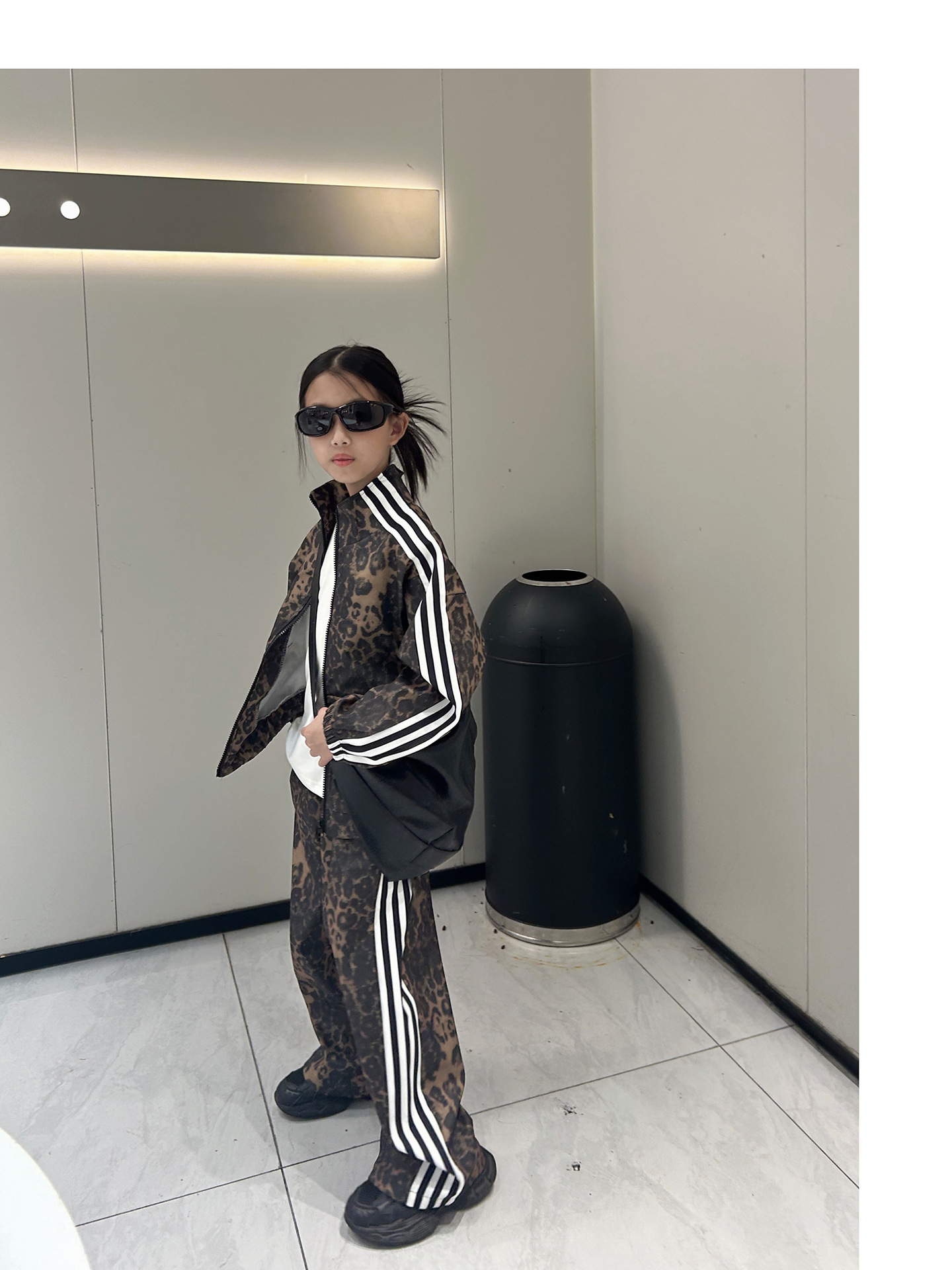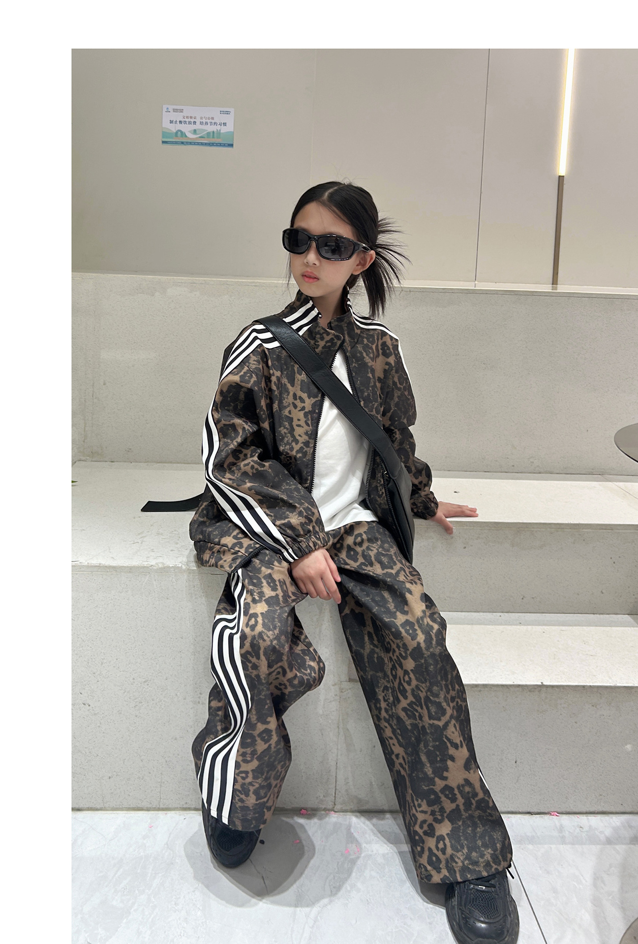 소녀 캐주얼 세트 봄과 가을 2024 새로운 어린이 레오파드 무늬 트렌디 쿨 레트로 느슨한 재킷 코트 넓은 다리 바지스토어 가기