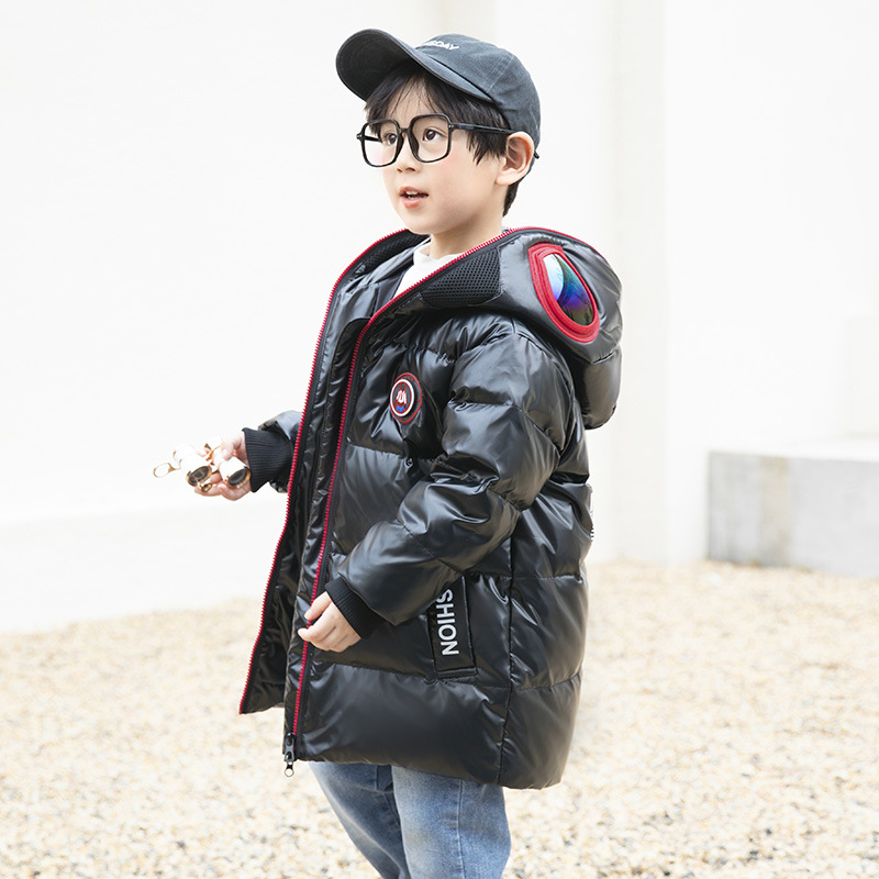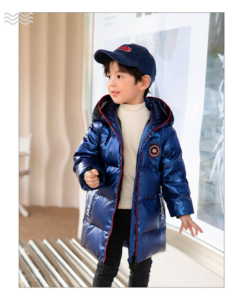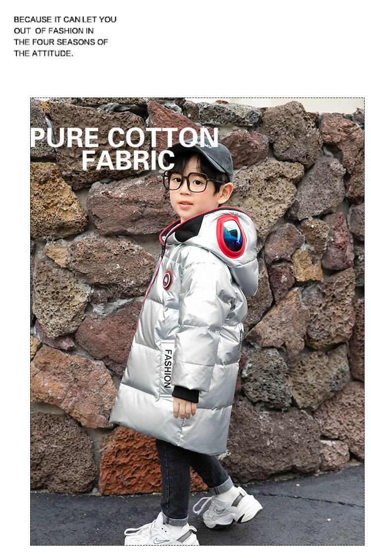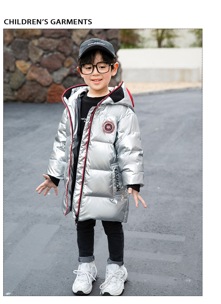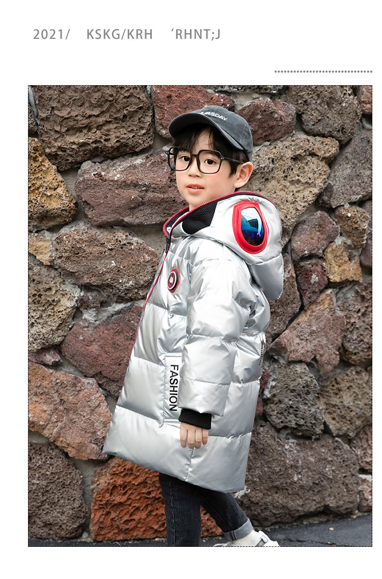 아동용 다운 실크 재킷 2024 새로운 스타일 중소형 소년의 두꺼운 아기 따뜻한 패션 재킷 겨울 의류스토어 가기