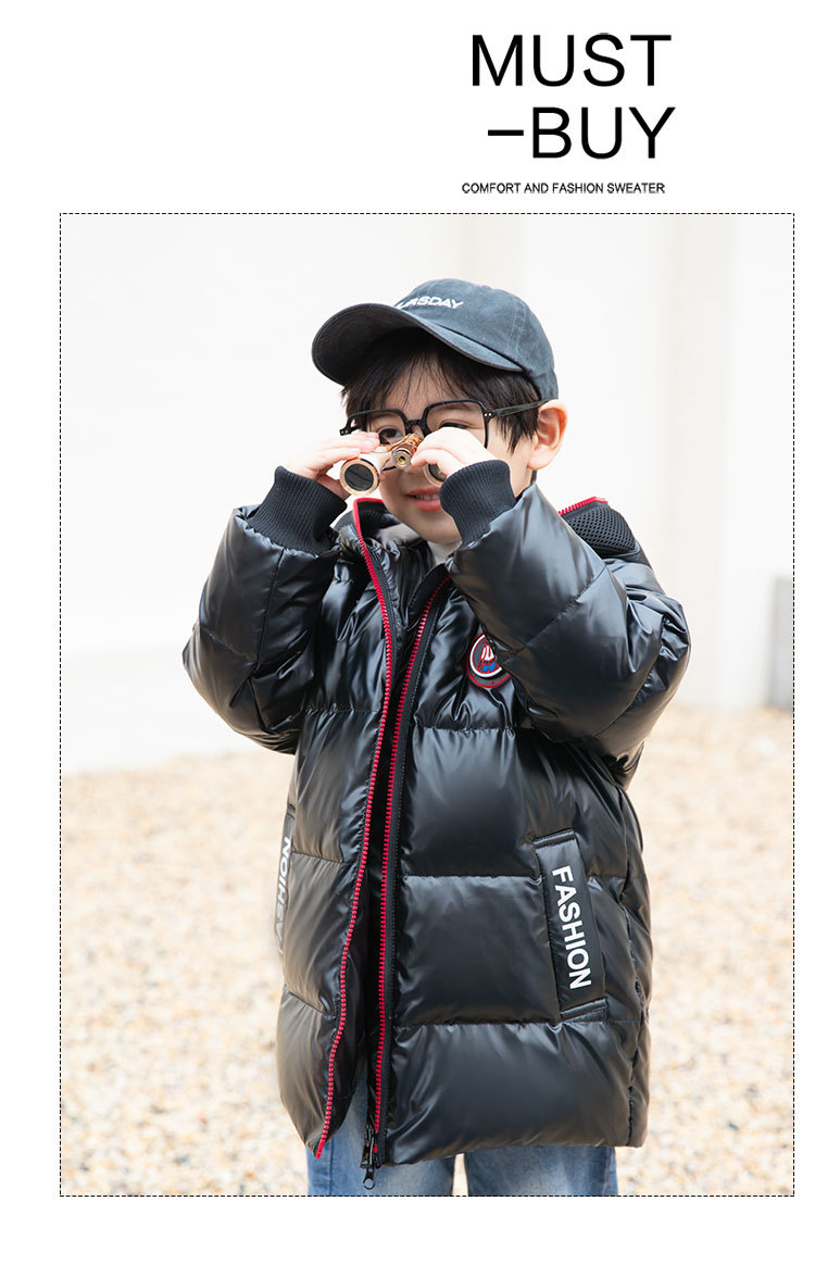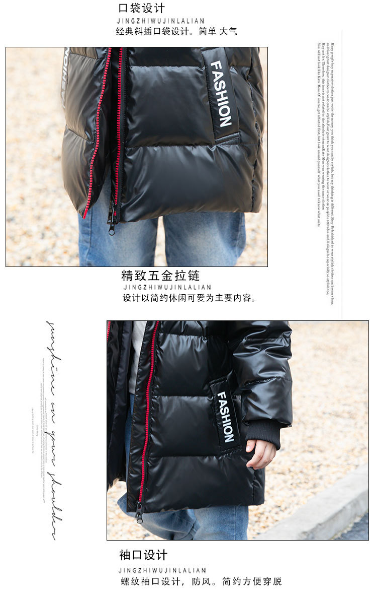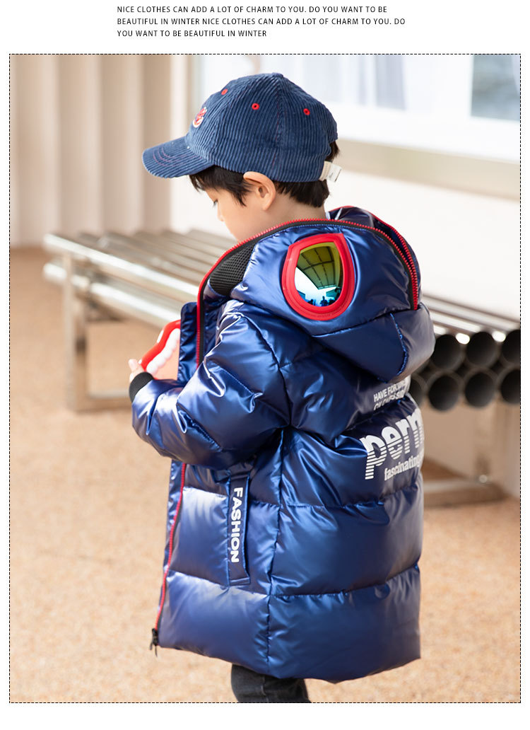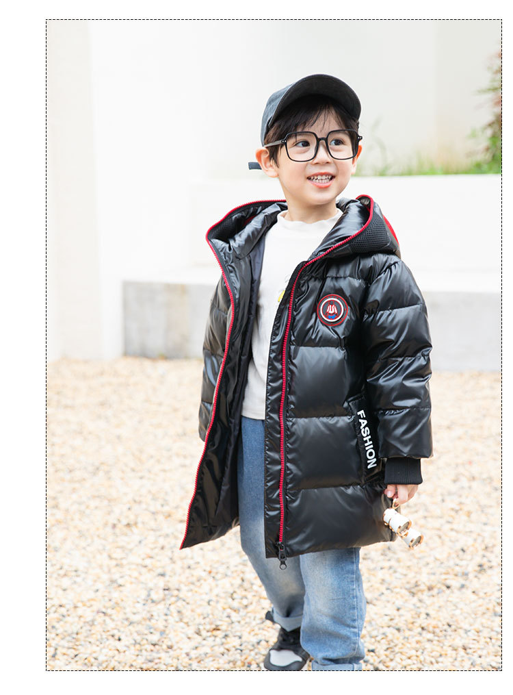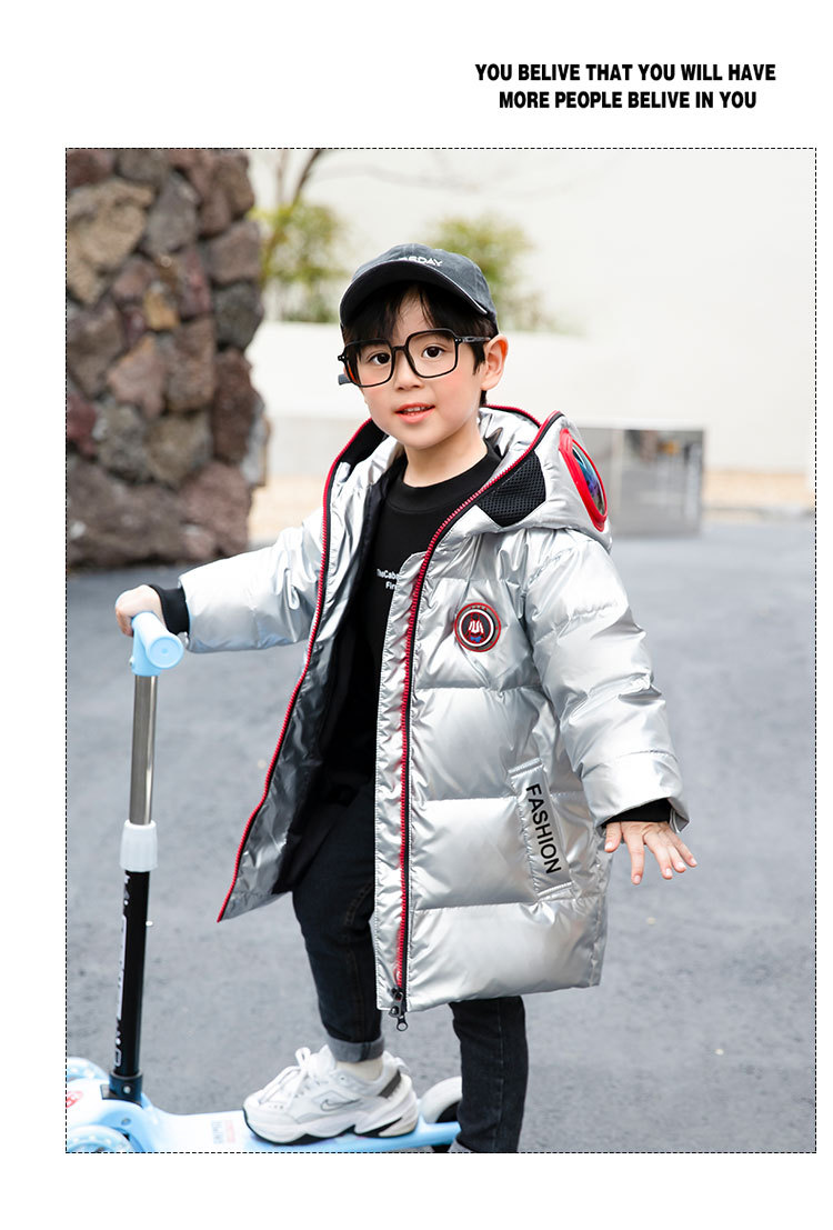 아동용 다운 실크 재킷 2024 새로운 스타일 중소형 소년의 두꺼운 아기 따뜻한 패션 재킷 겨울 의류스토어 가기