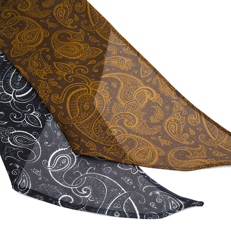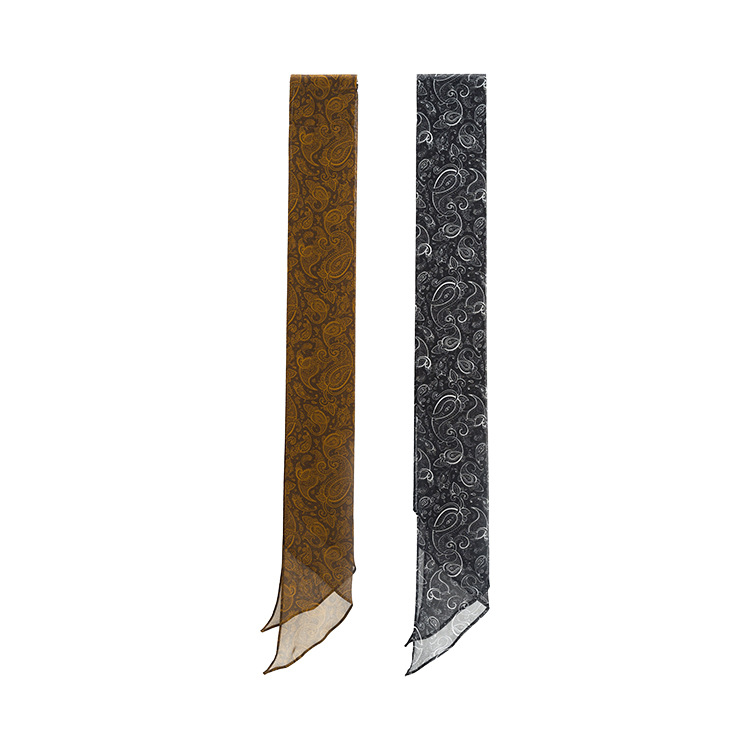面料:6姆米雪纺 品名:经典时尚腰果花飘带