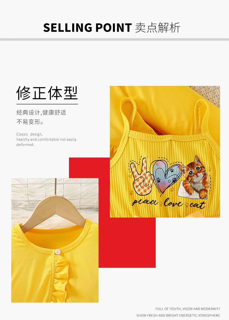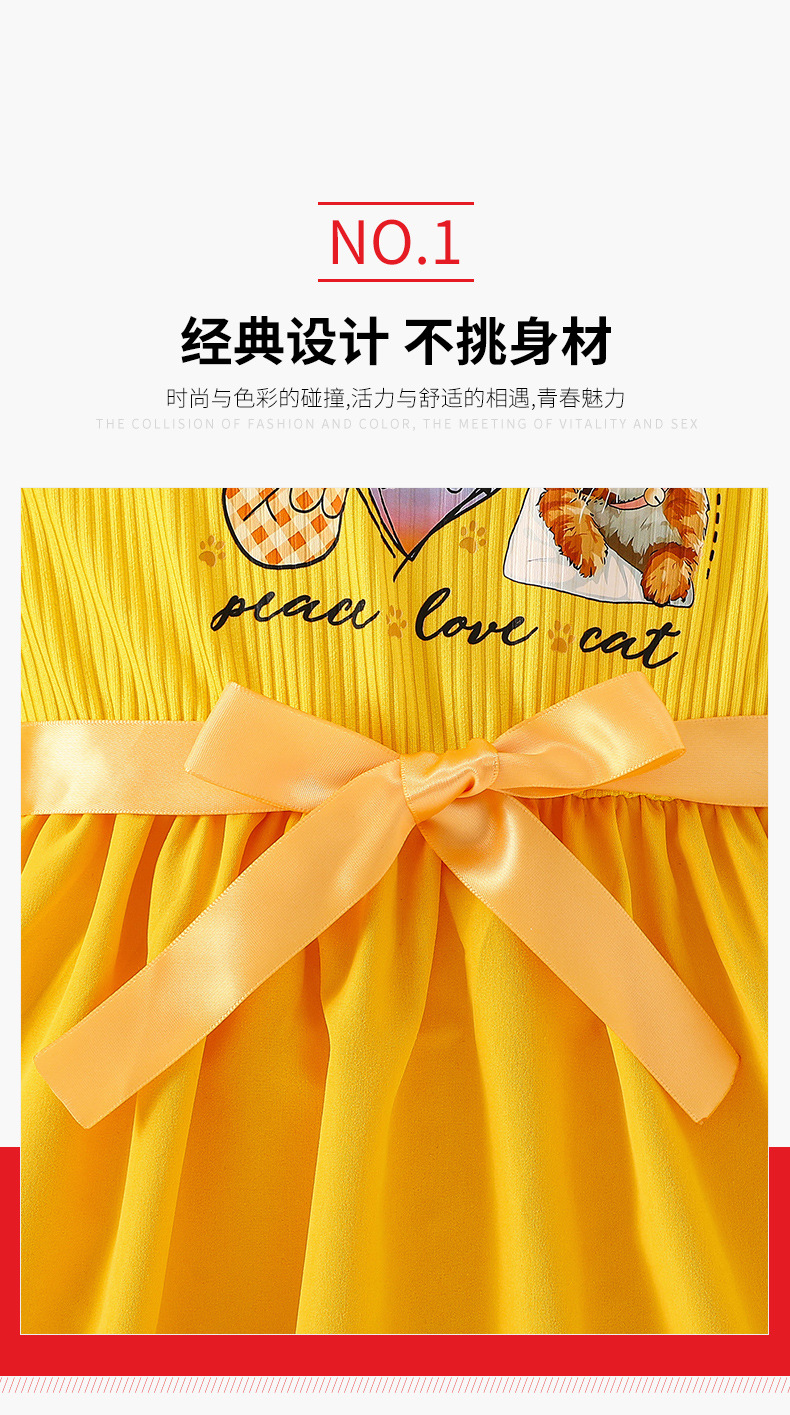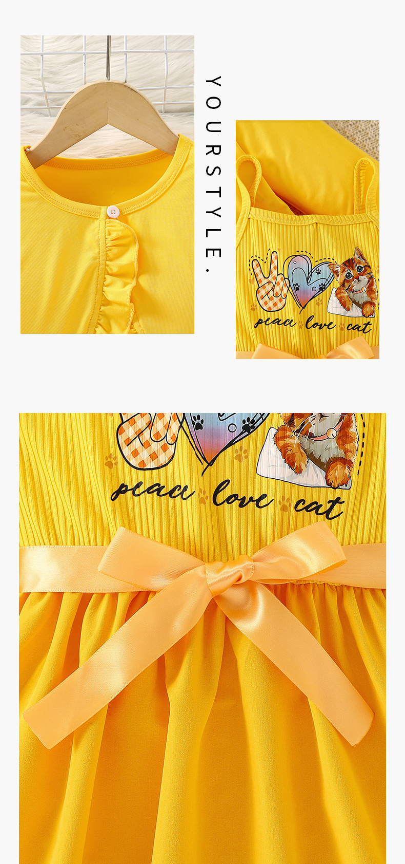 2024 새로운 소녀 원피스 세트 귀여운 고양이 프린트 활 중공 스커트 투피스 스커트스토어 가기