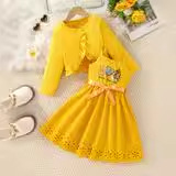 2024 새로운 소녀 원피스 세트 귀여운 고양이 프린트 활 중공 스커트 투피스 스커트