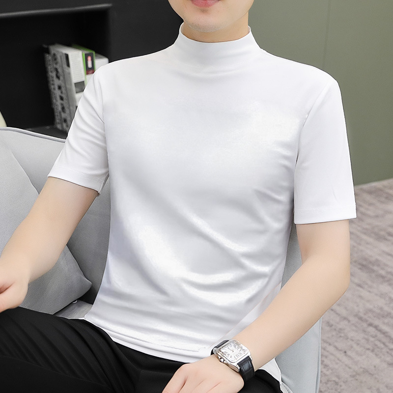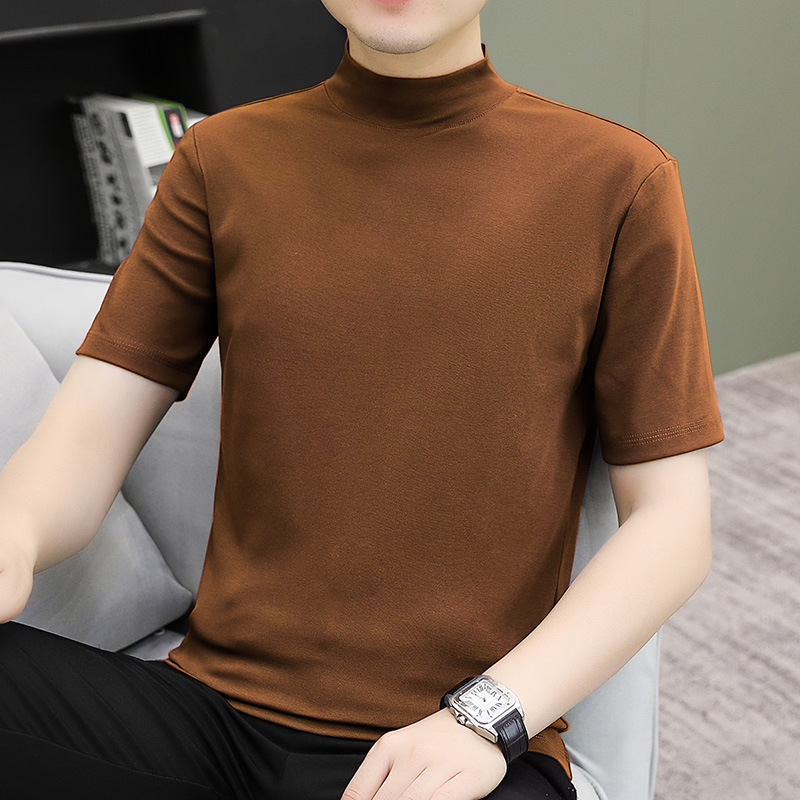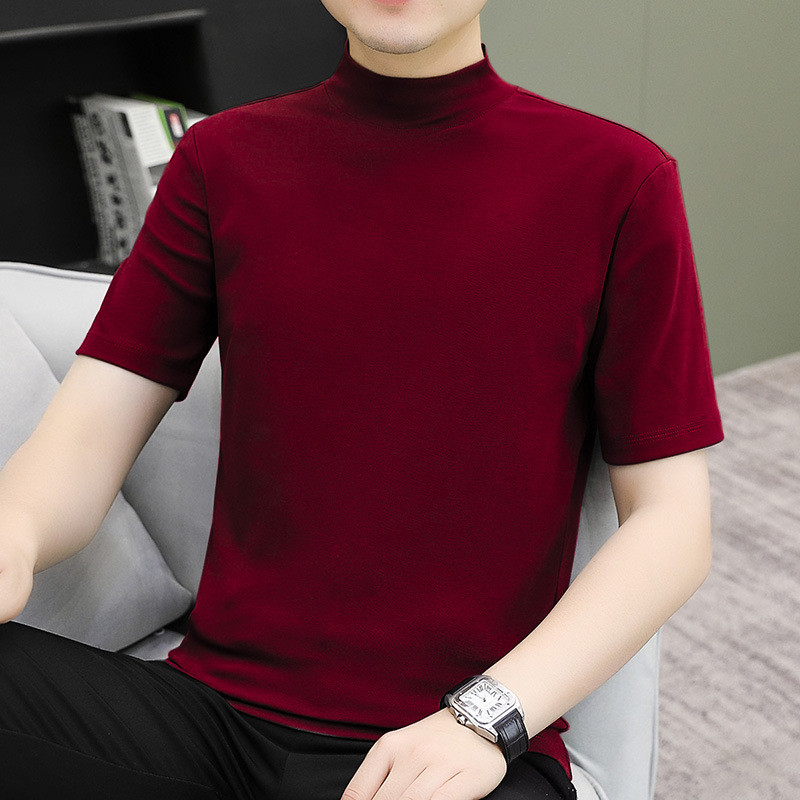 하프 칼라 쇼트 슬리브 티셔츠 솔리드 컬러 2025 봄과 가을 캐주얼 패션 하프 슬리브 얇은 남성 간단한 미드 칼라 패셔너블베이스스토어 가기