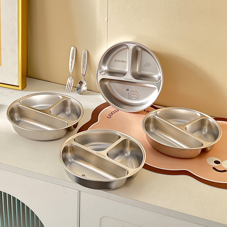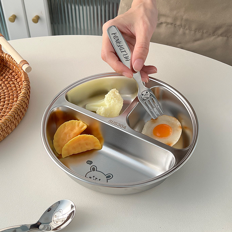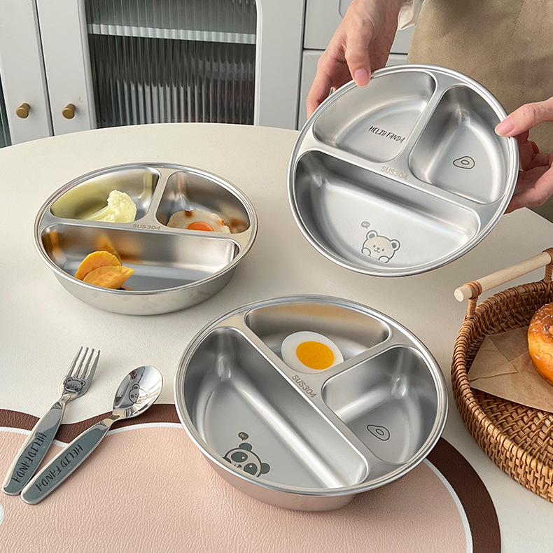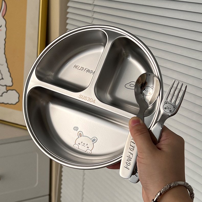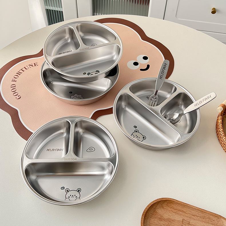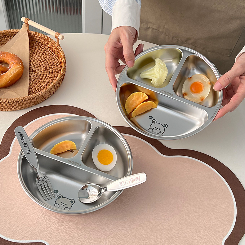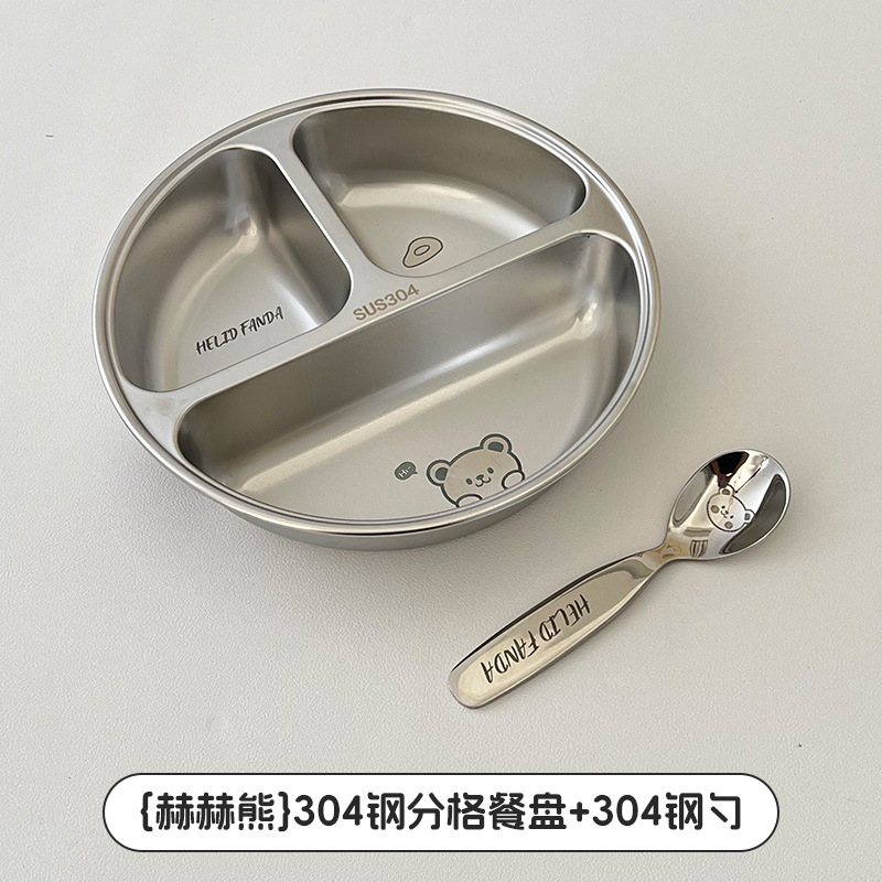 어린이 디너 플레이트 304 곰 가족 만화 분리 된 쌀 플레이트 유치원 초등학생들이 라운드 정량 식탁 심화