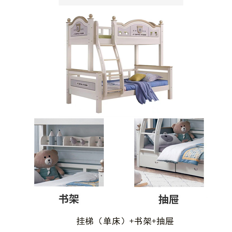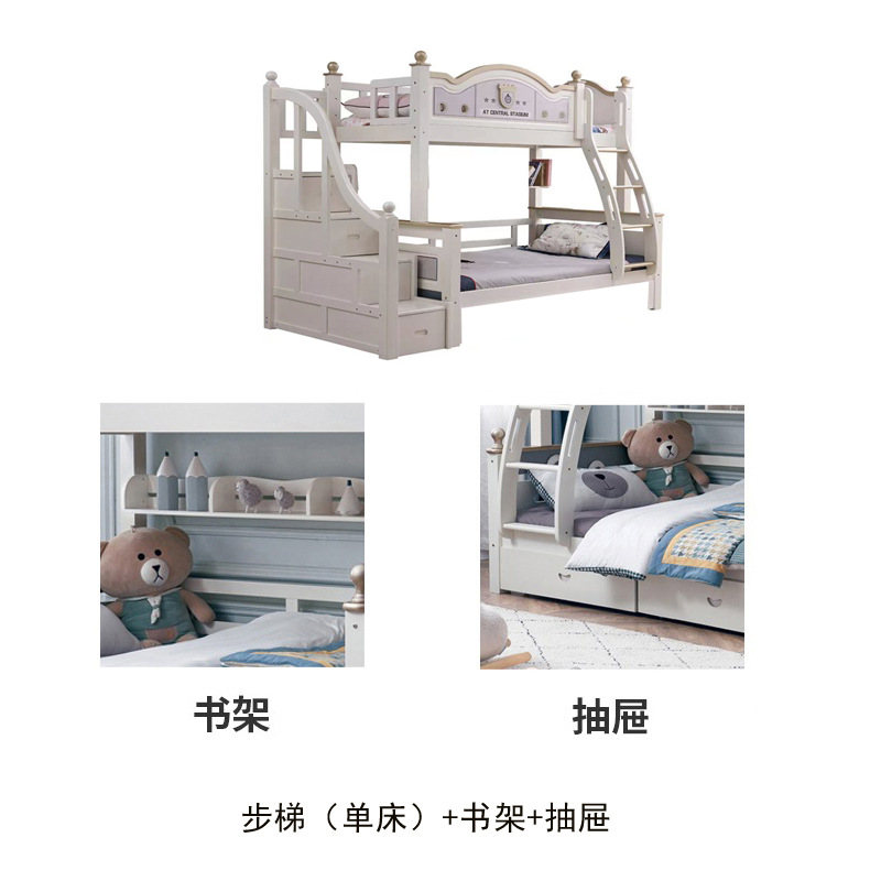 어린이용 이층침대, 원목 이층침대, 소형 가정용 오크 이층침대, 수납공간이 있는 원목 어린이방