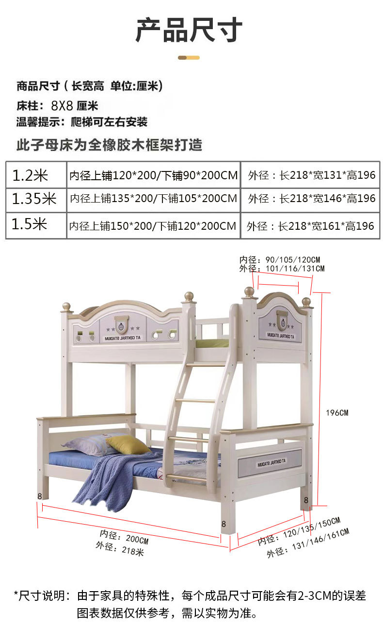 • 맞춤형 짧은 길이 +150위안(하단 1.35 상위 1.05m