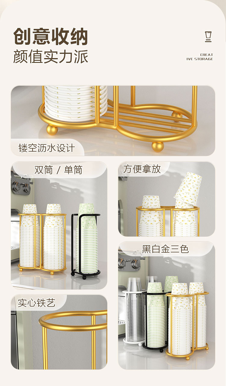 데스크탑 종이컵 저장 랙 가정용 물 디스펜서 바 카운터 밀크 티 커피 숍 일회용 컵 부두 보관 랙