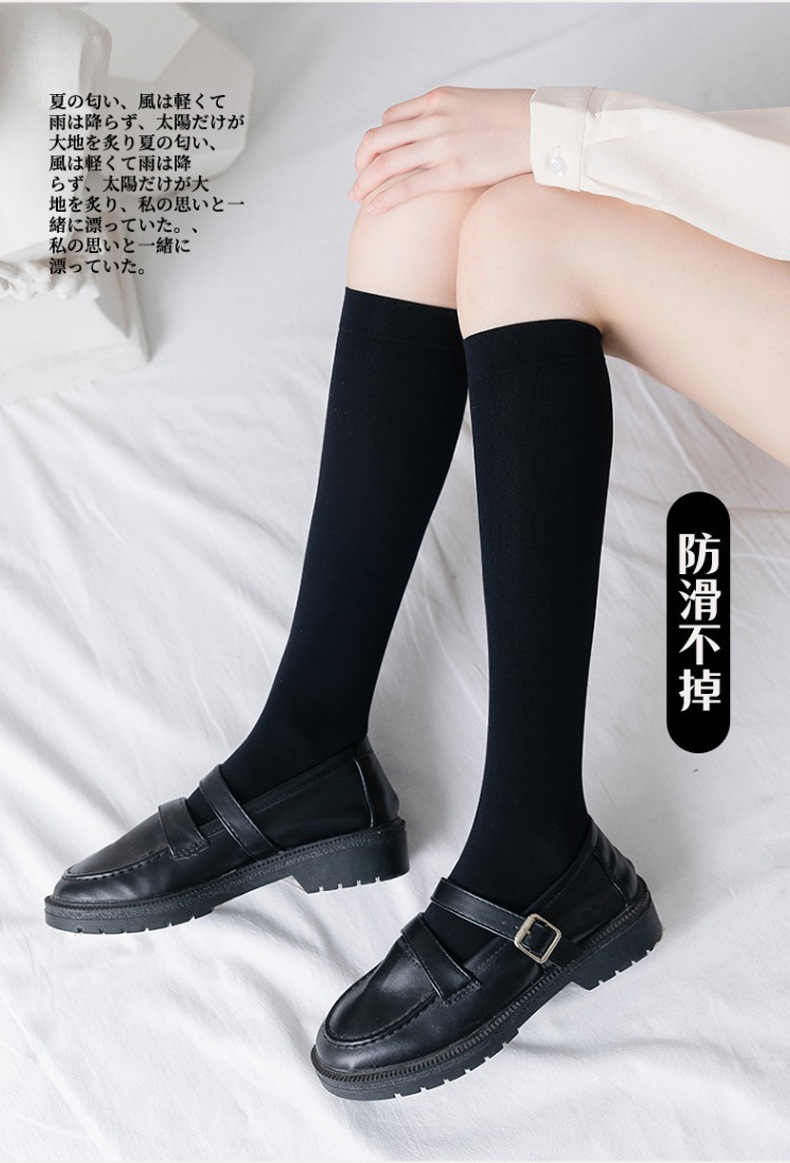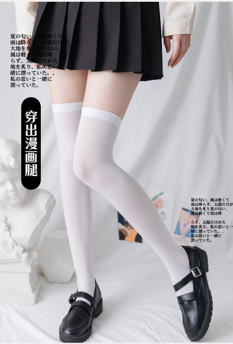 여성용 롱삭스 jk 양말 봄 가을 땀 흡수 달콤한 여름 얇은 흰색 무릎 위 양말 미끄러지지 않는 벨벳 종아리 양말