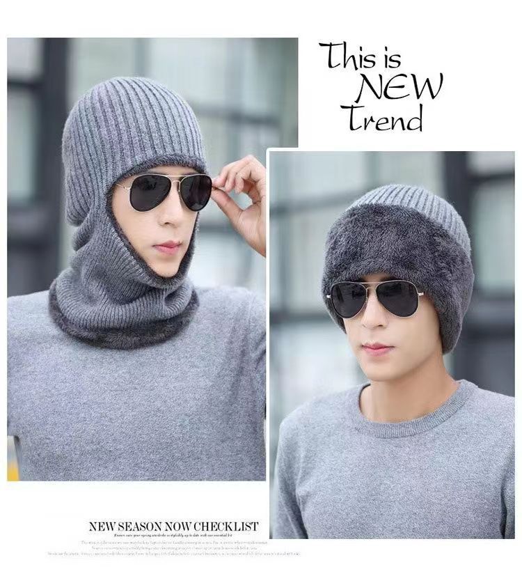 겨울 모자 남자의 감기 기모 따뜻한 니트 모자 귀 보호 목 보호 풀오버 울 모자 자동차 방풍 모자