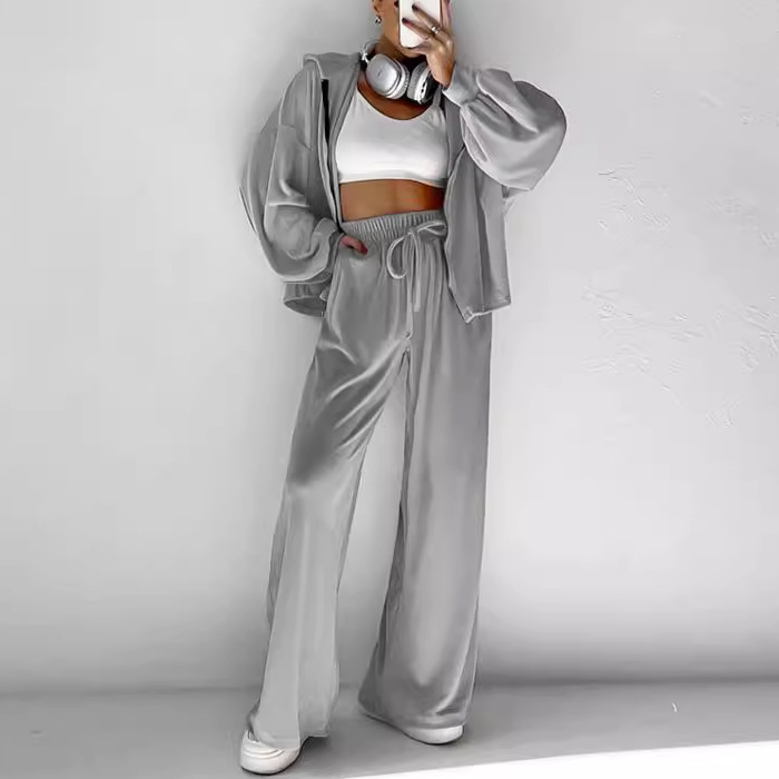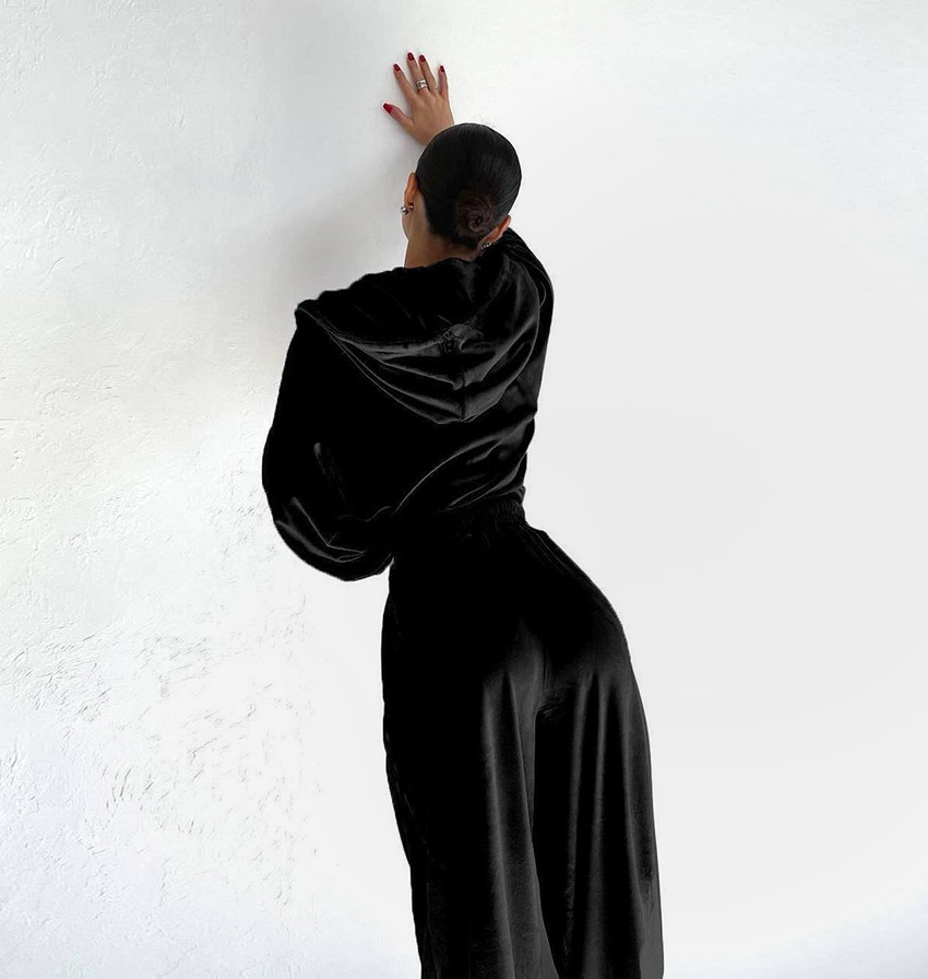 2025 새로운 골드 벨벳 정장 유럽과 미국의 패션 지퍼 긴 소매 스포츠 스타일 후드 스웨터 지퍼 캐주얼 정장