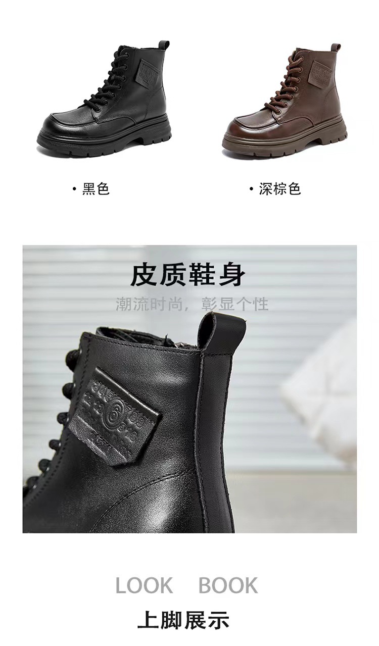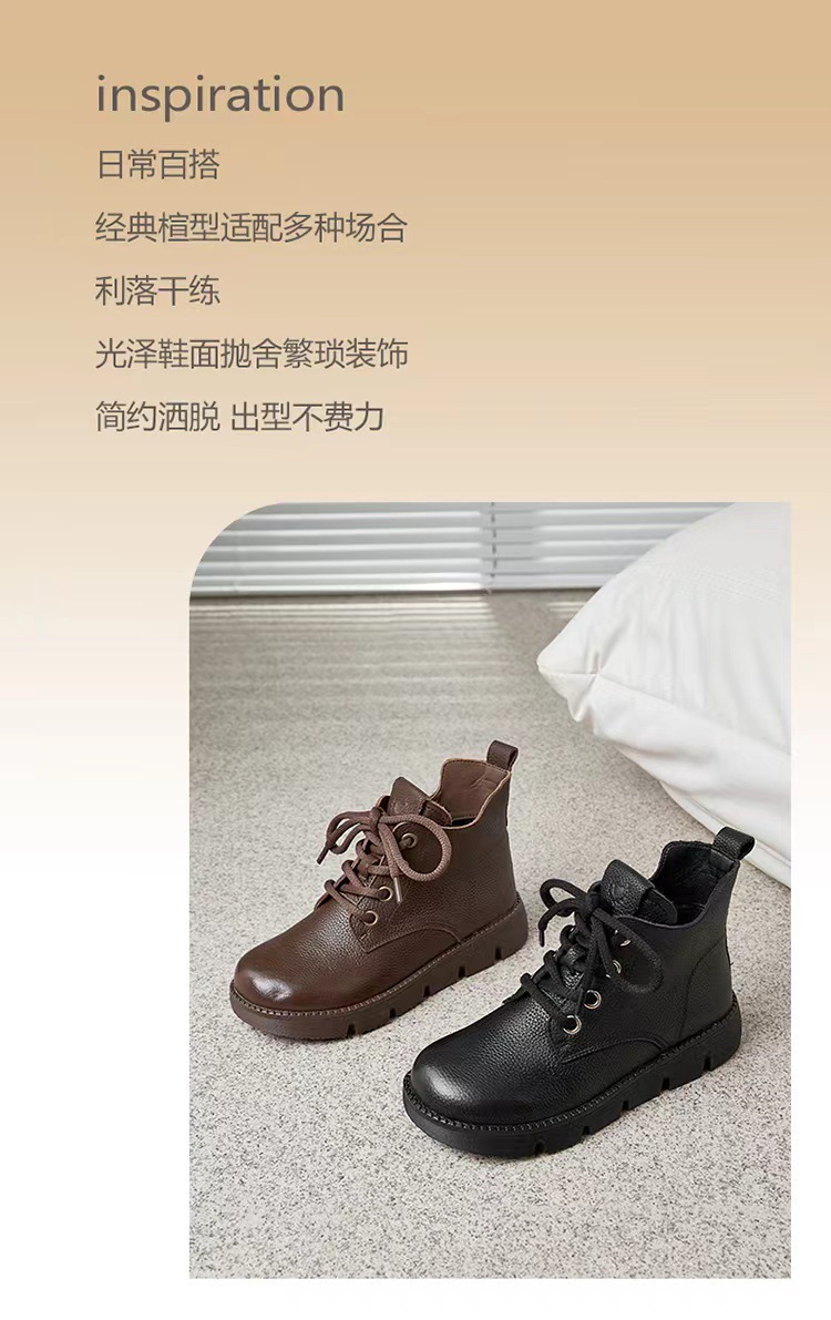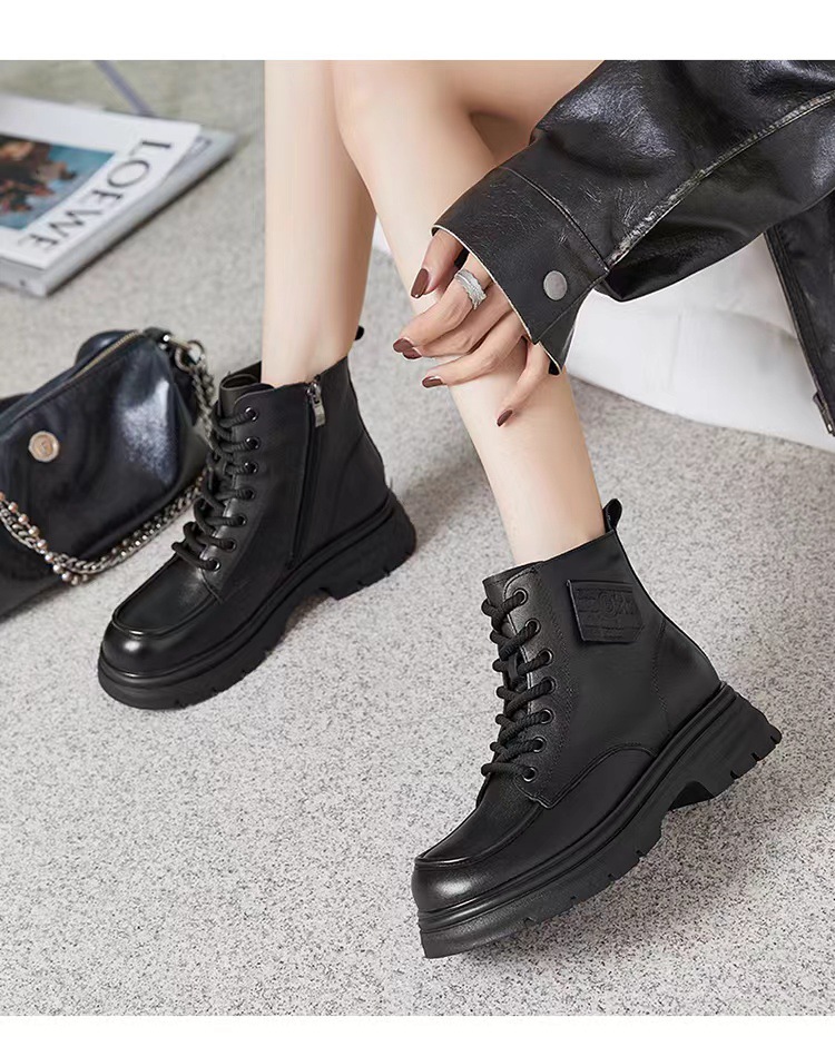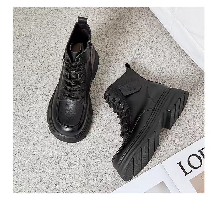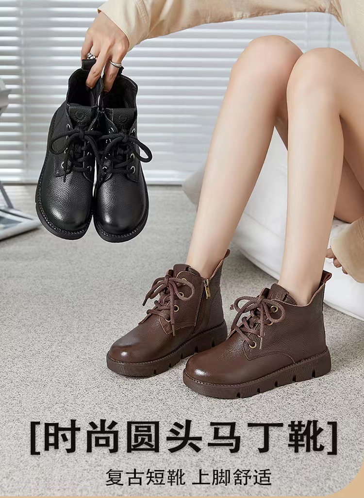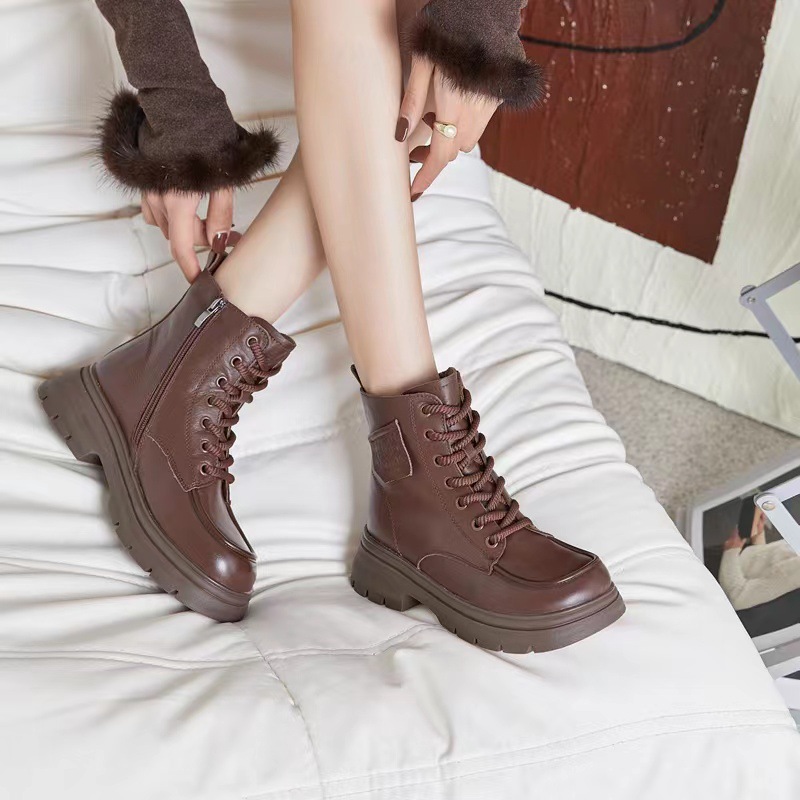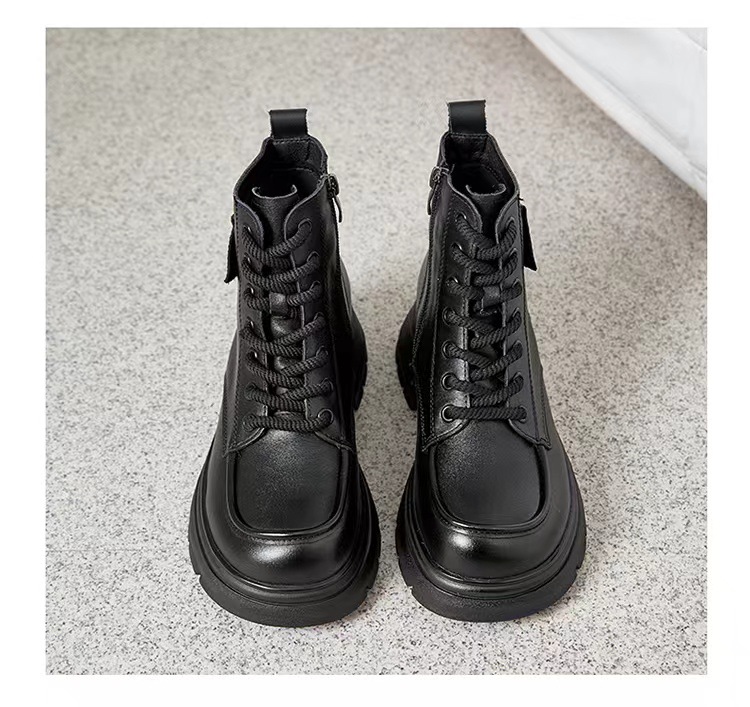 1 층 소 가죽 2024 가을과 겨울 새로운 온라인 인기 폭발 복고풍 두꺼운 굽 패션 여성의 마틴 짧은 부츠스토어 가기